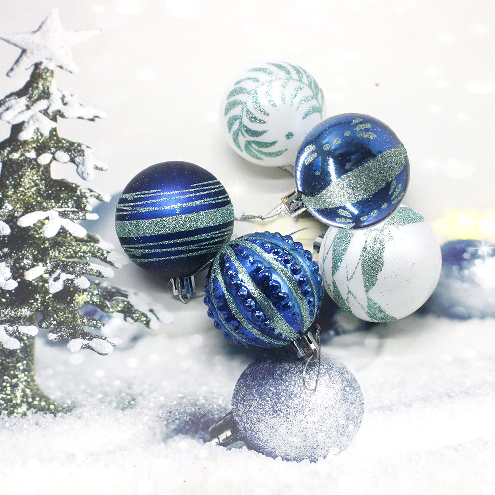 Blue 30-Piece 6cm Electroplated Christmas Baubles – Hand-Painted Tree Ornaments