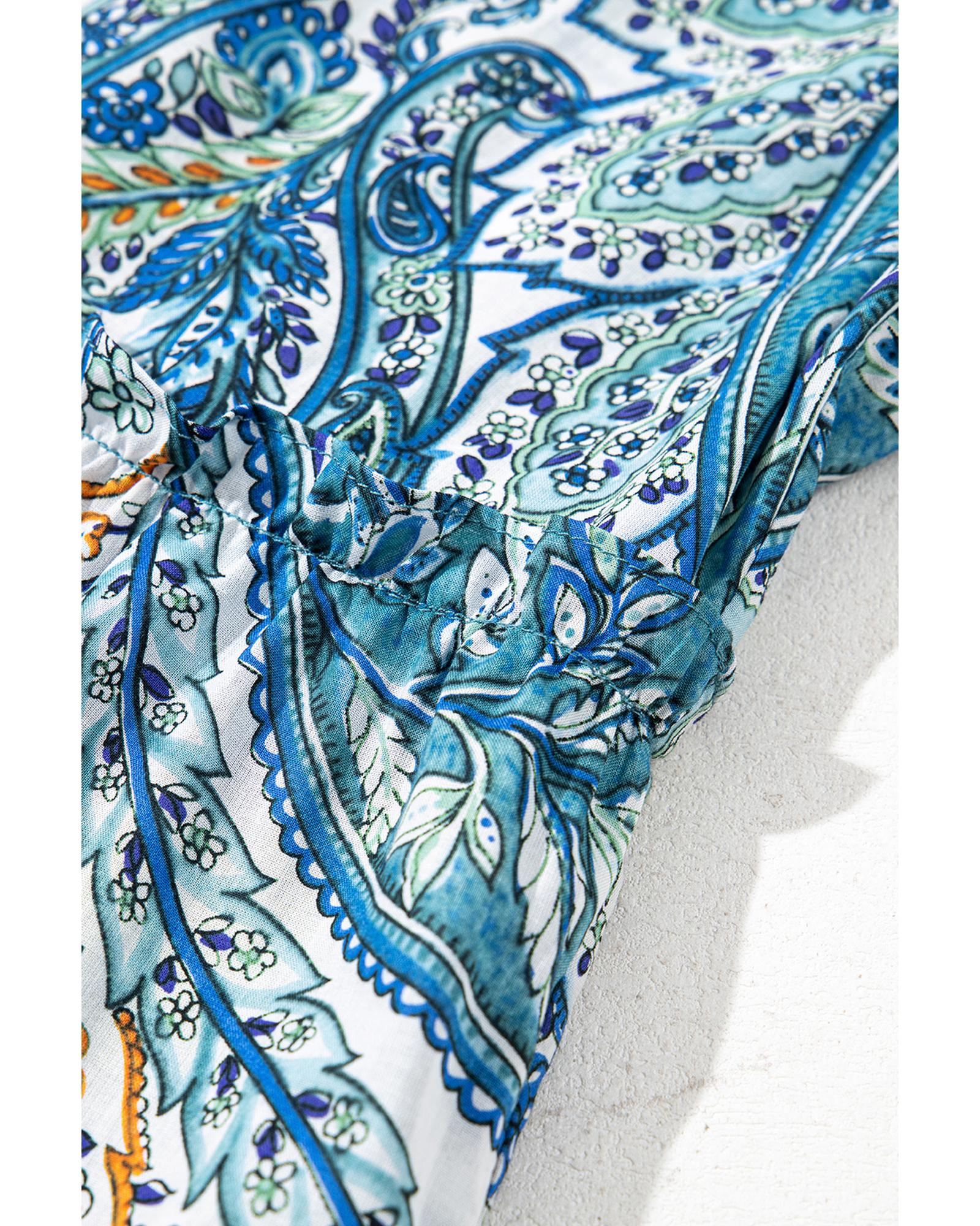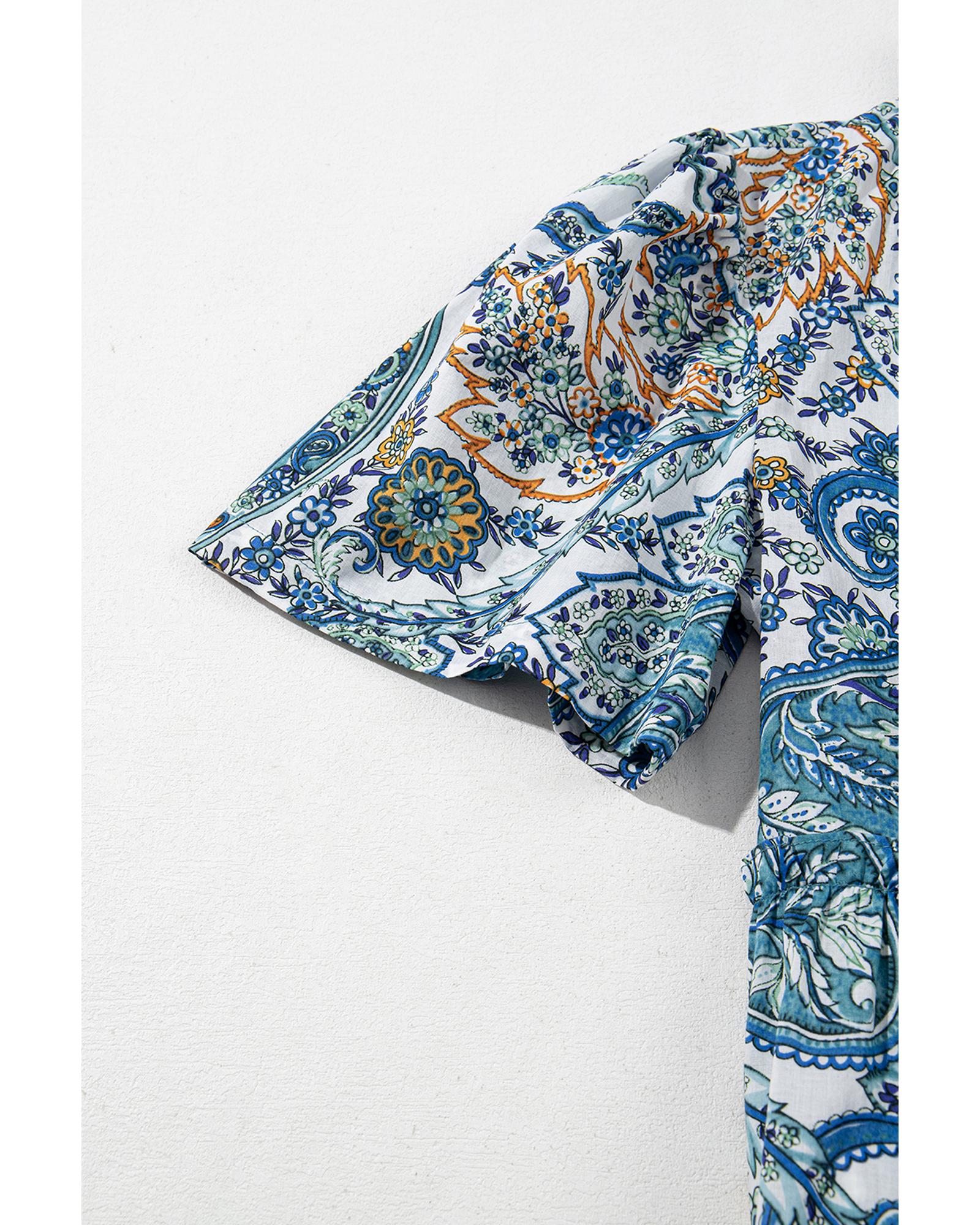 - Blue Bohemian Paisley Floral V Neck Short Sleeve Mini Dress
