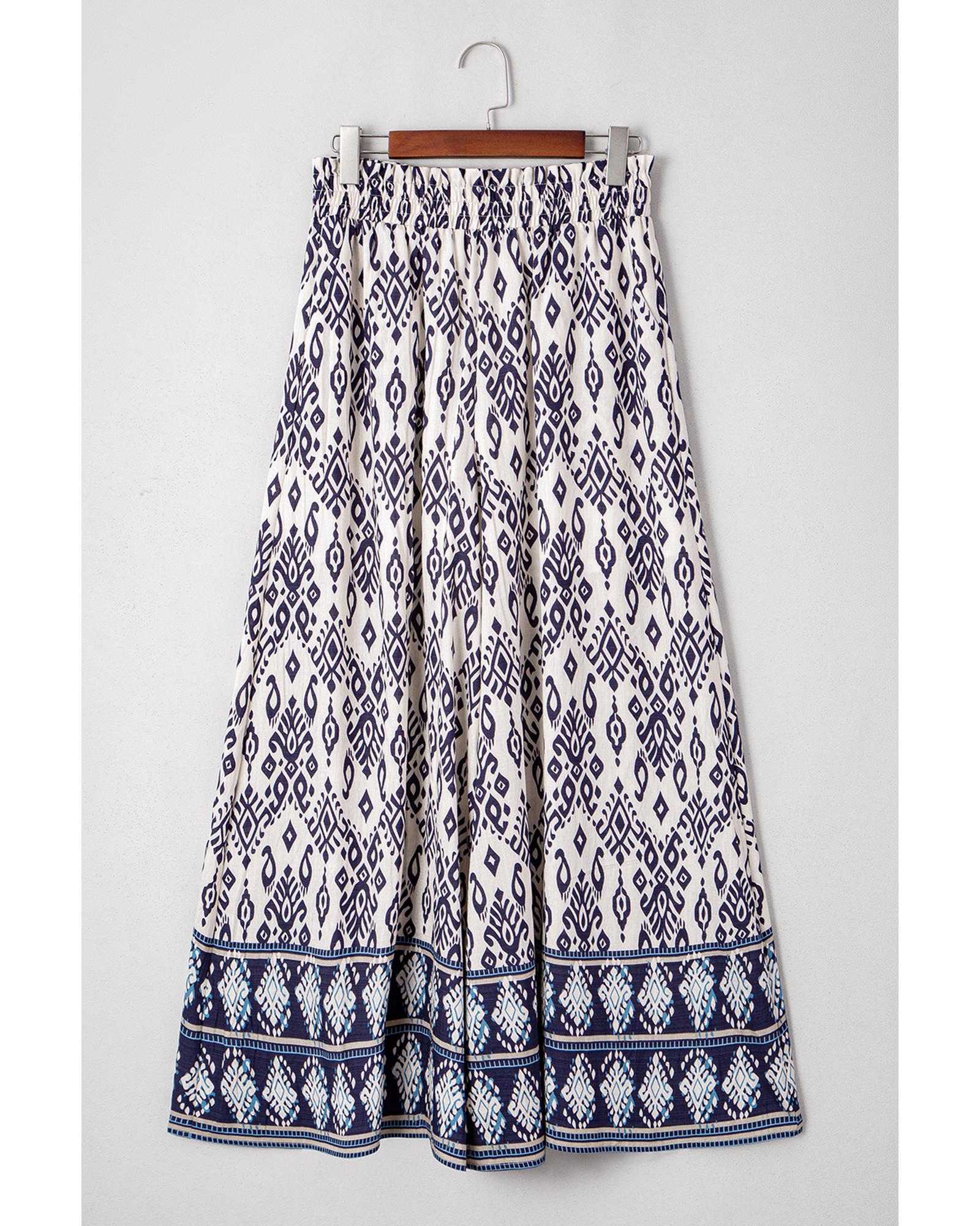 Blue Boho Pattern Print High Waist Wide Leg Loose Pants – S