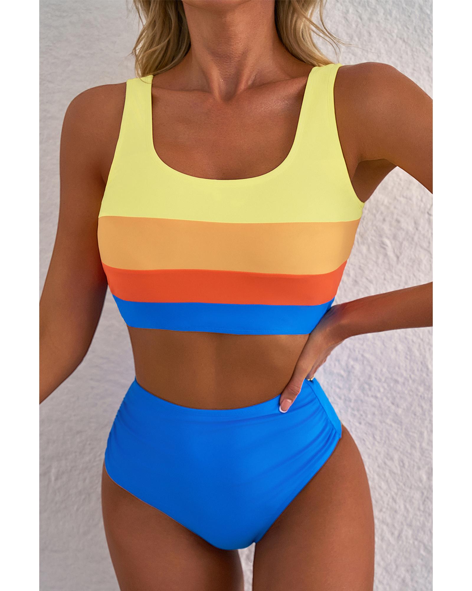 Blue Colorblock Square Neck Top Pleated High Waisted Bikini – XL