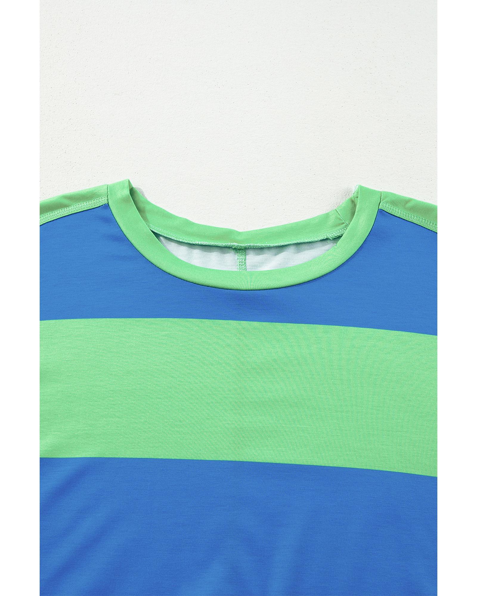 Blue Colorblock Striped Drop Shoulder Loose Top – S