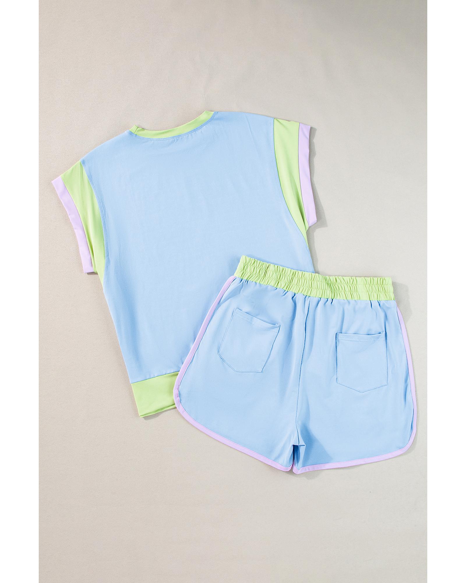 Blue Contrast Trim Cap Sleeve Tee Shorts Set – XL
