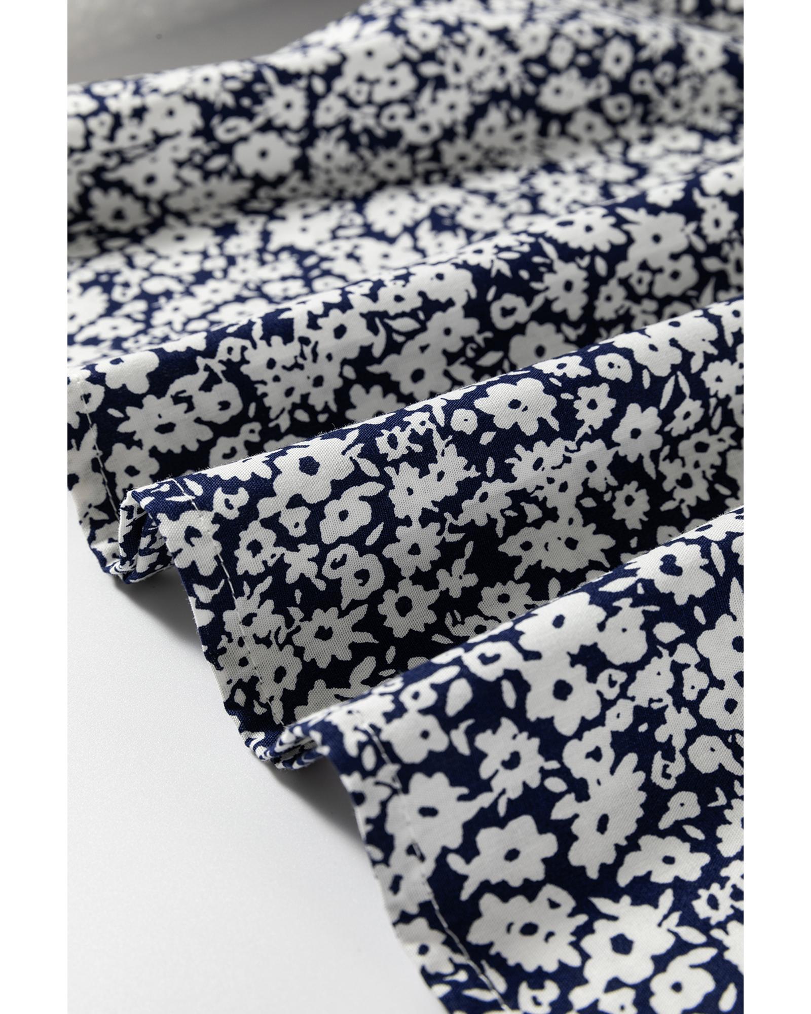 Blue Floral Print Notched V Neck Puff Sleeve Blouse – XL