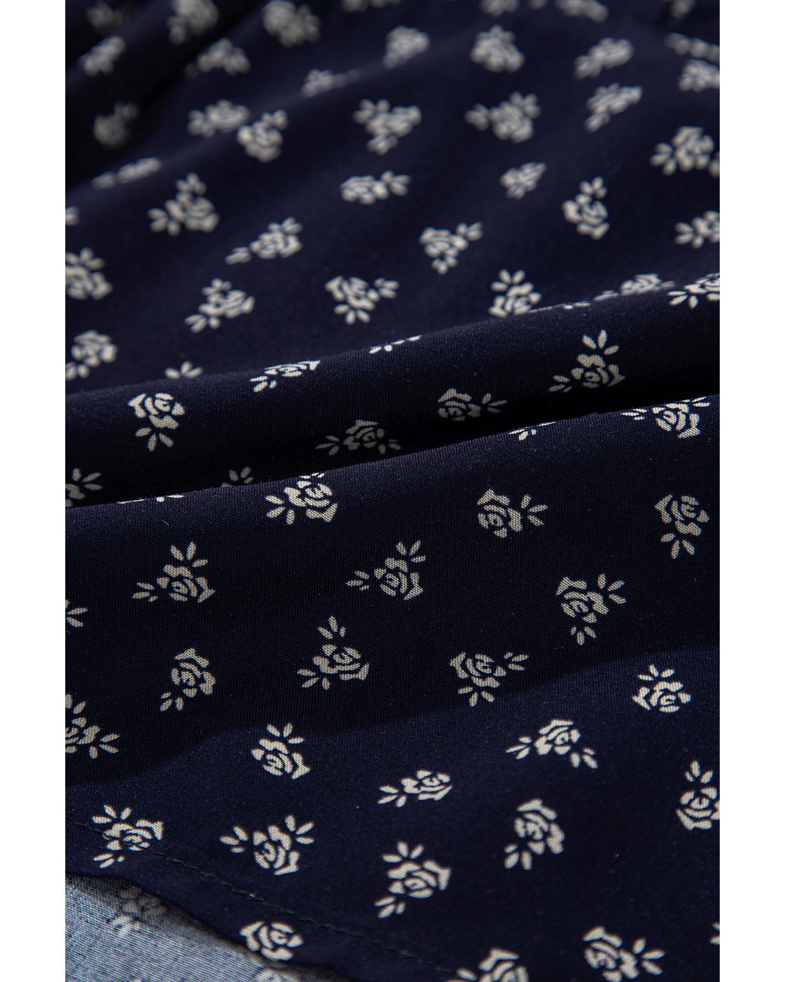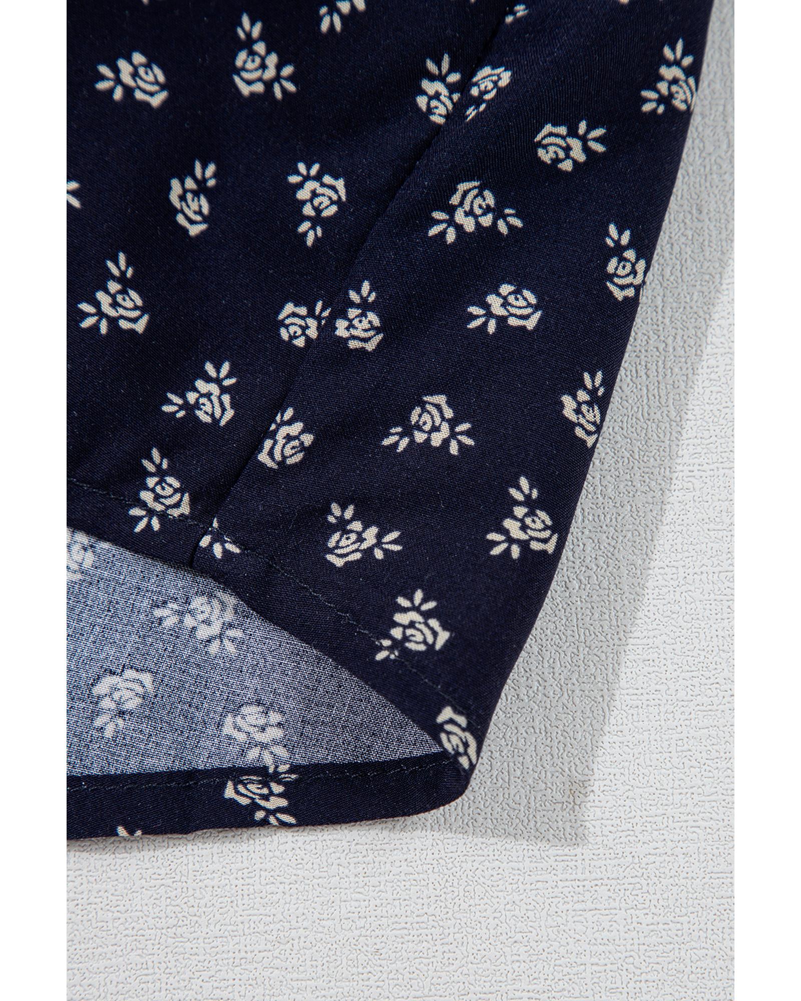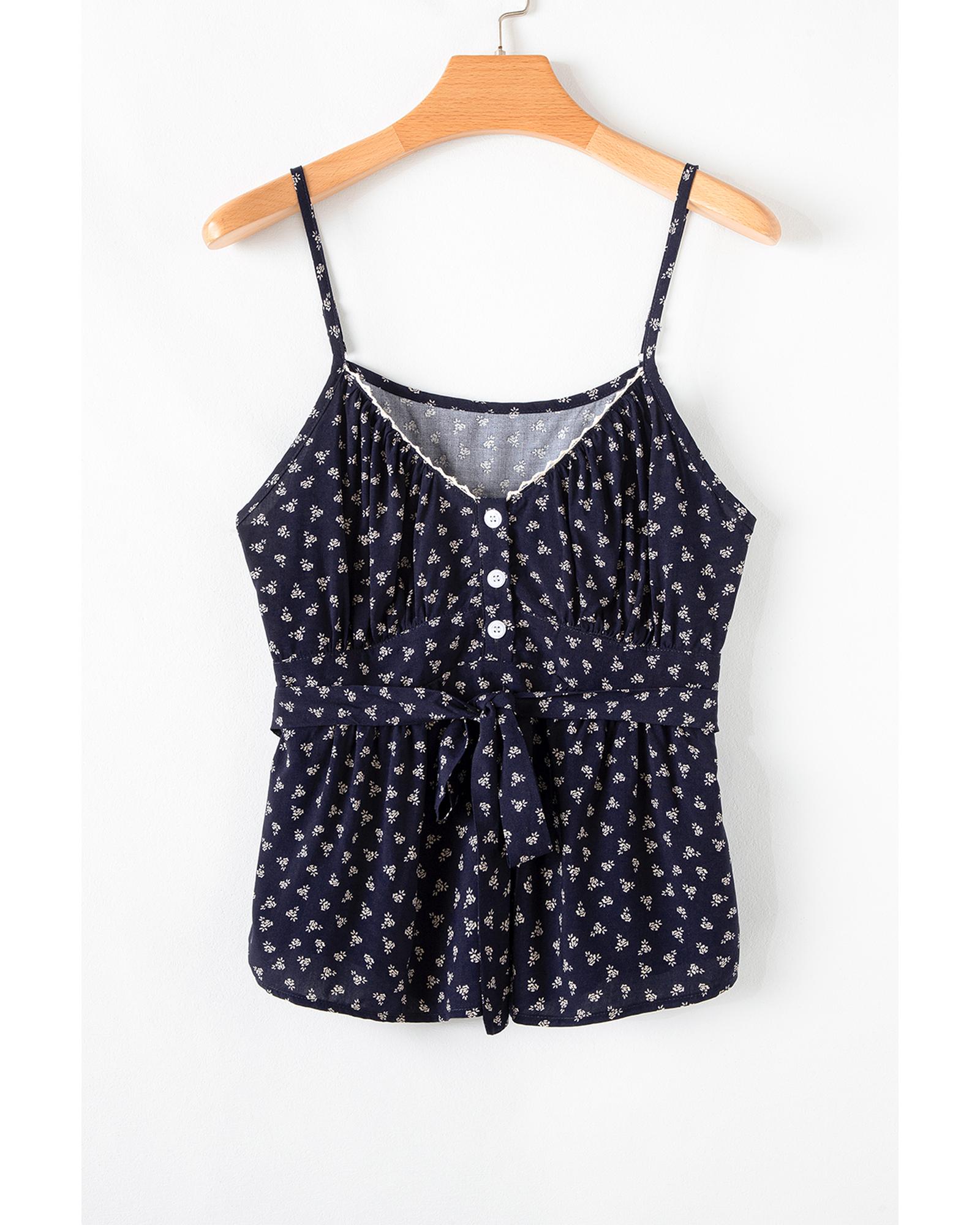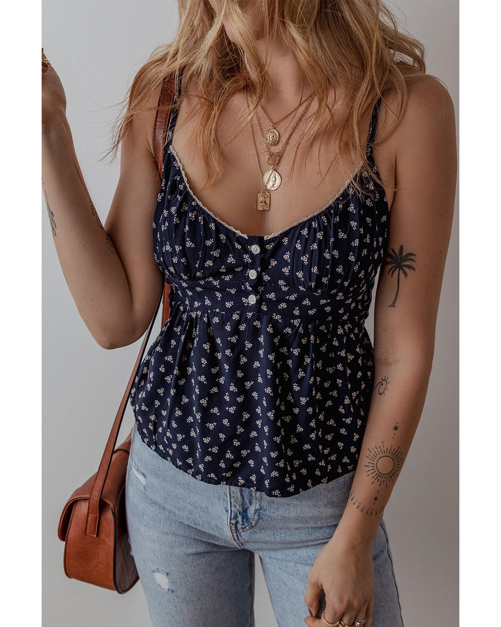 Blue Floral Print Spaghetti Strap Buttoned V Neck Tank Top – L