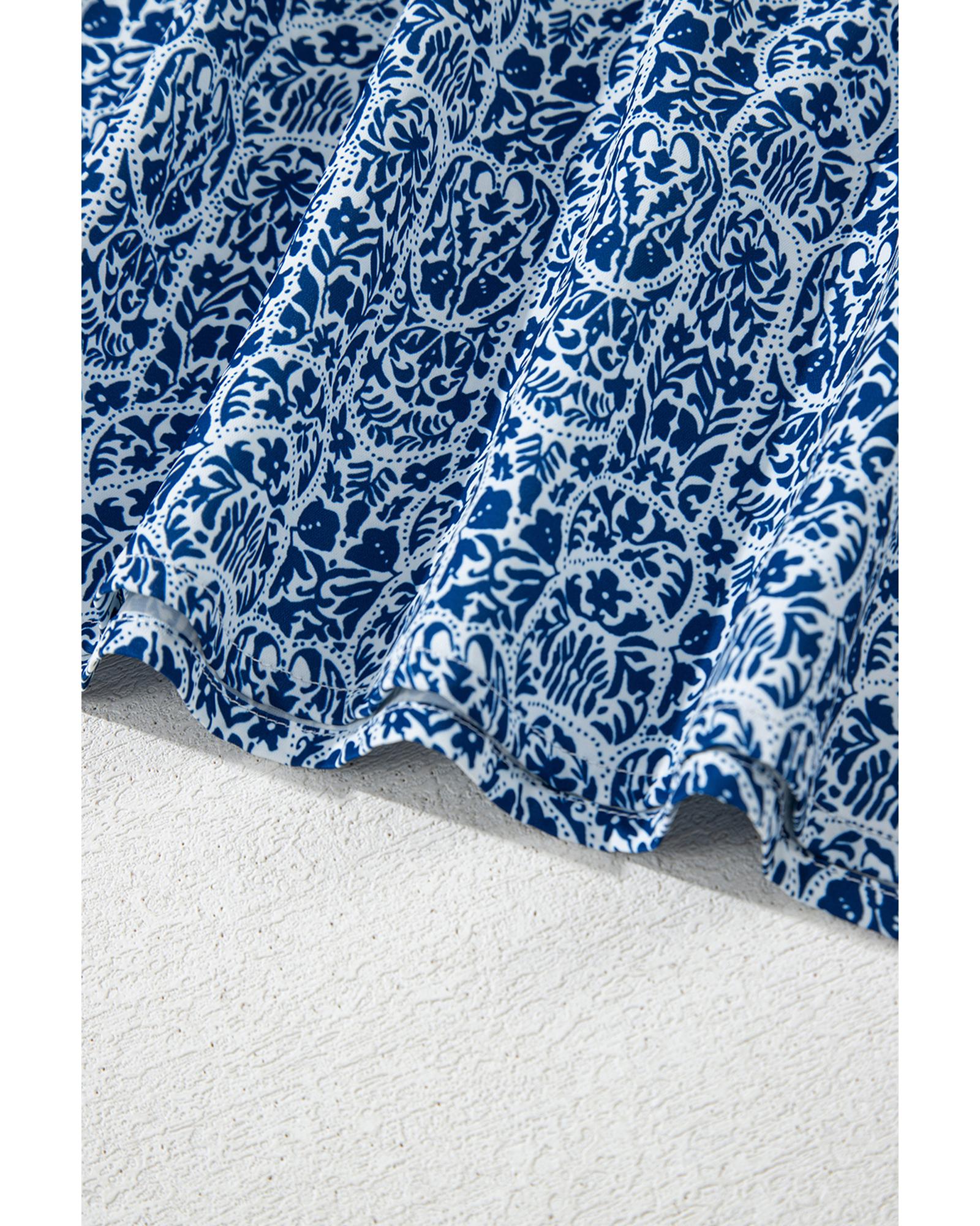 Multicolour Contrast Floral Patchwork Notched Neck Flutter Sleeve Blouse - M