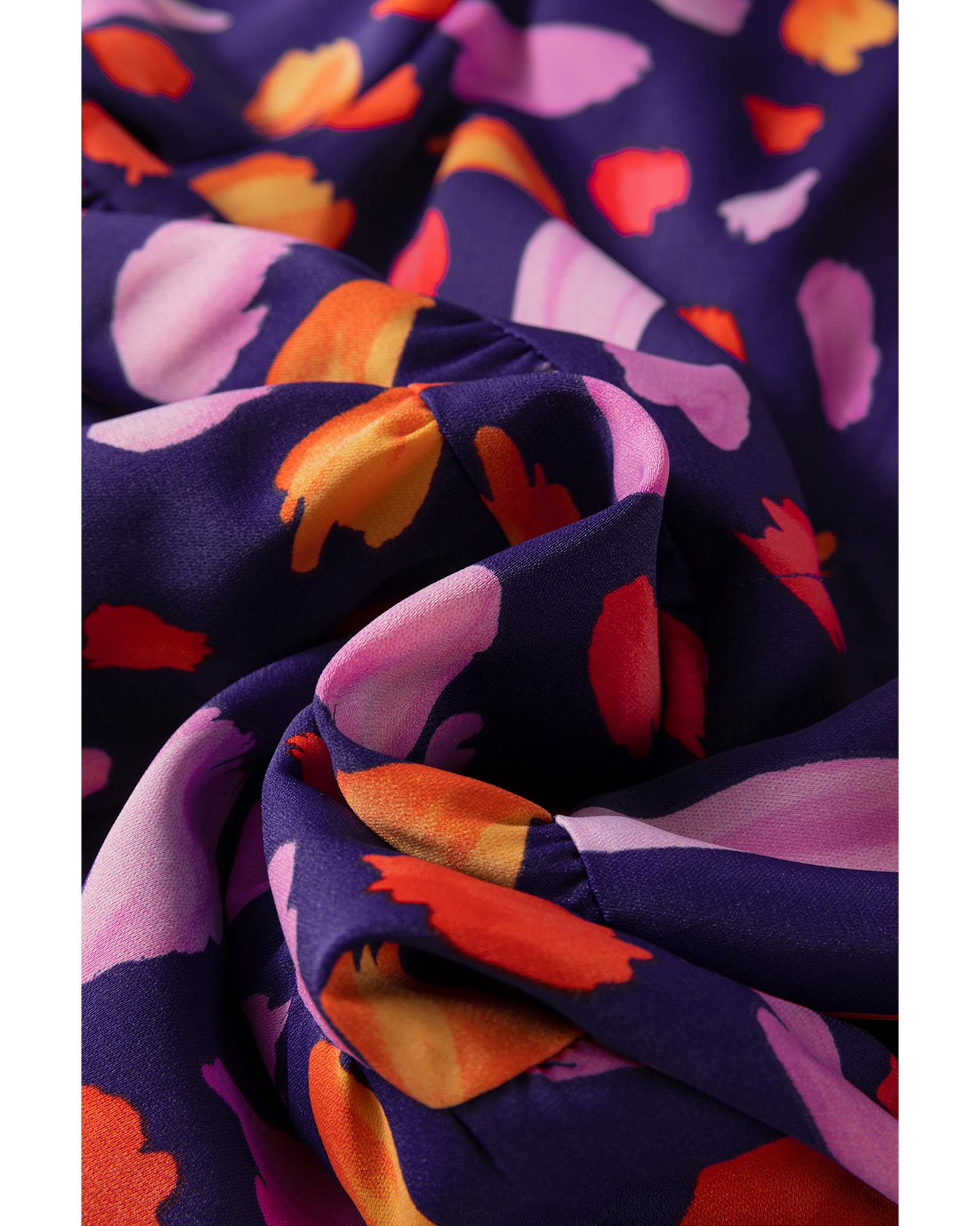 Blue Petal Collared Tiered Flowy Long Dress – 2XL