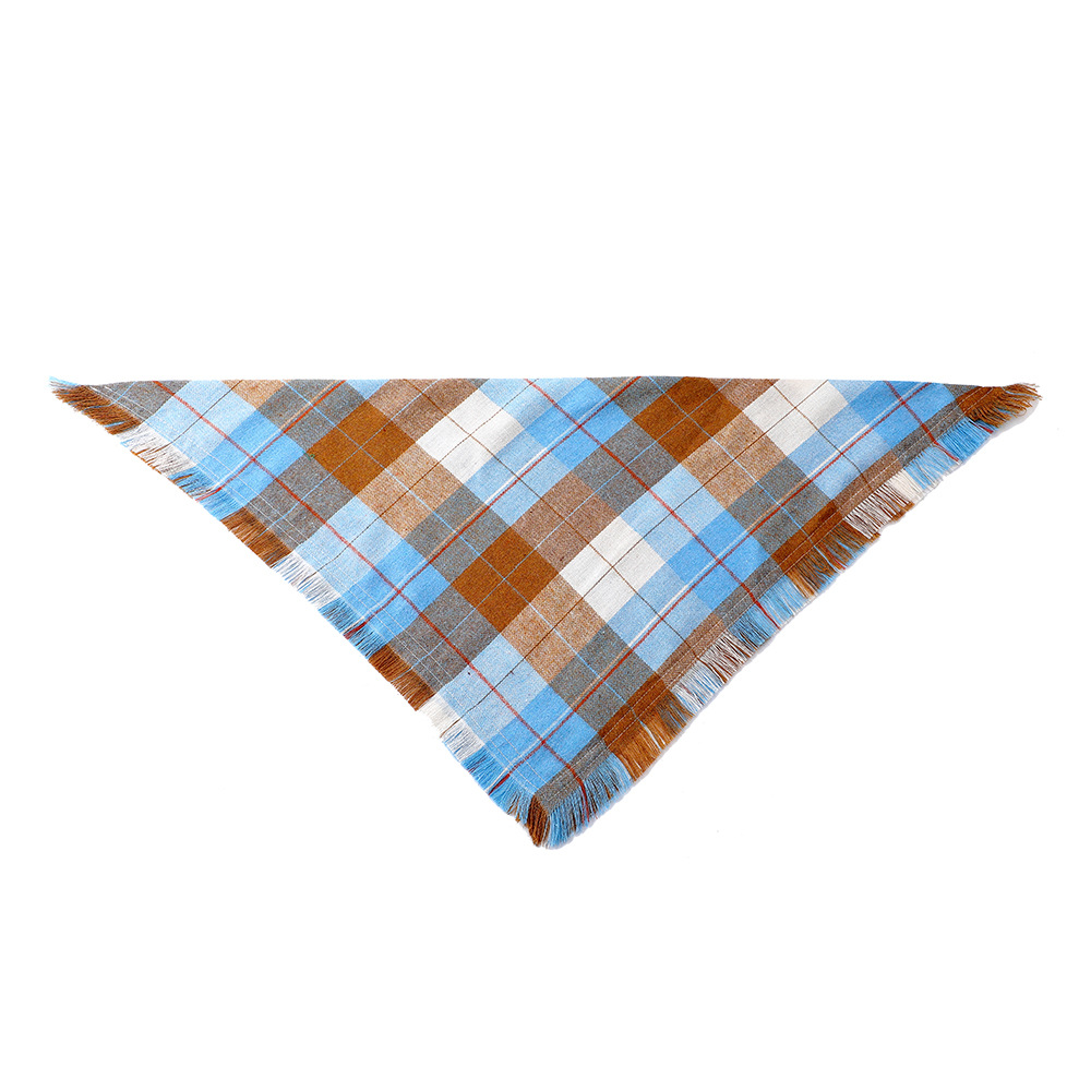 Blue S 55x38x38cm Thanksgiving Plaid Dog Bandana 2-Pack – Festive Tassel Triangle Scarf for Pets