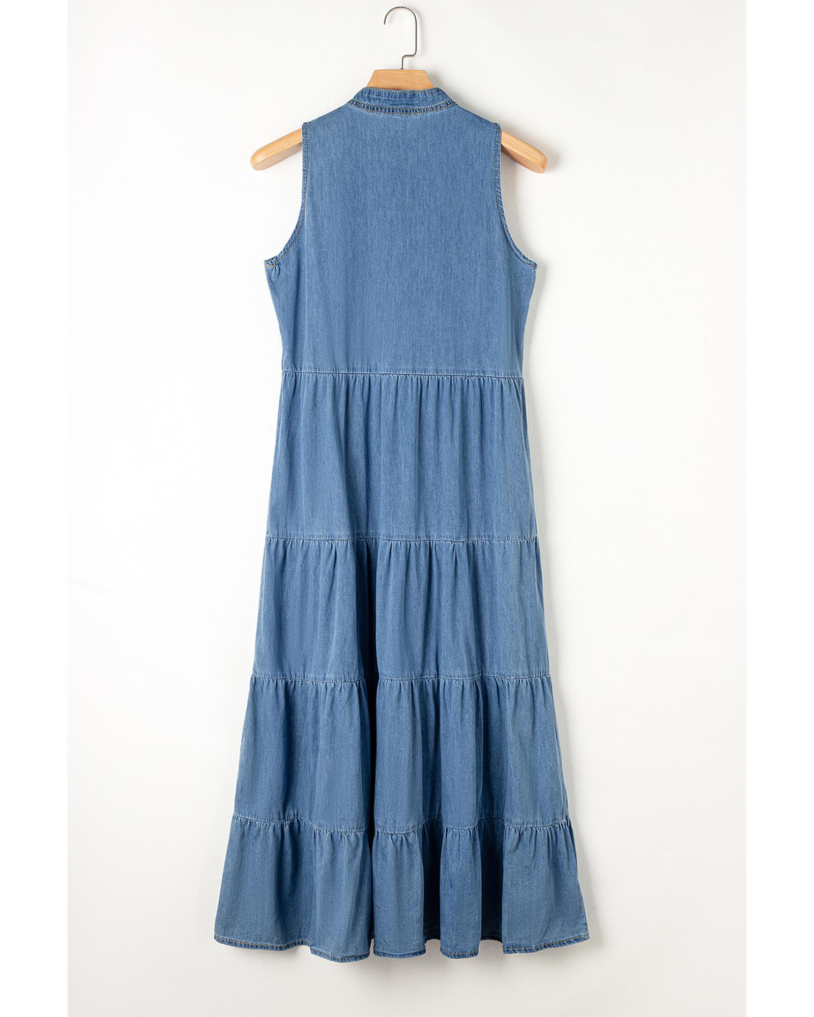 Blue Sleeveless Tiered Chambray Maxi Dress – S