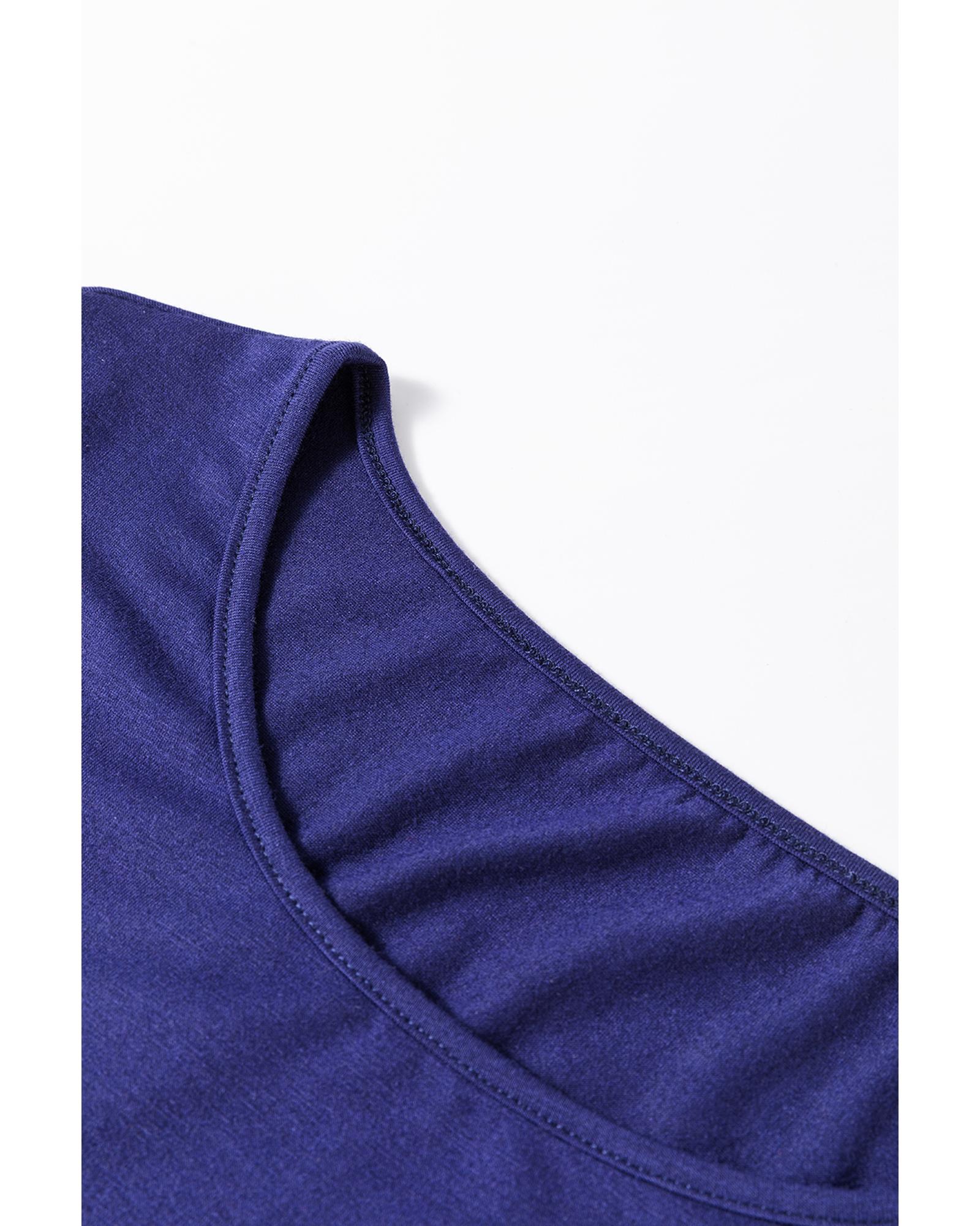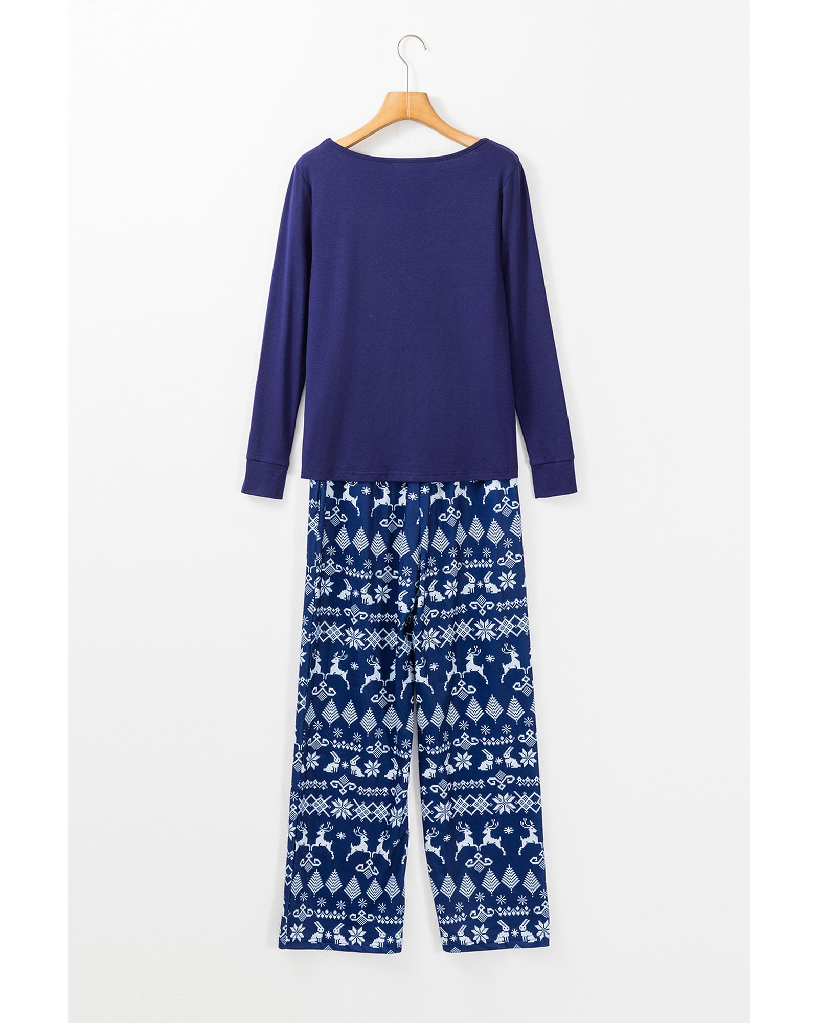 Blue Solid Top and Christmas Pants Two Piece Lounge Set – L