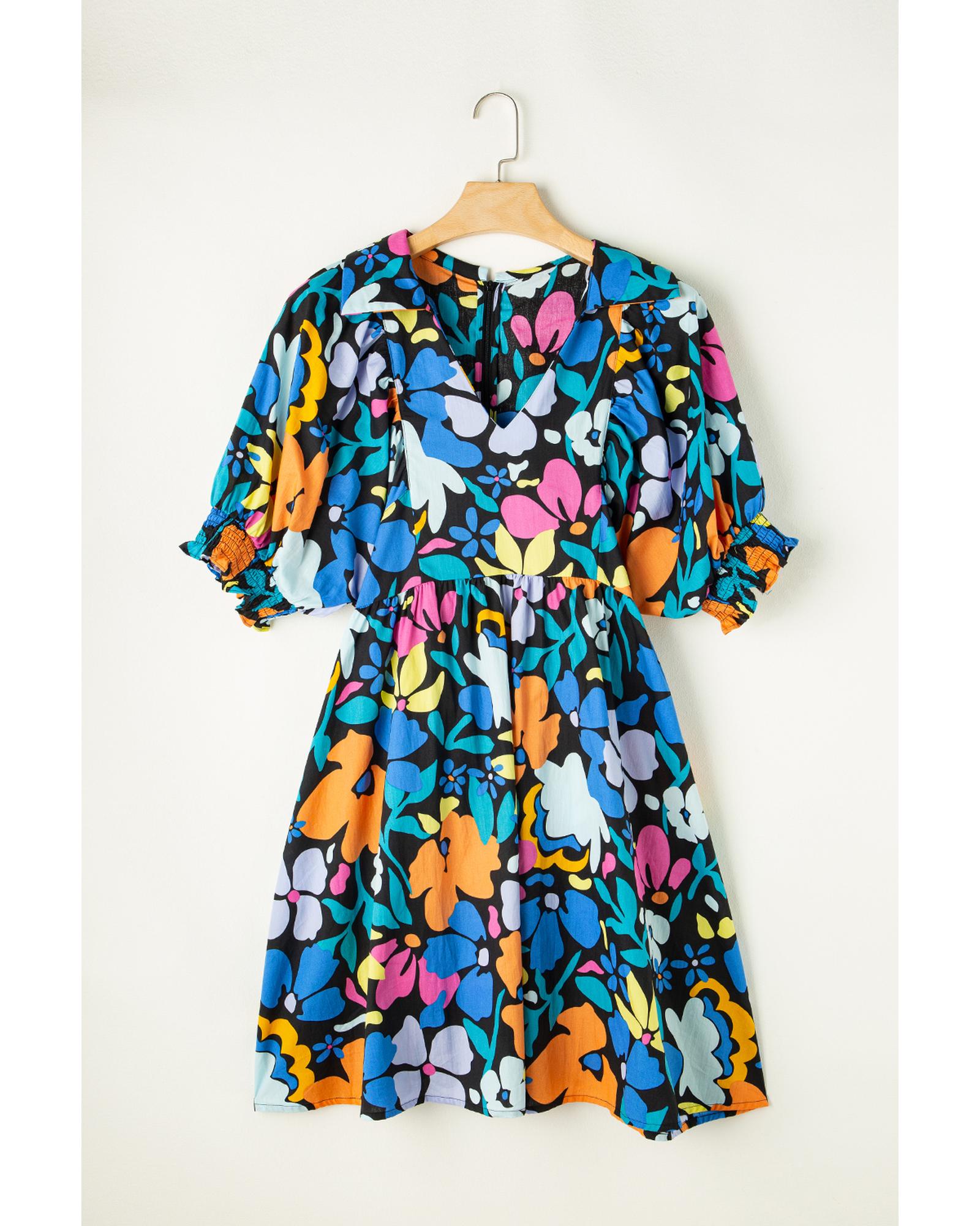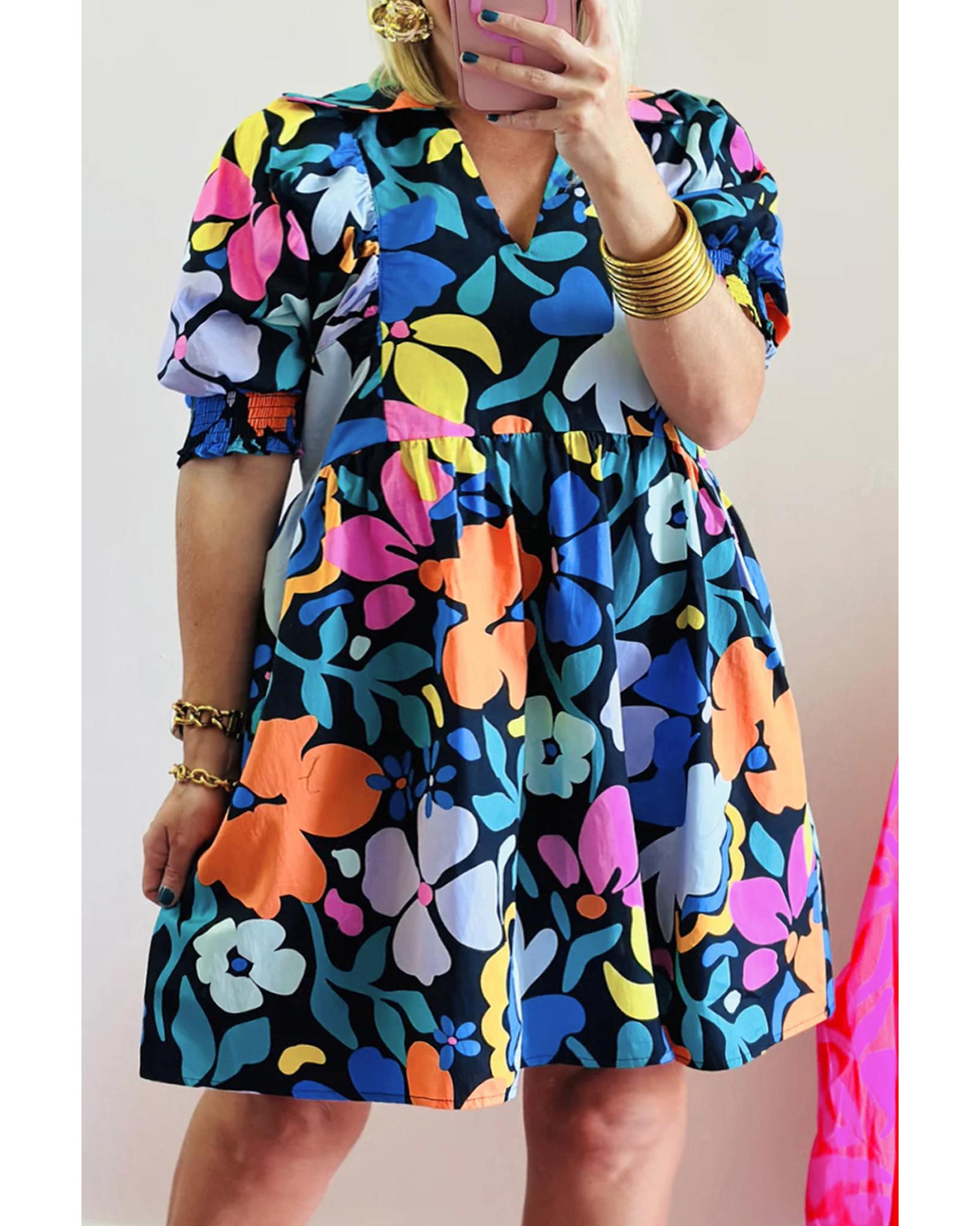 Blue Split Neck Collared Plus Floral Dress – 3X