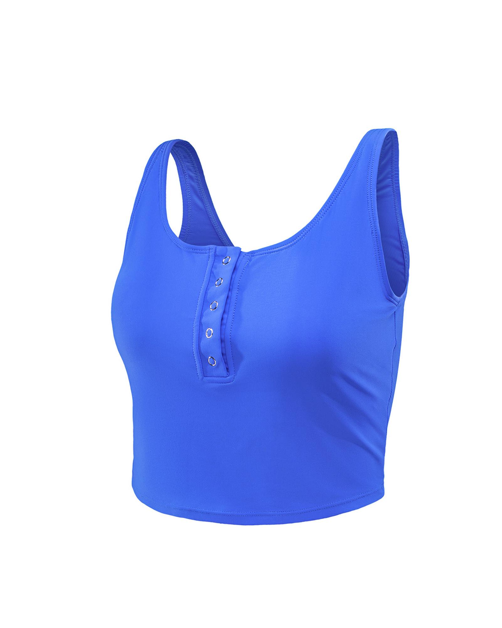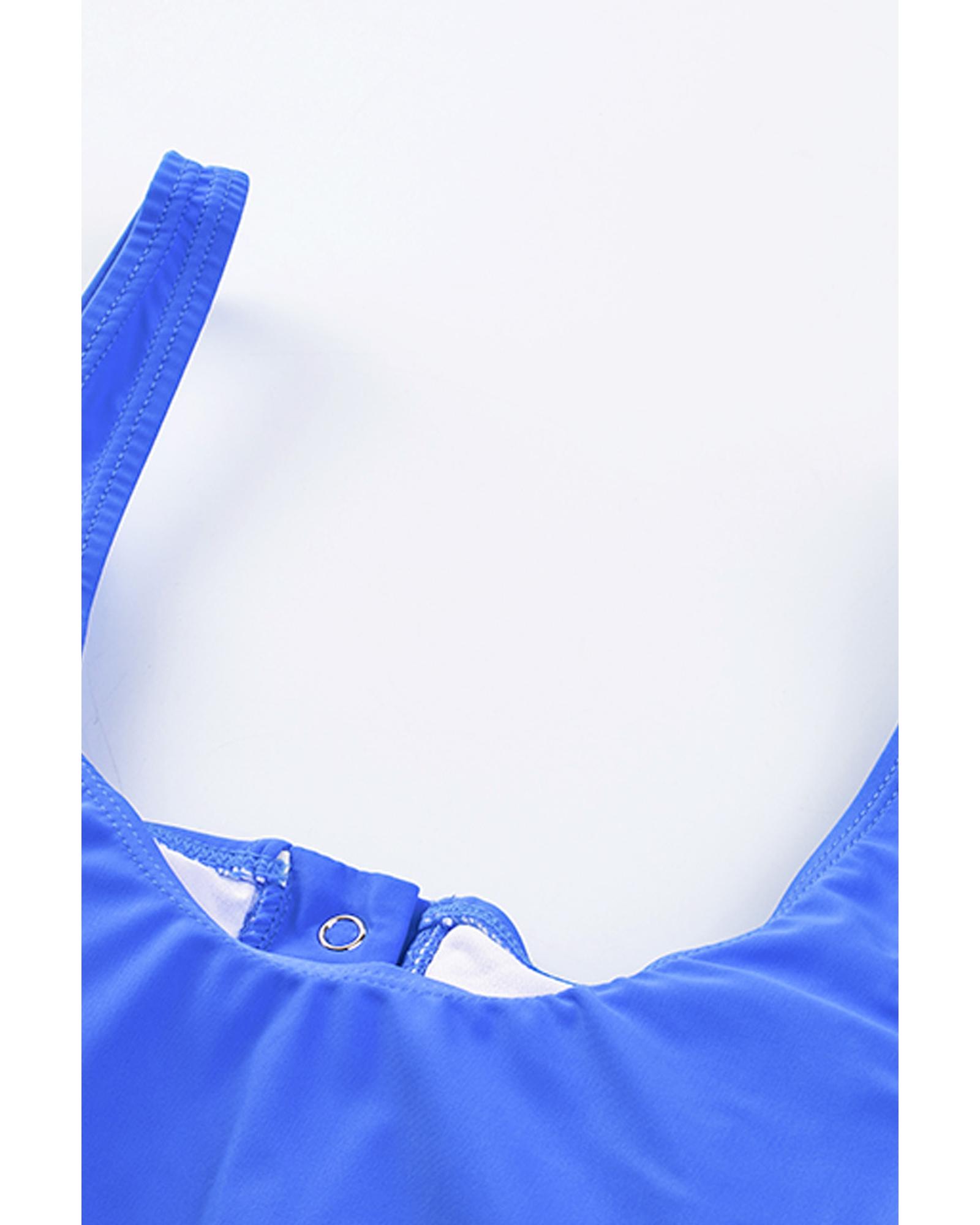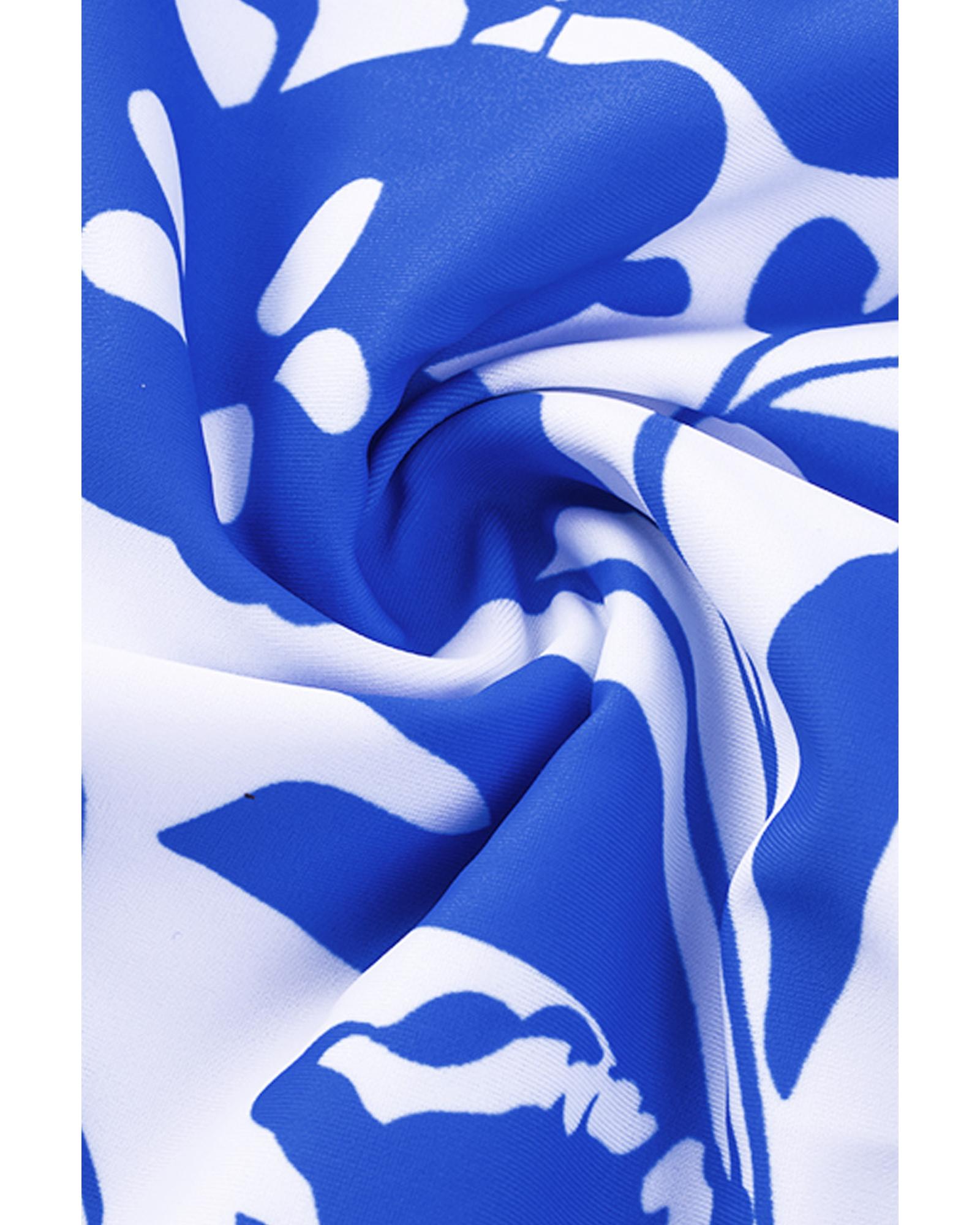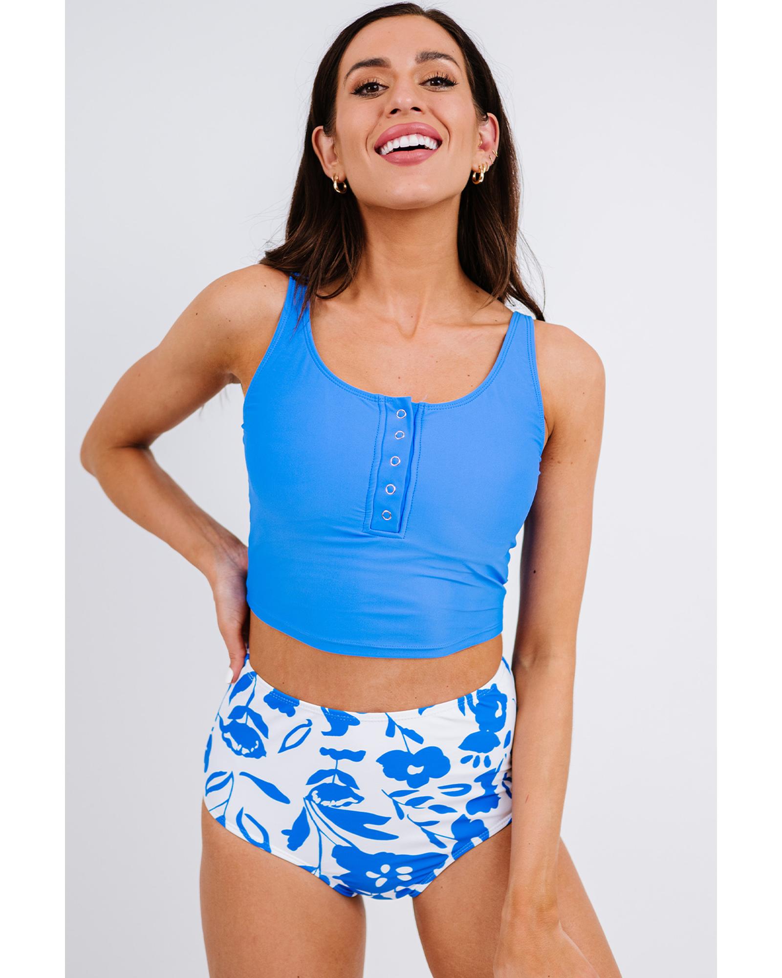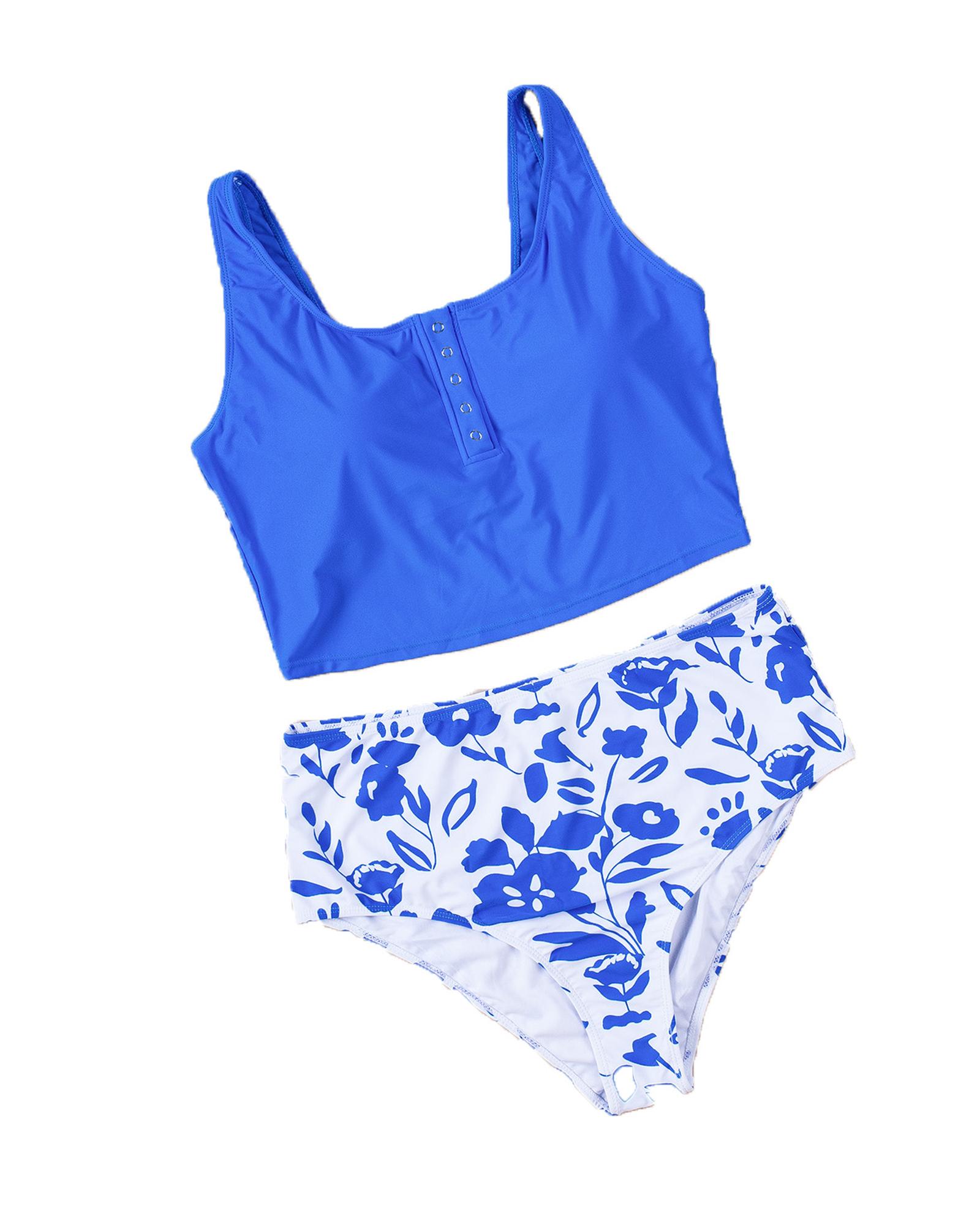 Blue Square Neck Sleeveless Fashion Print Tankini Set – M