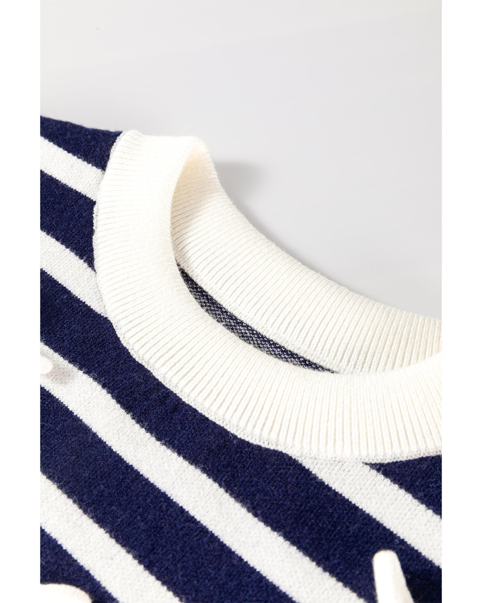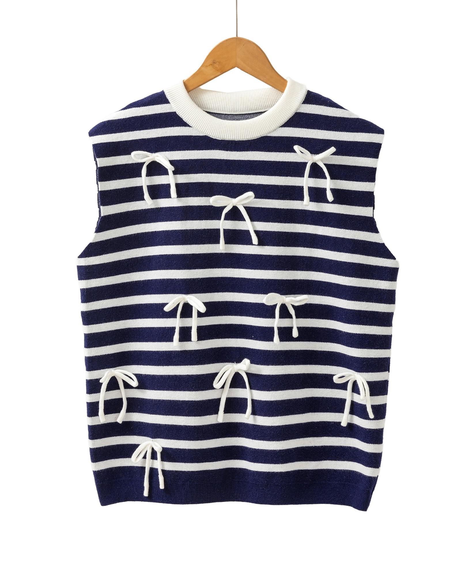 Blue Stripe Knitted Bow Decor Sweater Vest – M