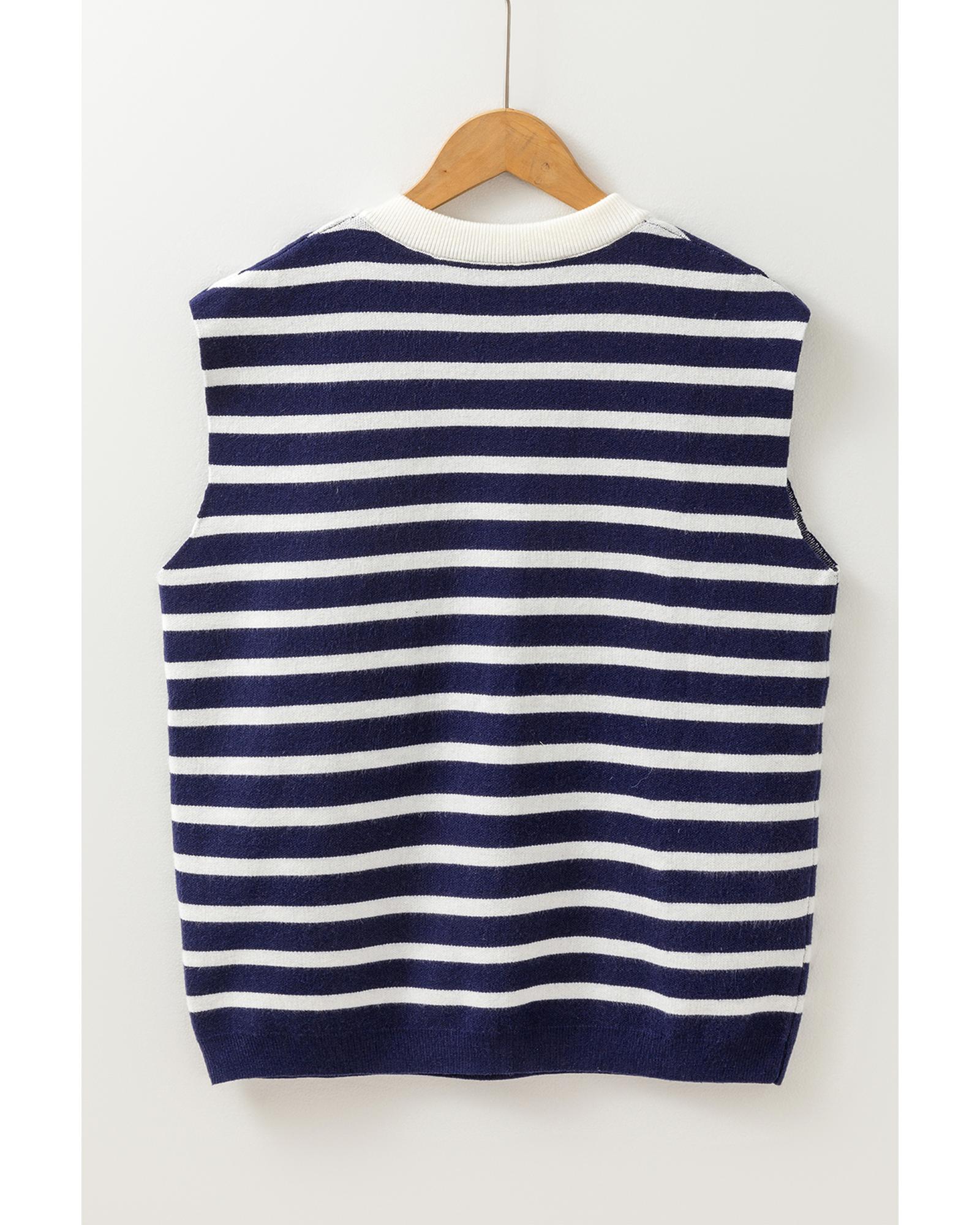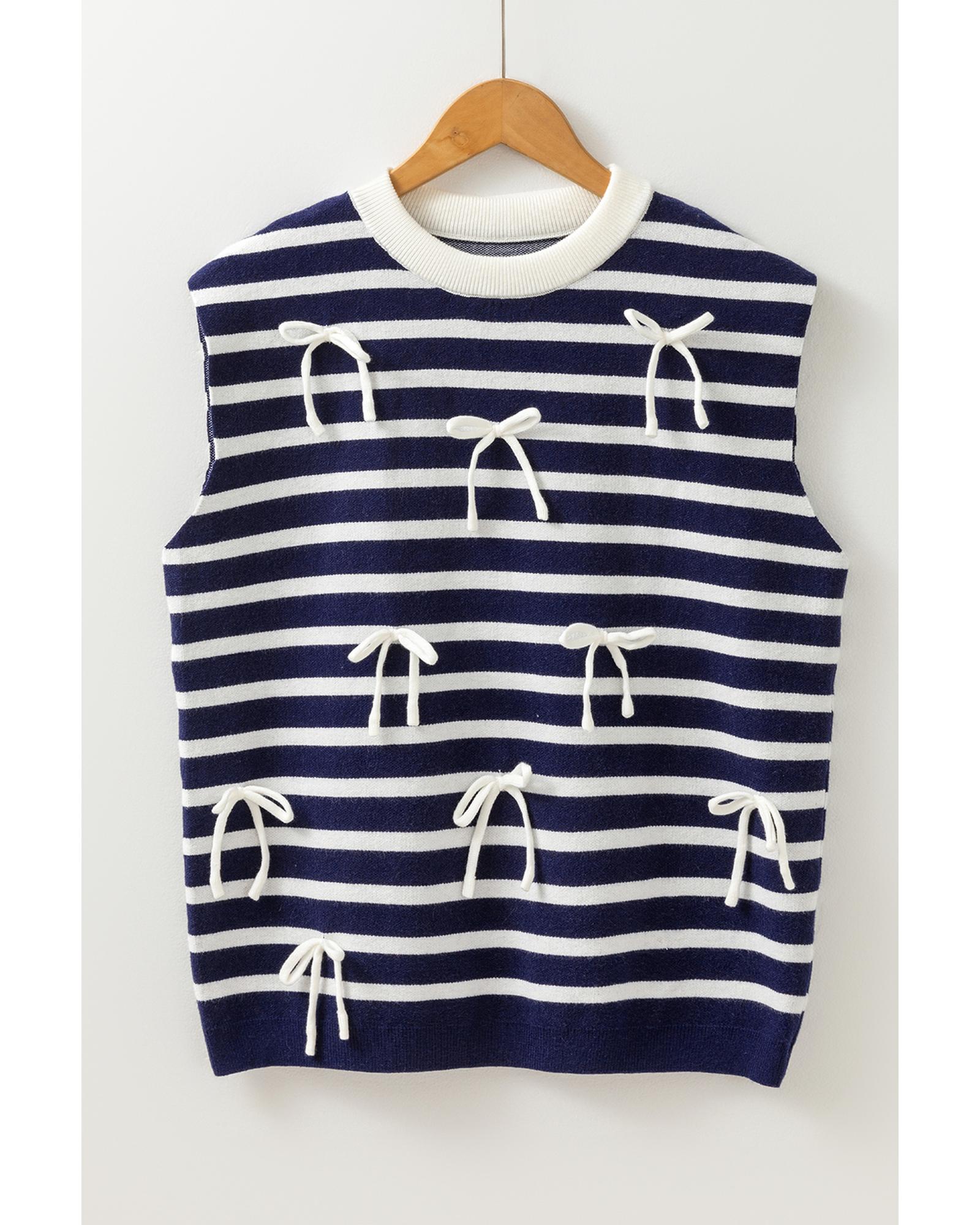 Blue Stripe Knitted Bow Decor Sweater Vest - S