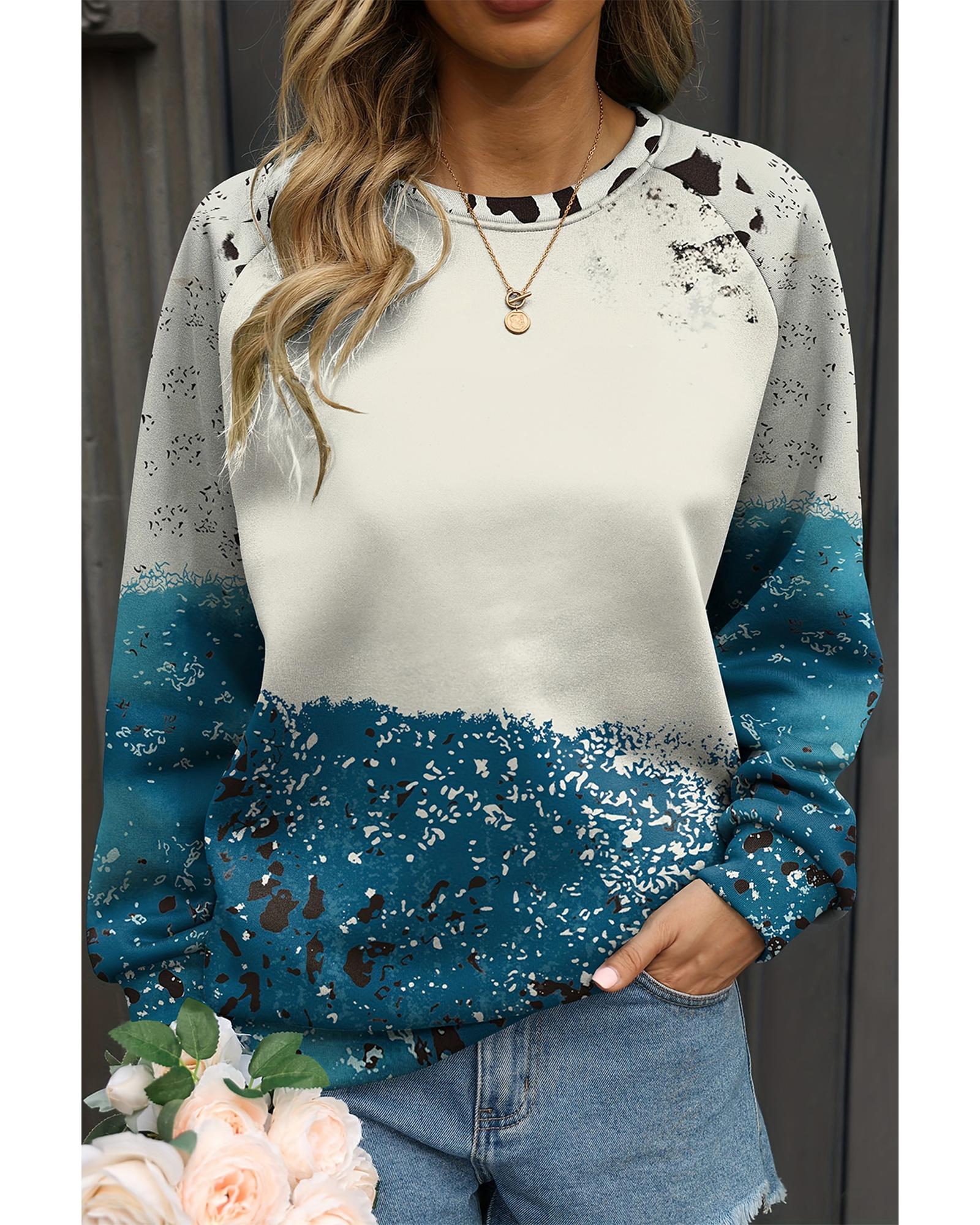 Blue Tie Dye Cow Color Block Pullover Sweatshirt – M