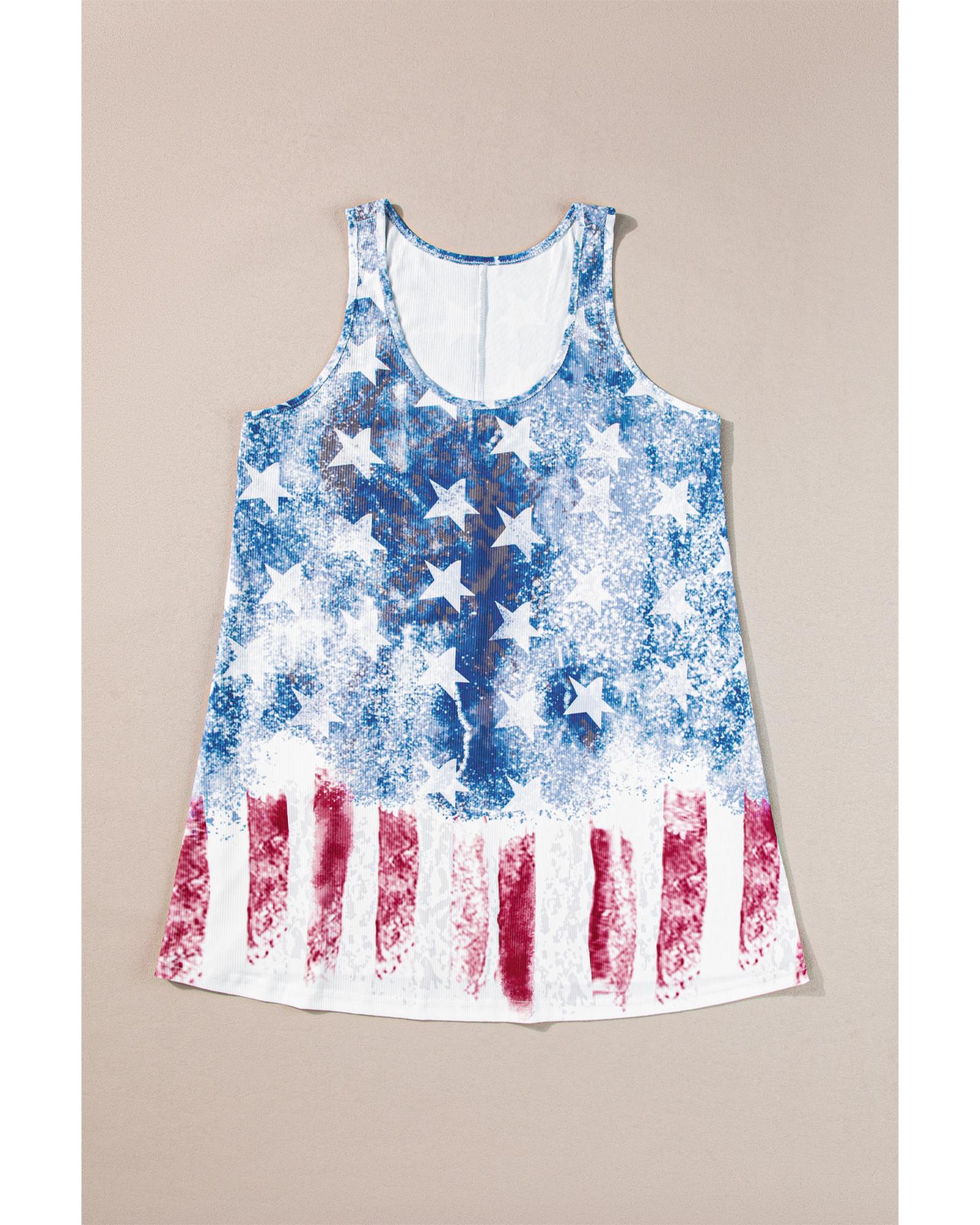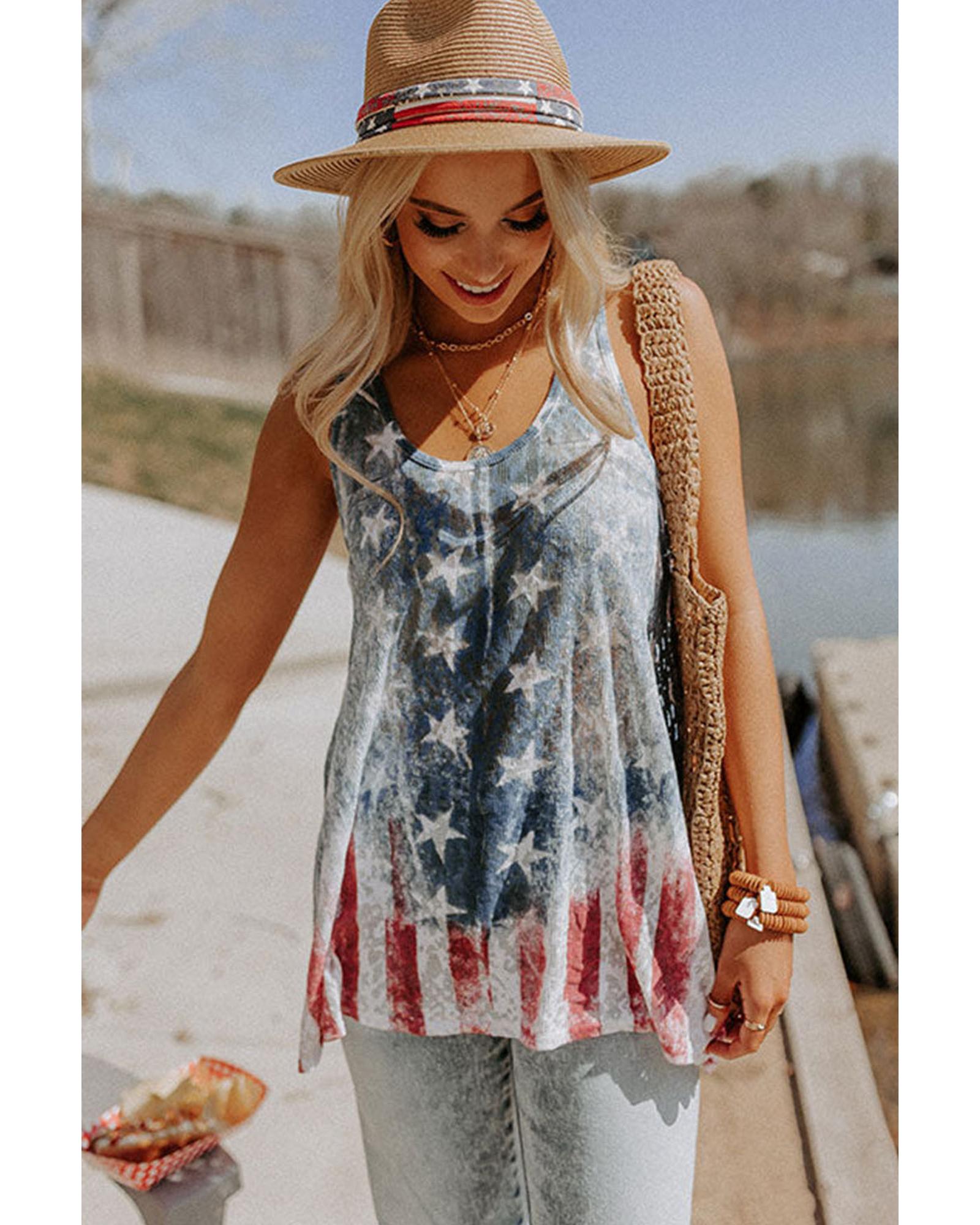Blue Vintage Washed Flag Print Shift Tank Top – L