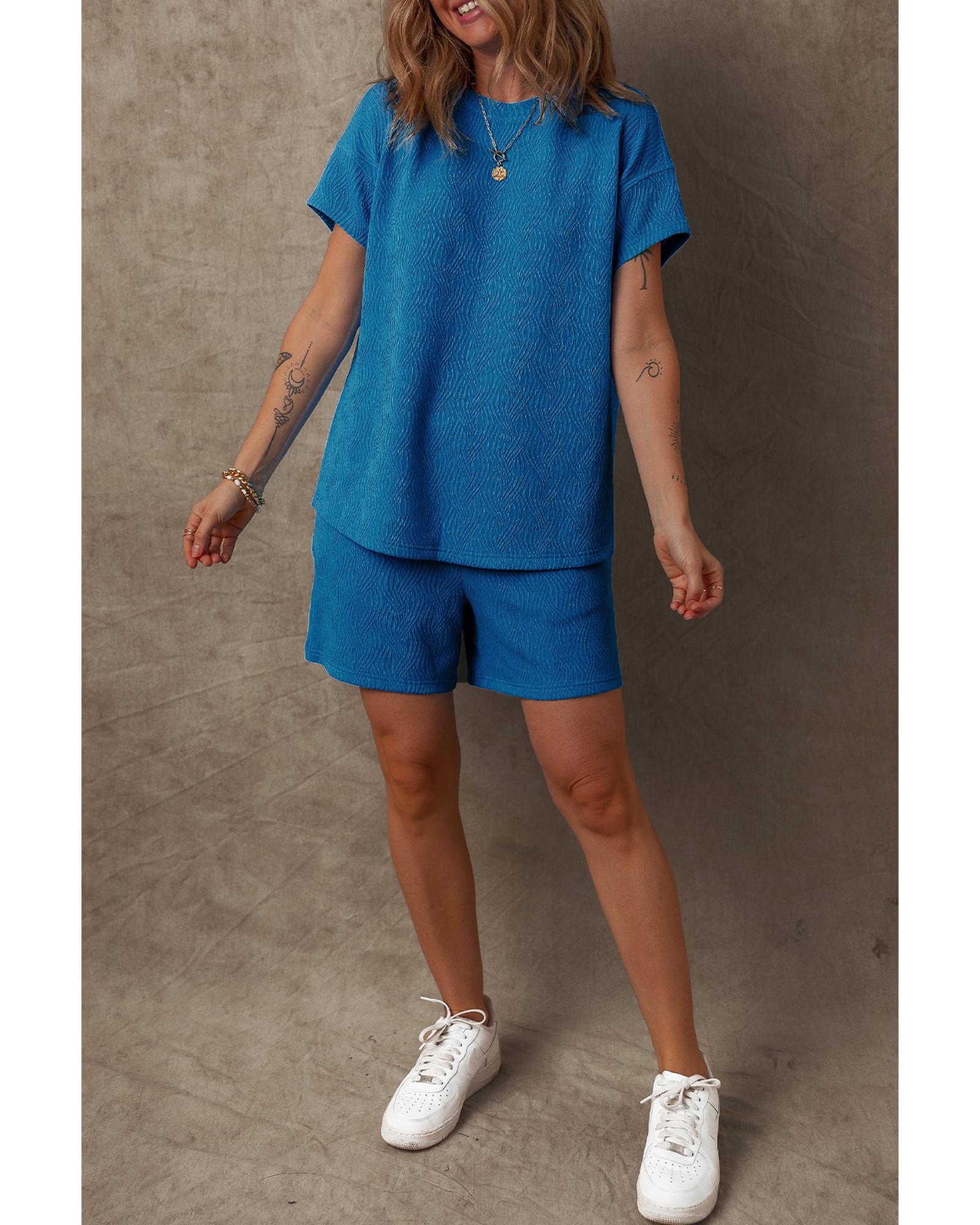 Dark Grey Drawstring Side Crewneck Tee and Loose Pants Set - XL