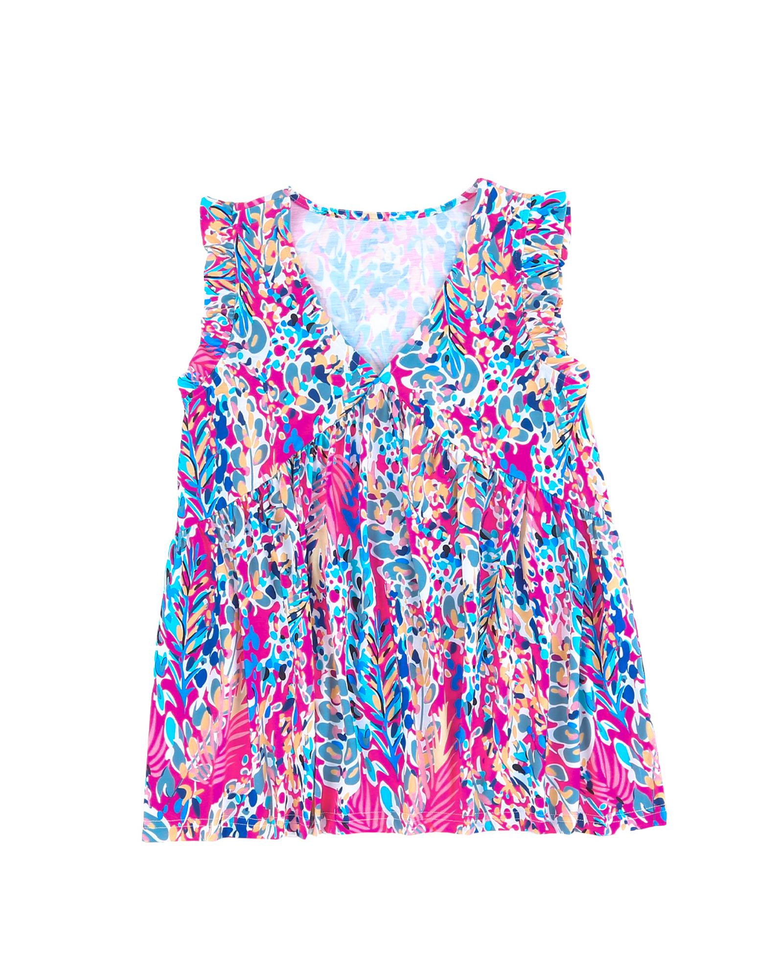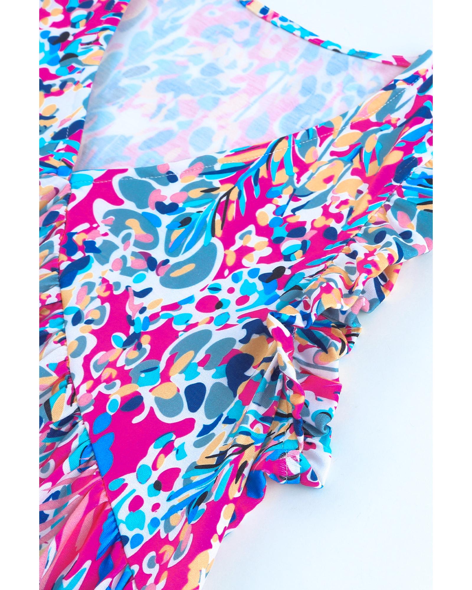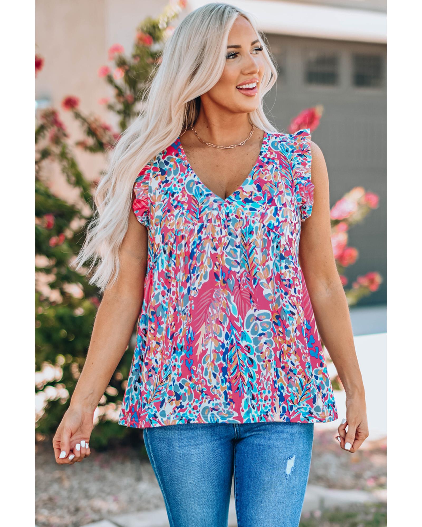 Boho Pattern Print Flounce V Neck Tank Top – S
