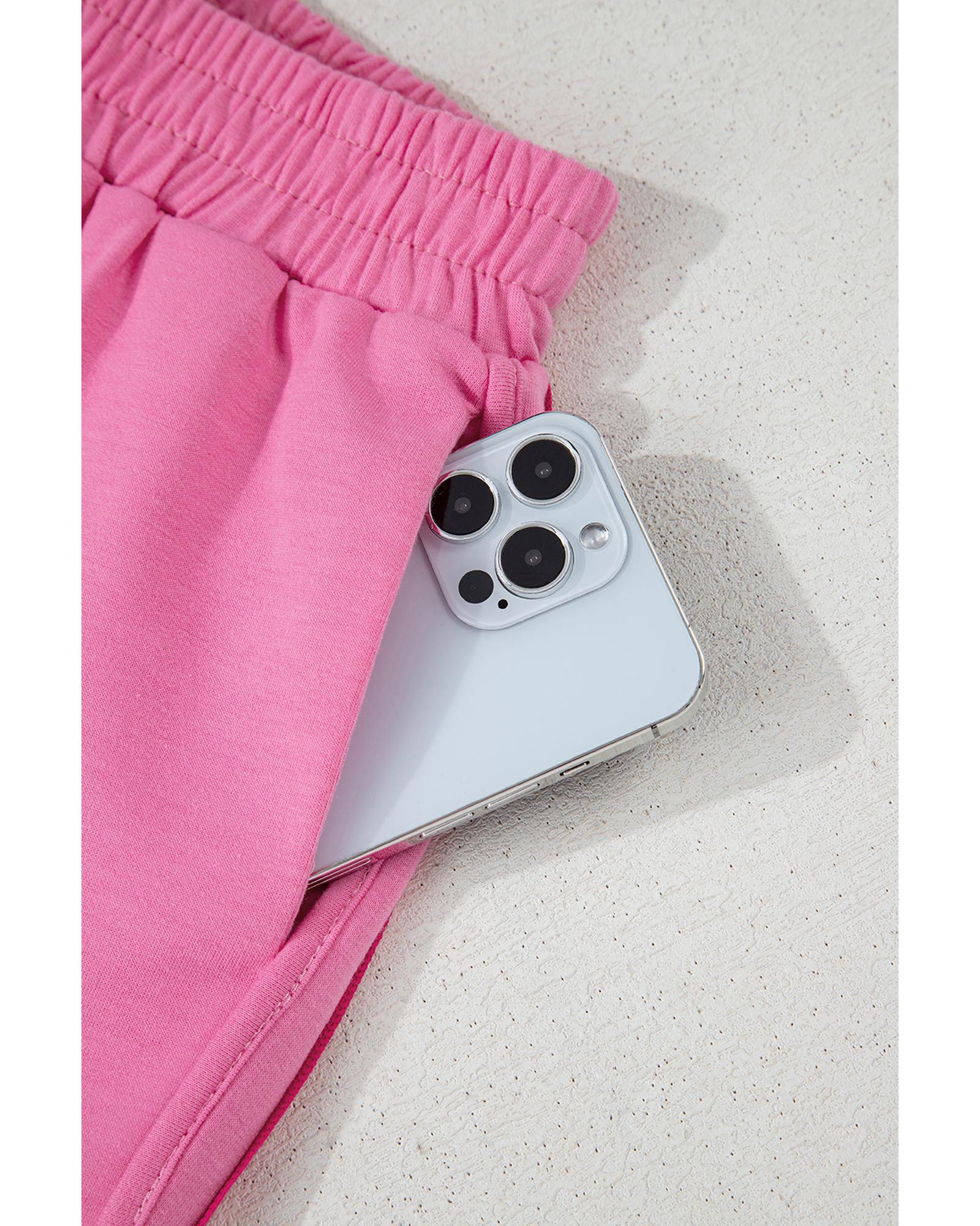 Bonbon Color Block Stripes Elastic High Waist Active Shorts – L