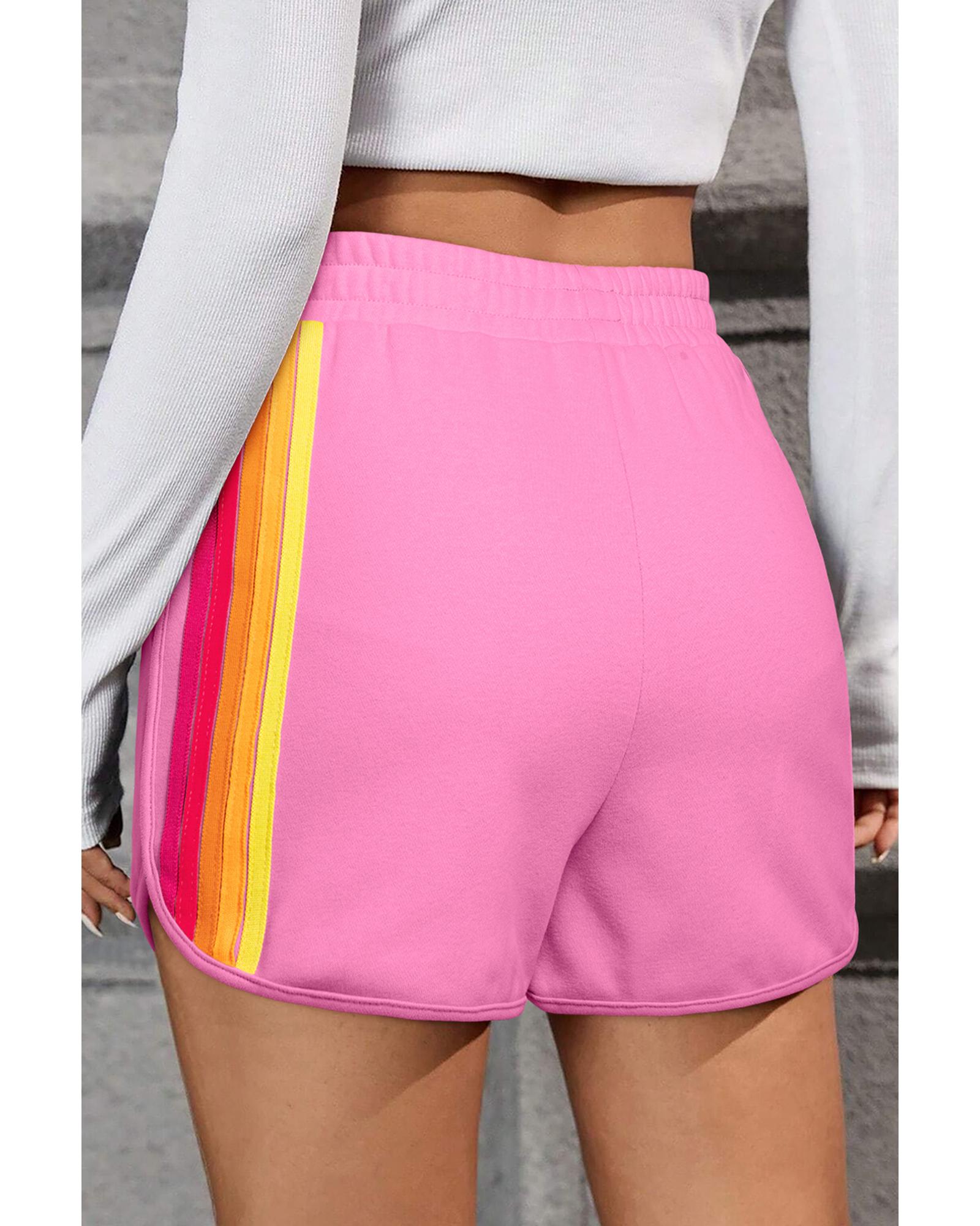 Bonbon Color Block Stripes Elastic High Waist Active Shorts – M