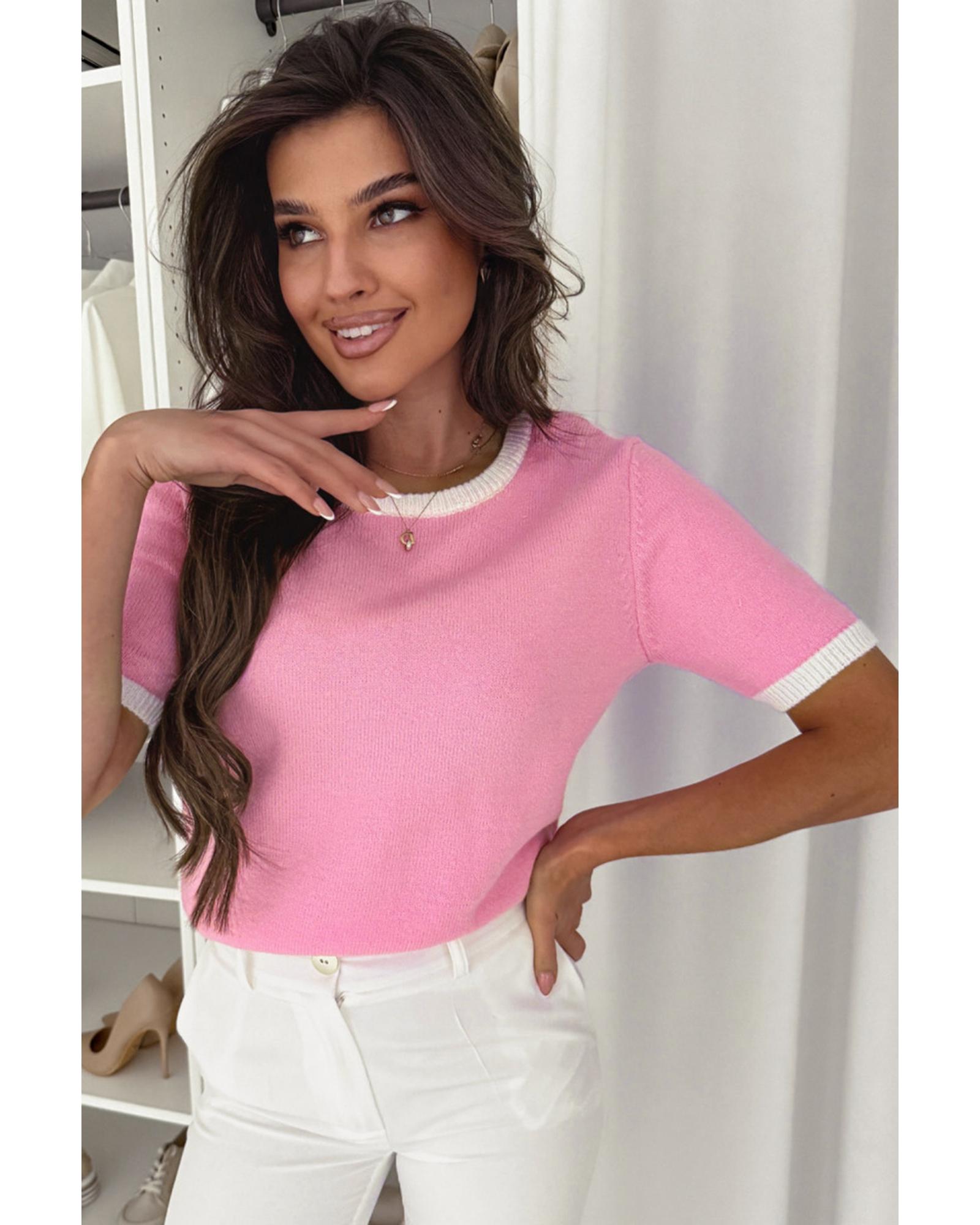 Bonbon Colorblock Bow V-Shape Cut Back Short Sleeve Sweater – XL