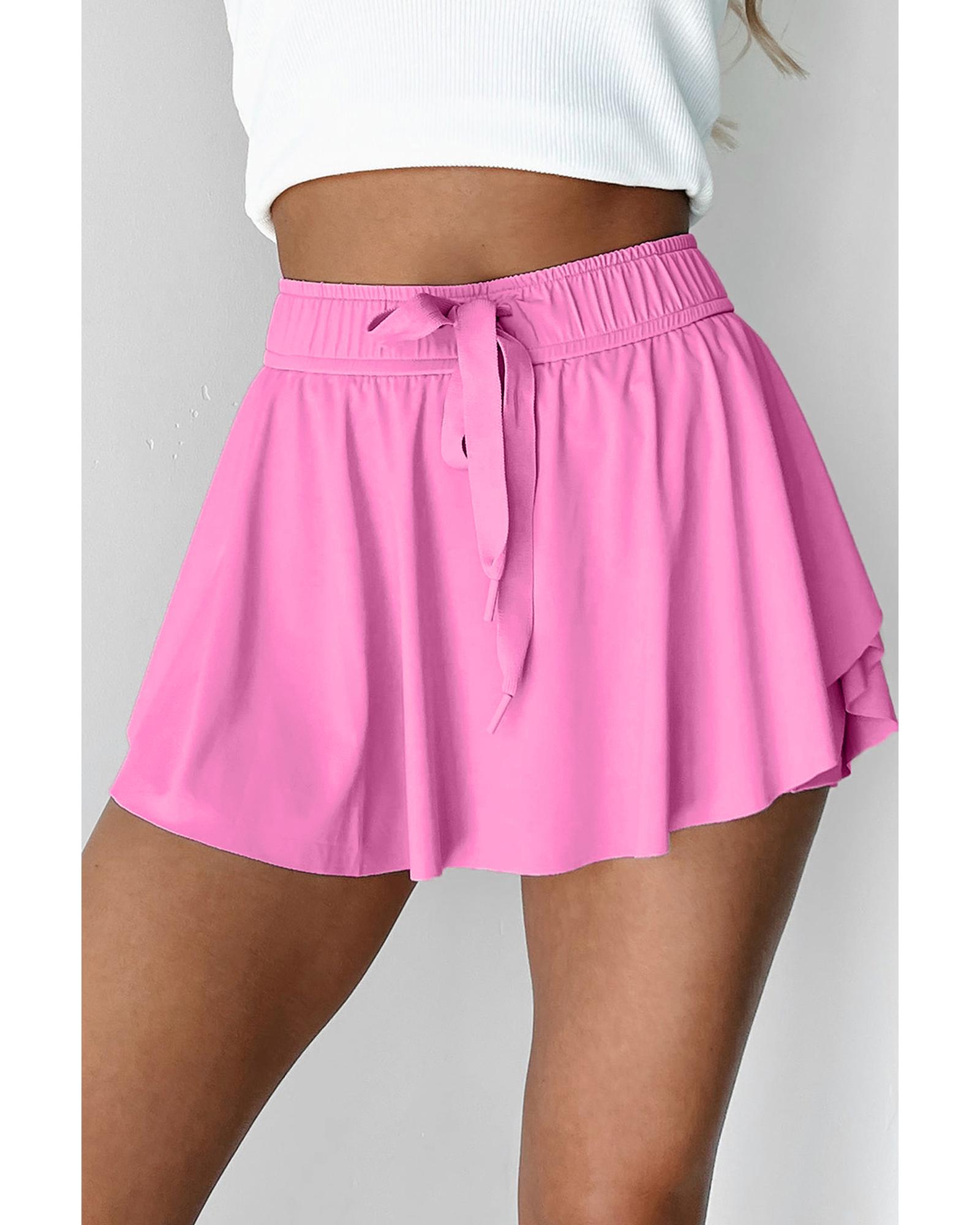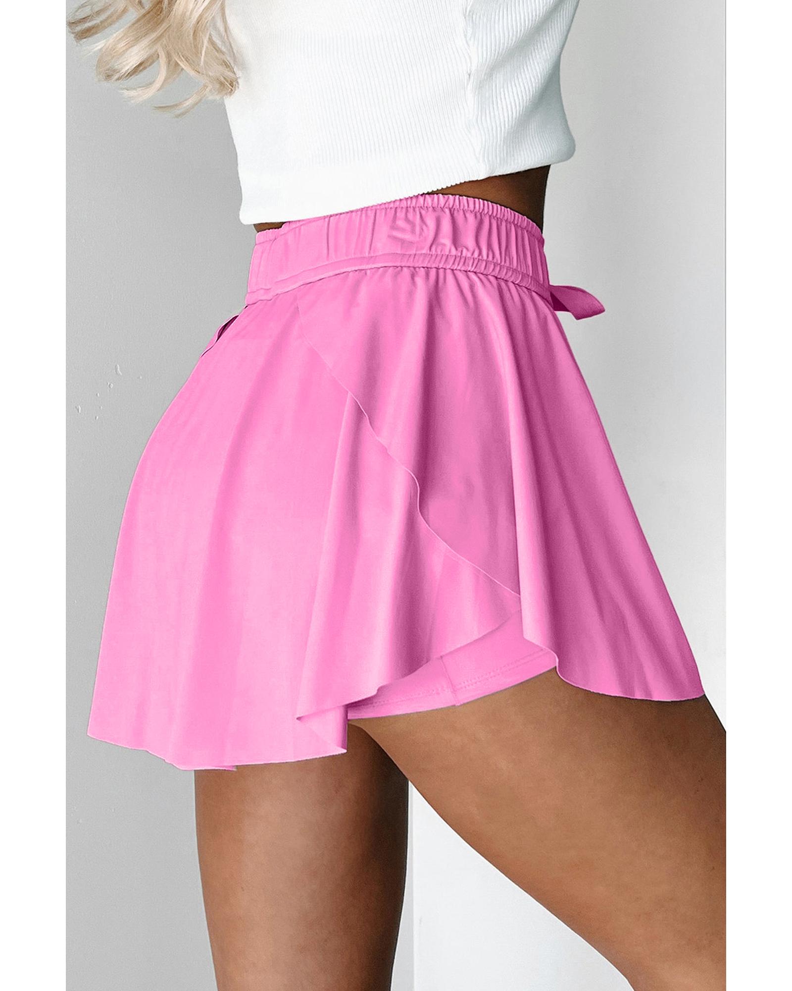 Bonbon Drawstring High Waist Lined Tennis Skorts – L