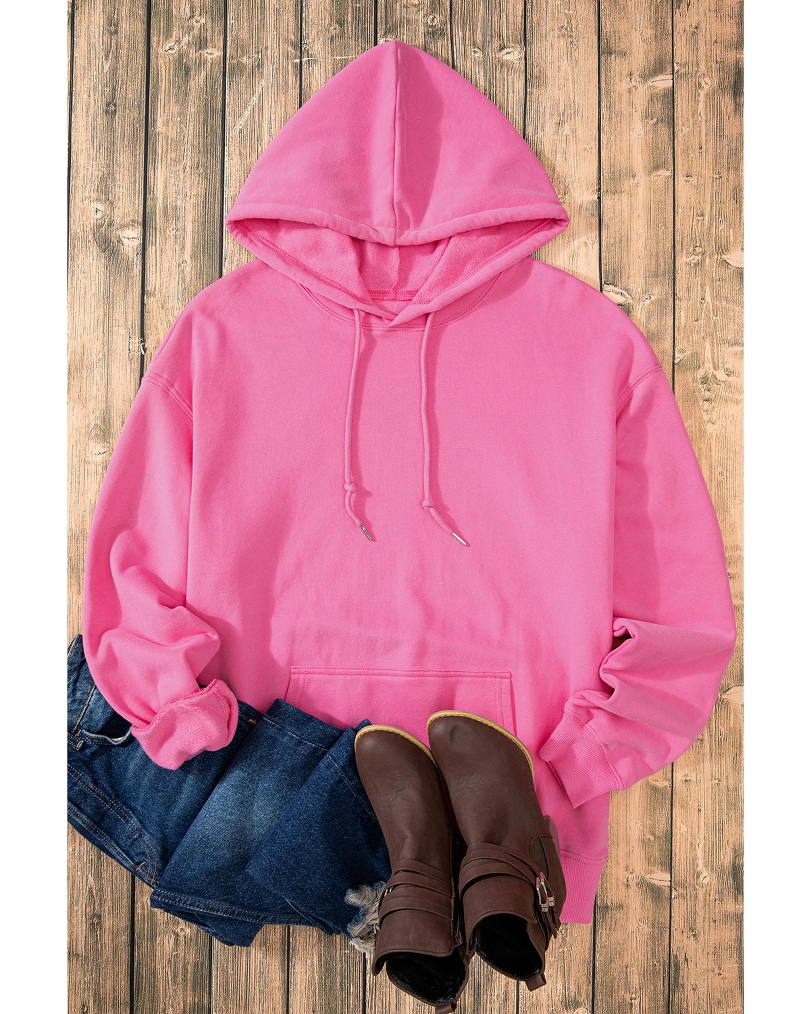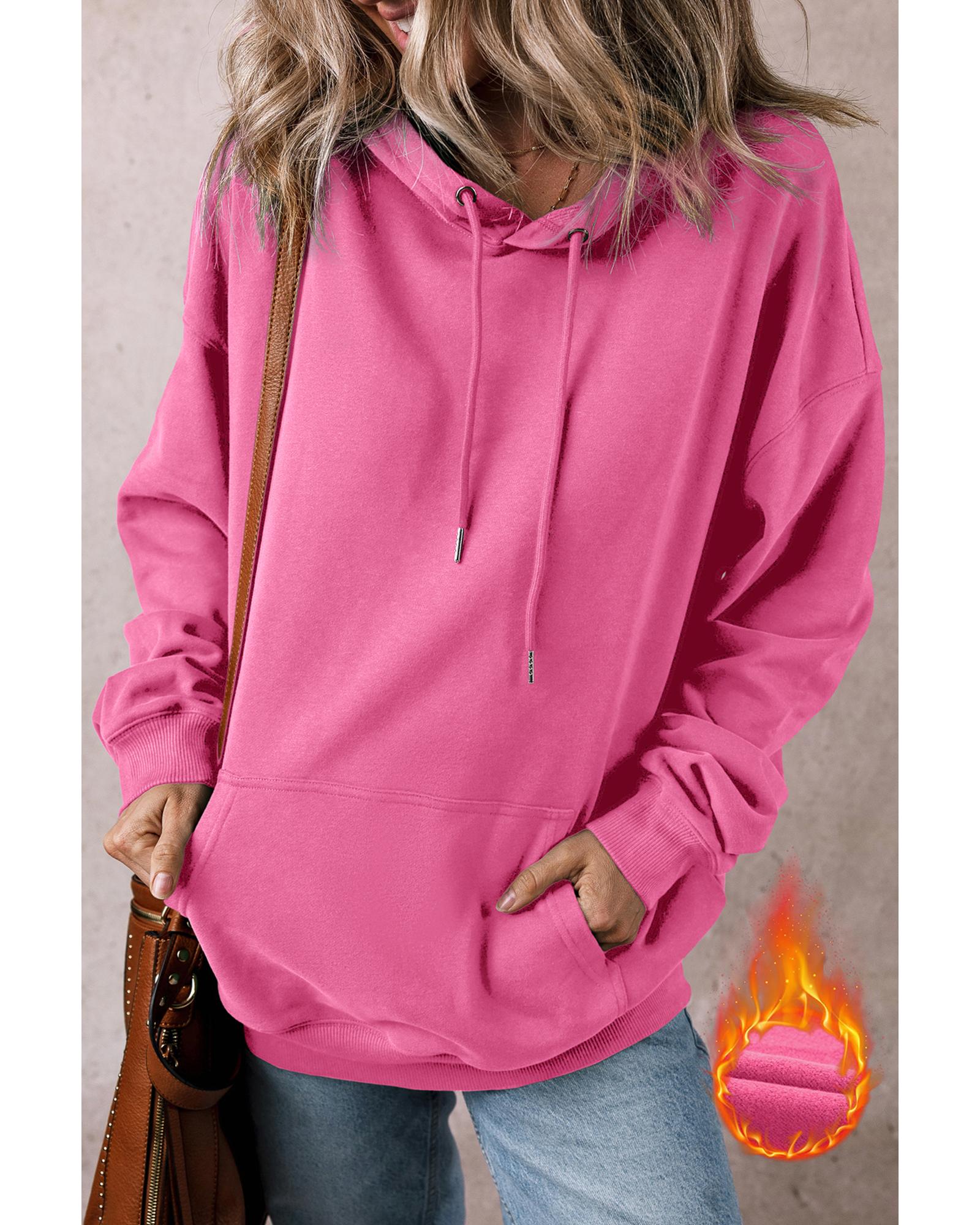 Bonbon Fleece Lined Kangaroo Pocket Drawstring Chunky Hoodie – L