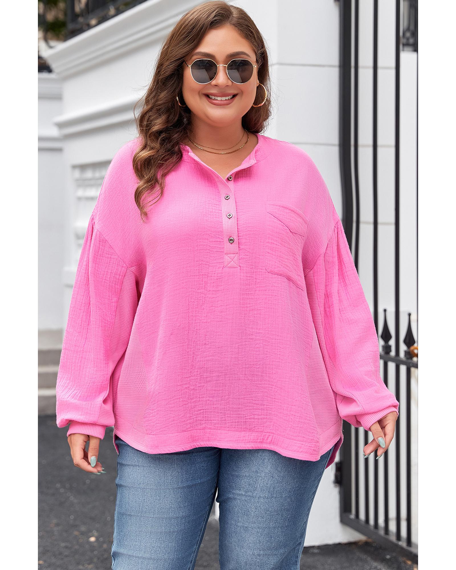 Bonbon Half Buttons Chest Pocket Drop Sleeve Plus Size Top – 2X