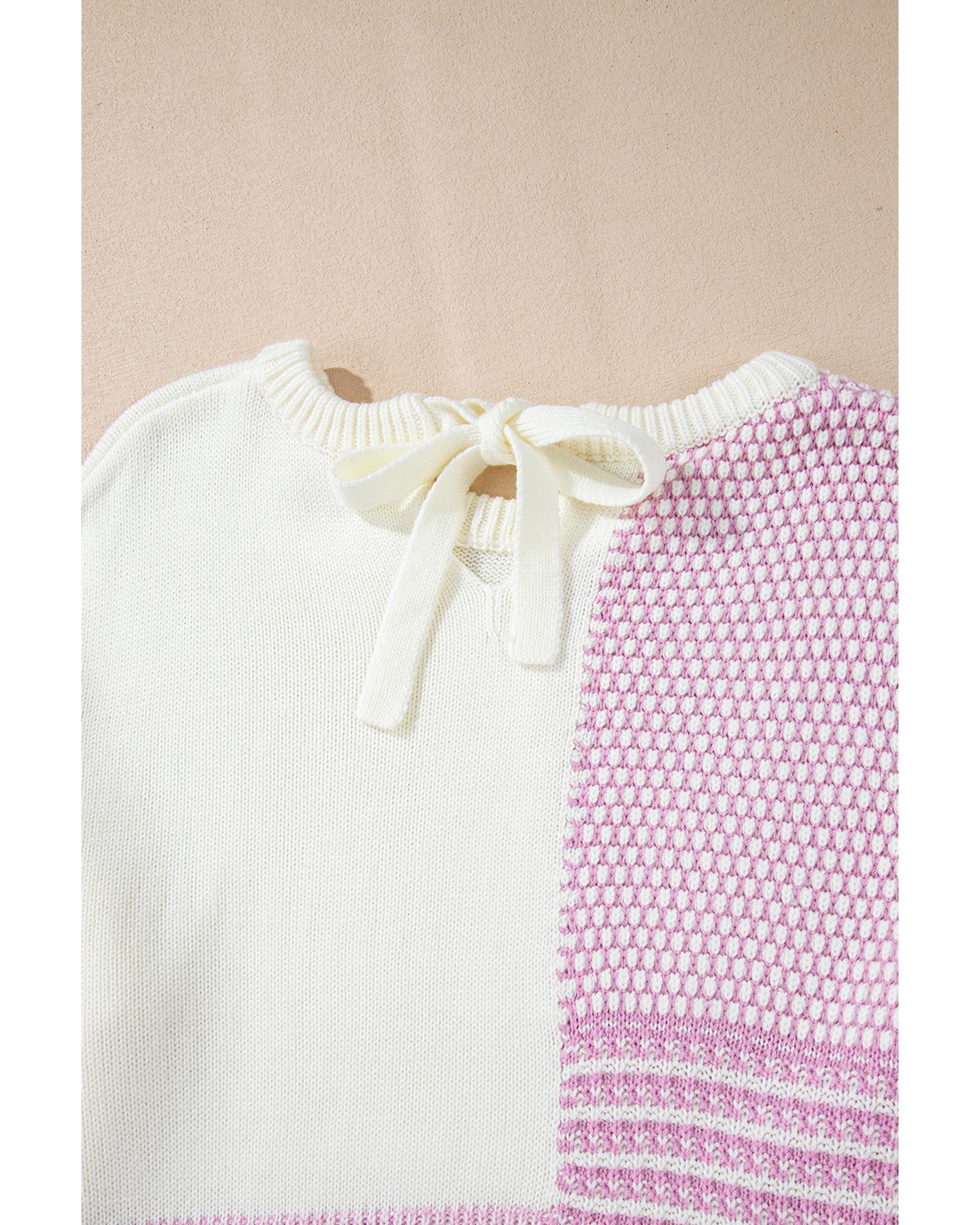 Bonbon Neutral Colorblock Tie Back Sweater – L