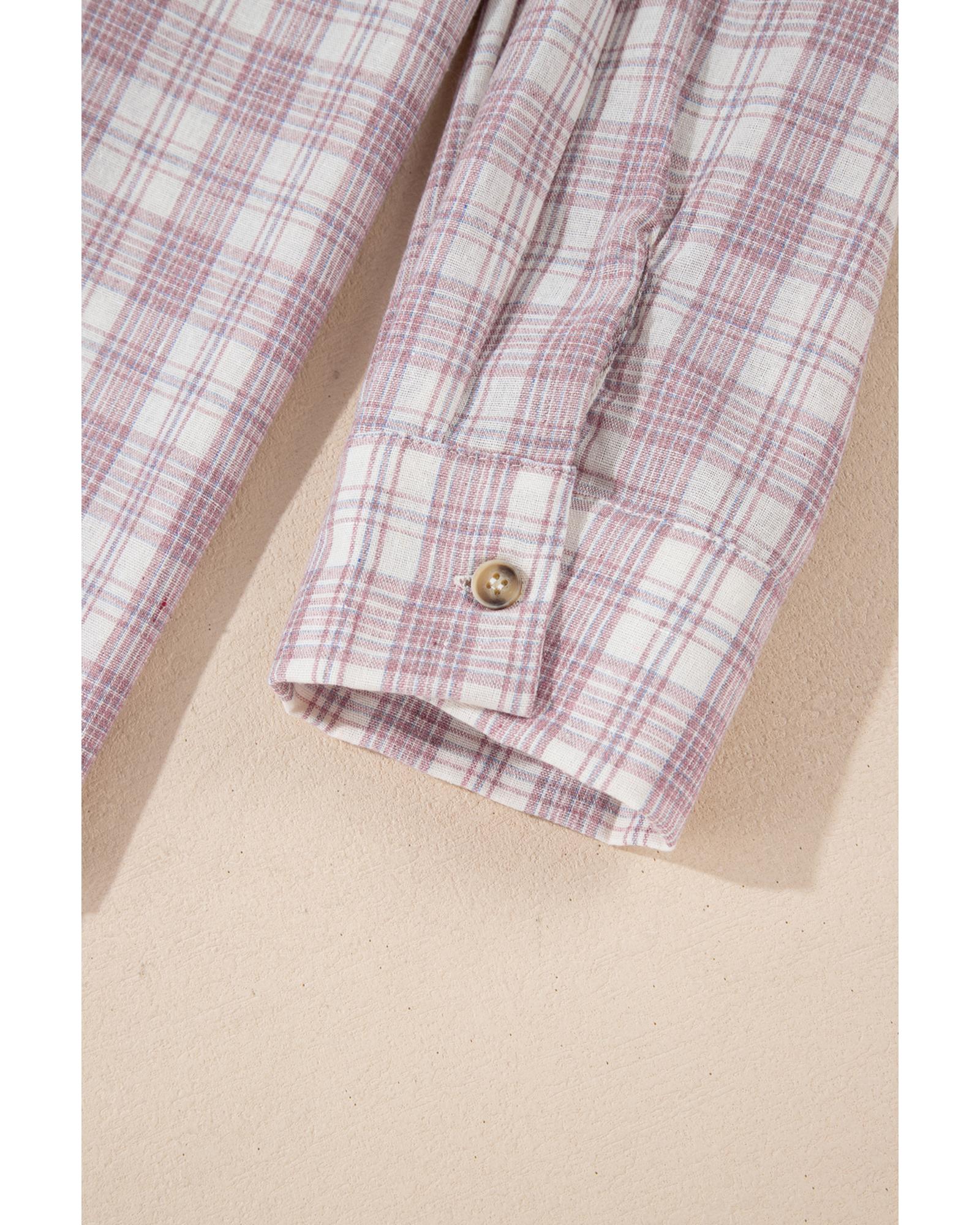 Bonbon Plaid Print Drawstring Hooded Button-up Plus Size Shirt – 2X