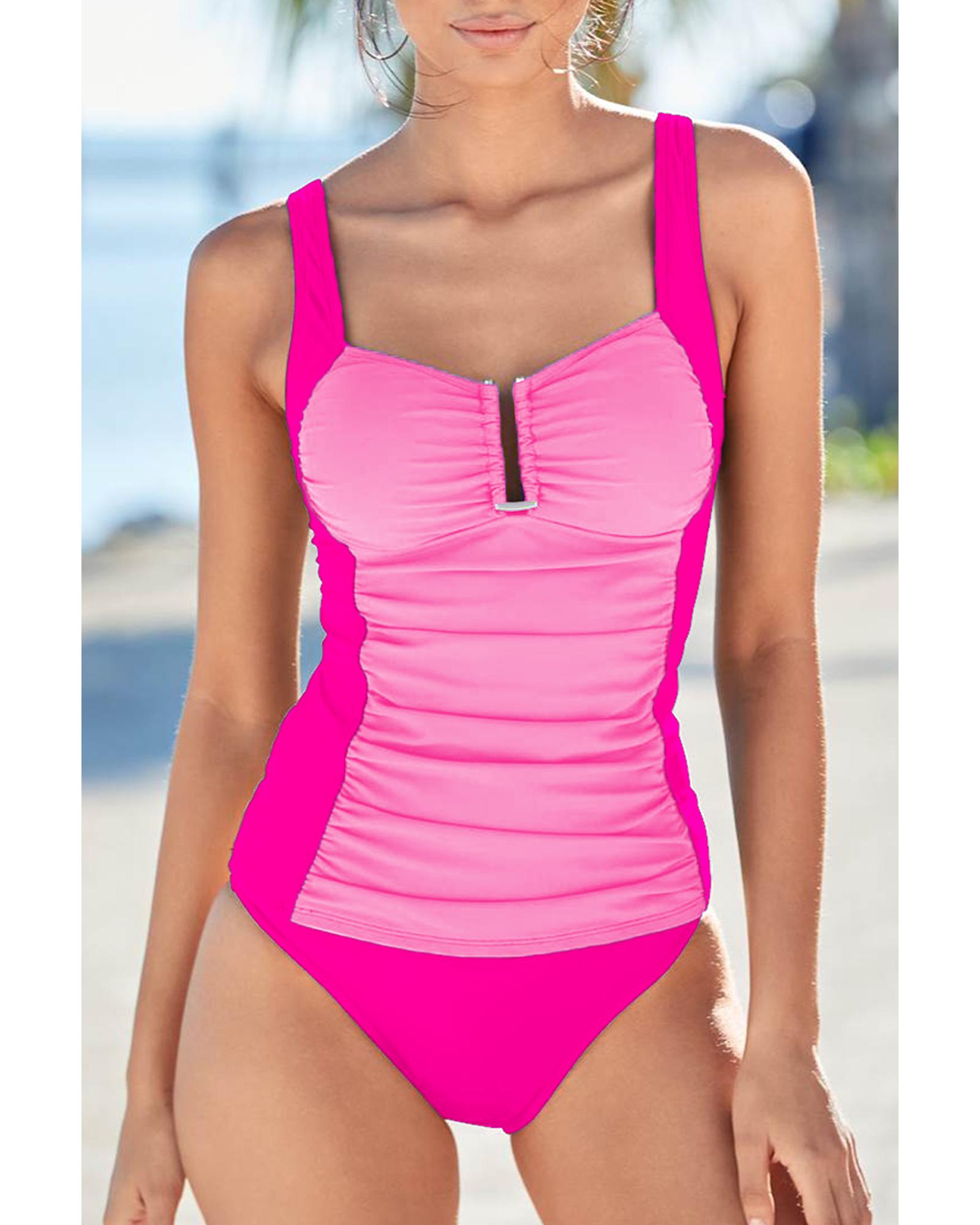 Bonbon Ruched Tummy Control Tankini 2pcs Swimsuit – 2XL