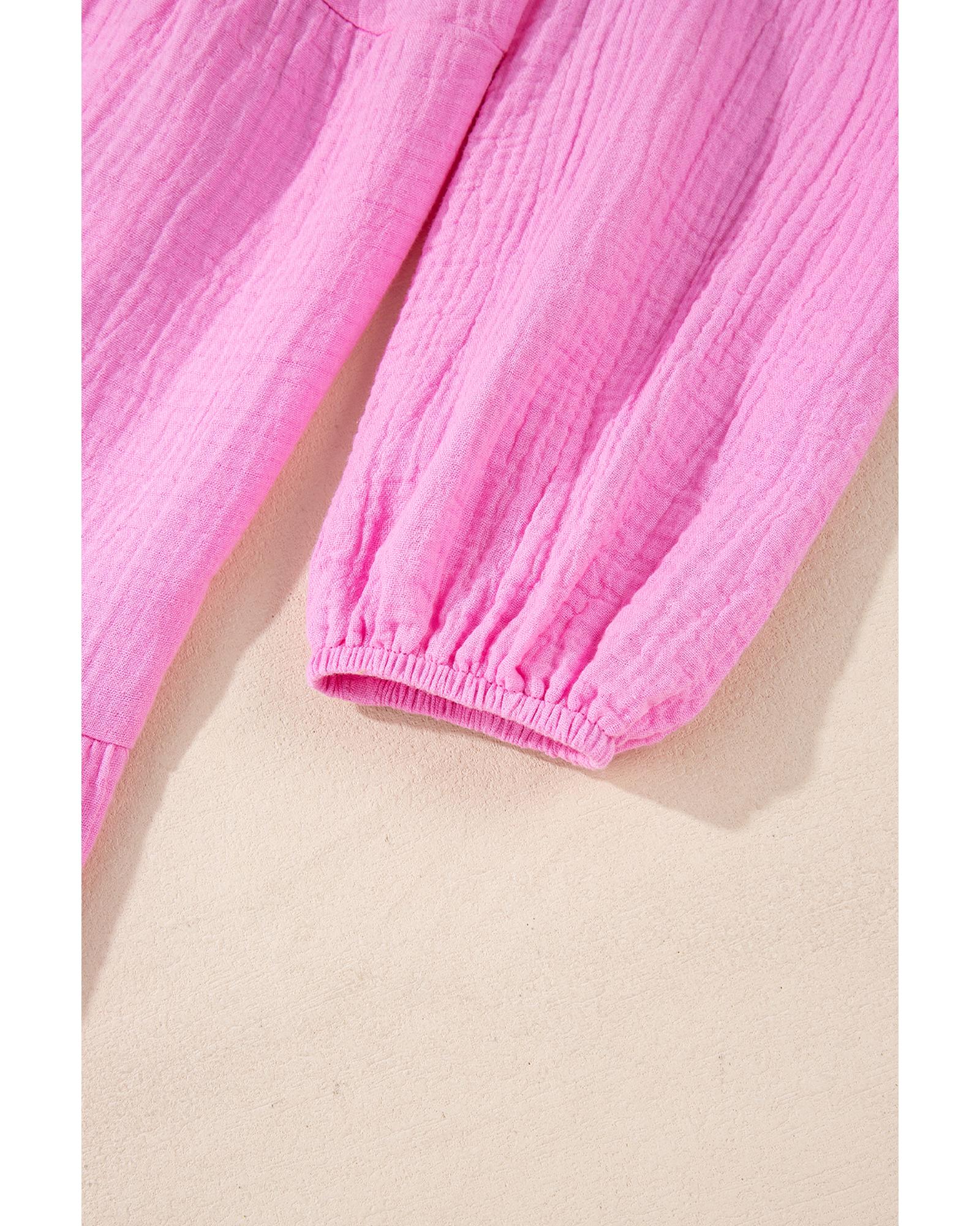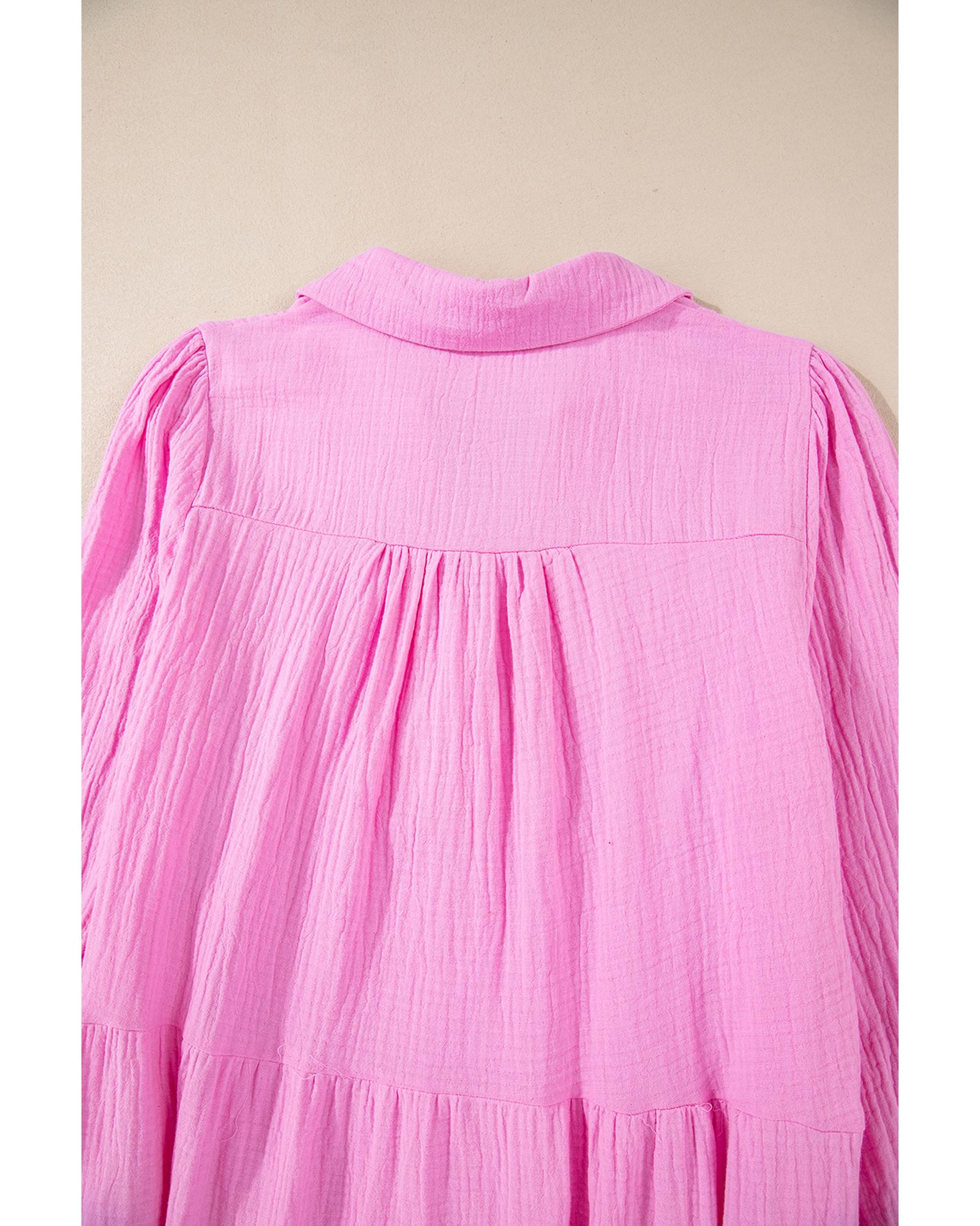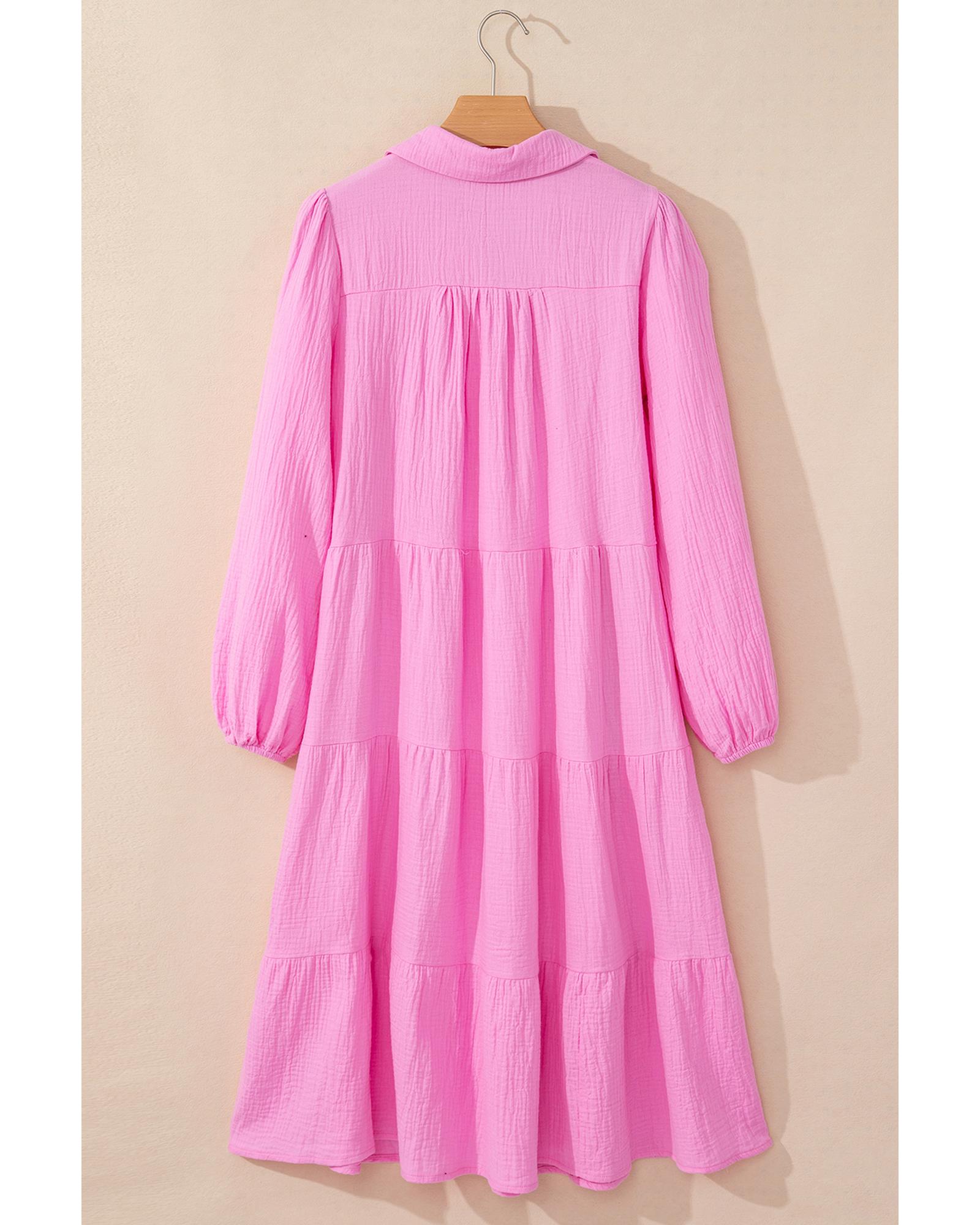 Bonbon Solid Collared V Neck Tiered Loose Fit Midi Dress – M