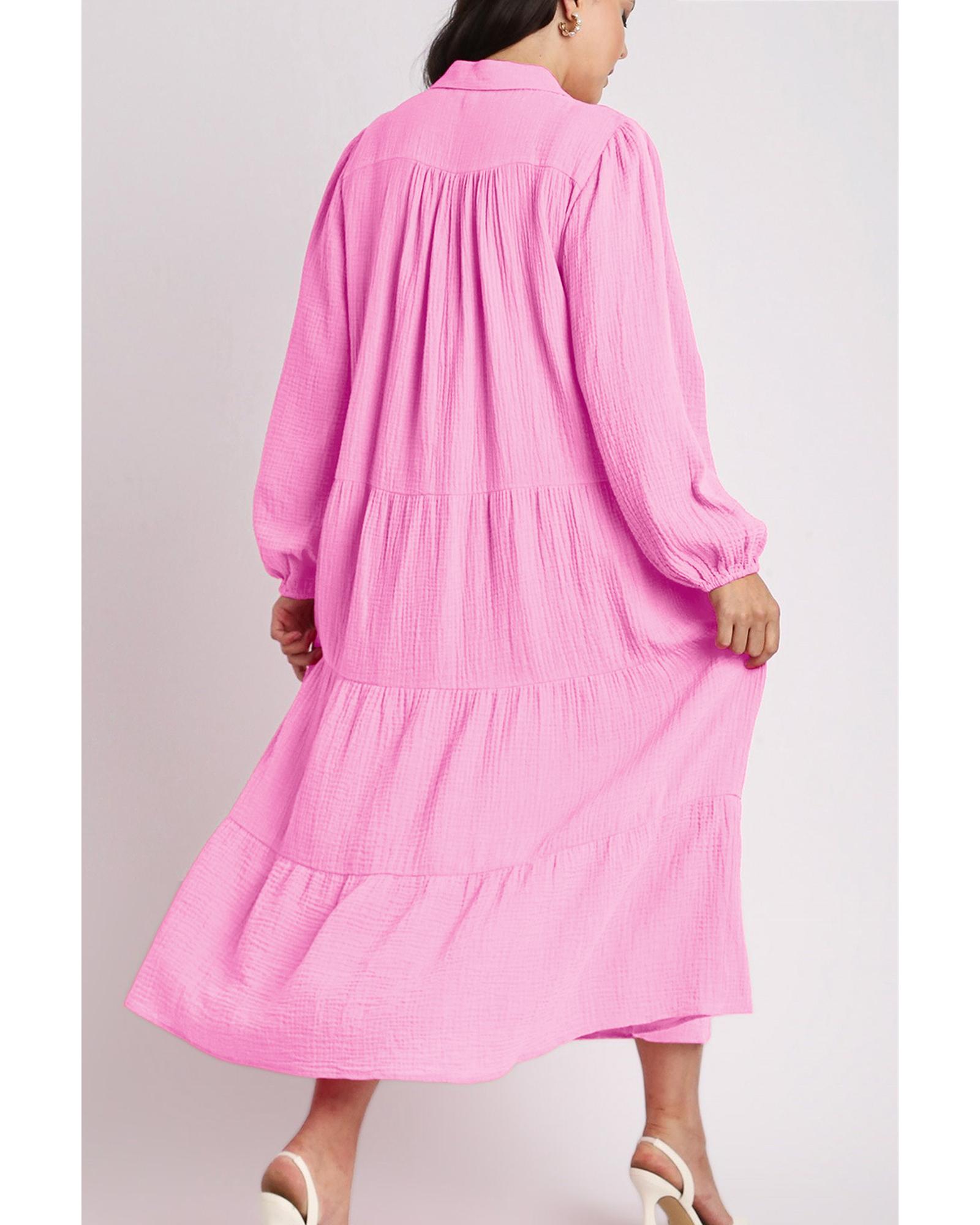 Bonbon Solid Collared V Neck Tiered Loose Fit Midi Dress – S