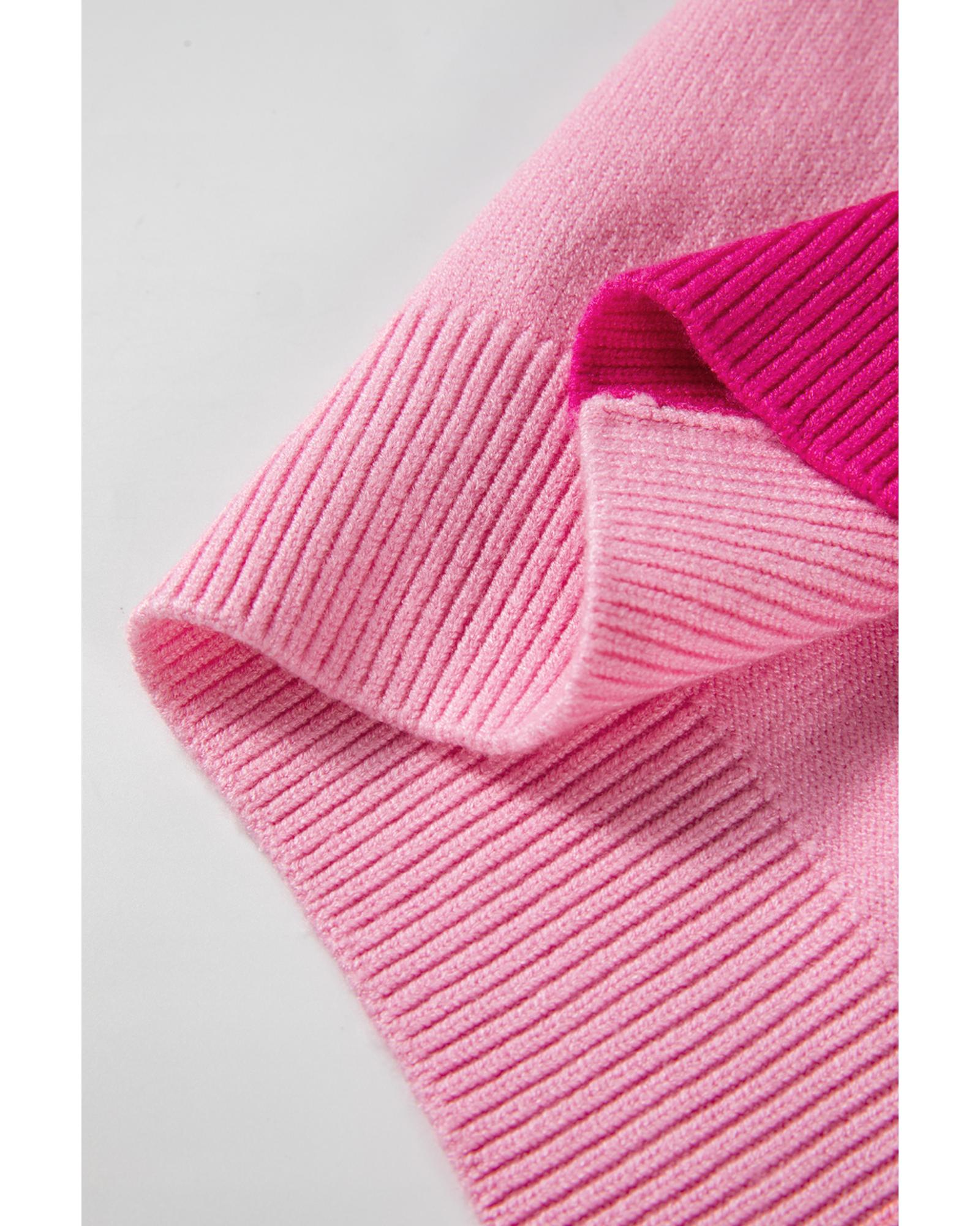 Bonbon Three Tone Contrast Round Neck Loose Sweater – M