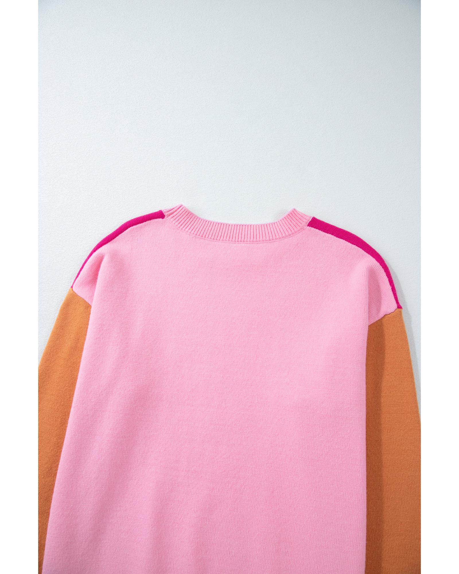 Bonbon Three Tone Contrast Round Neck Loose Sweater – S