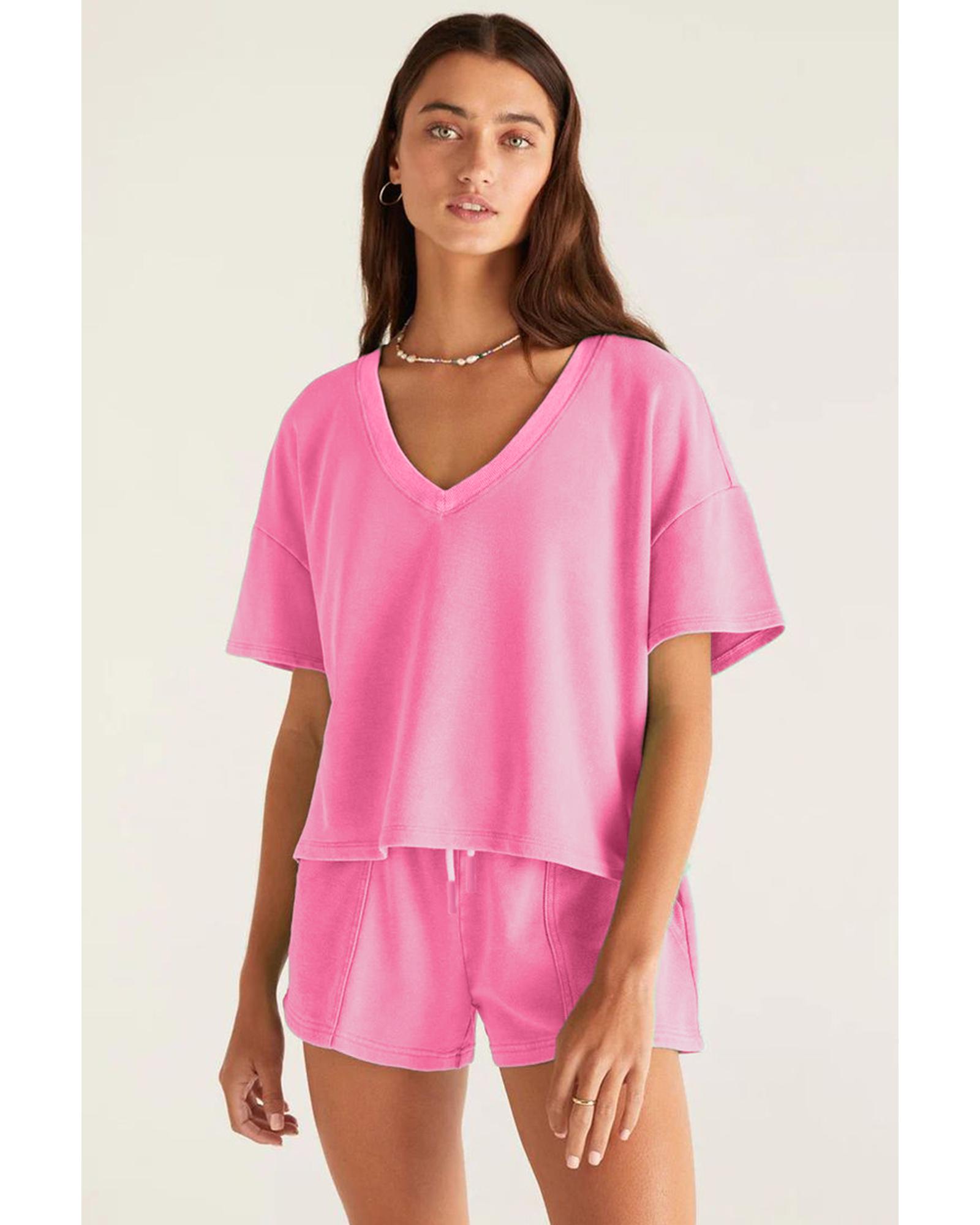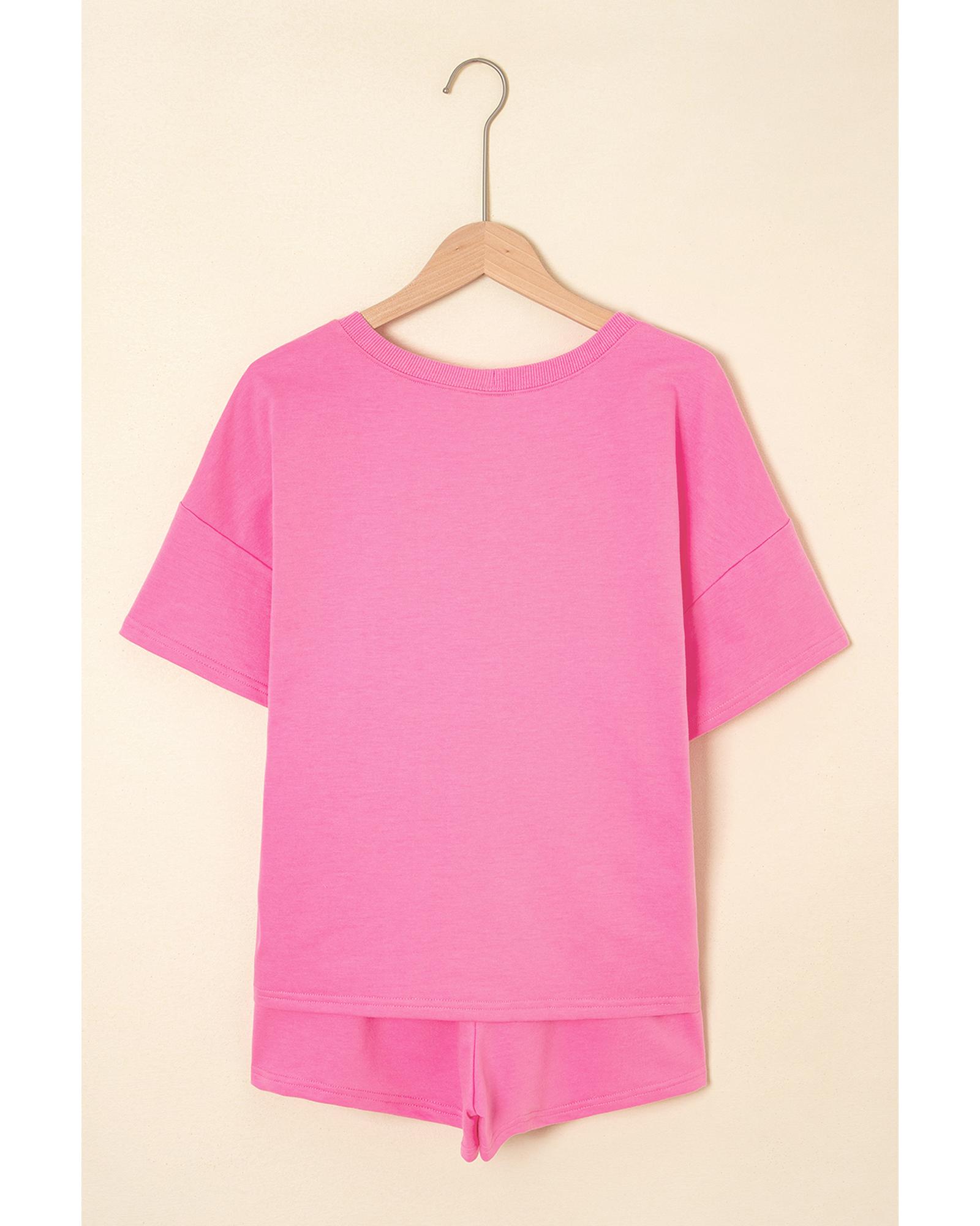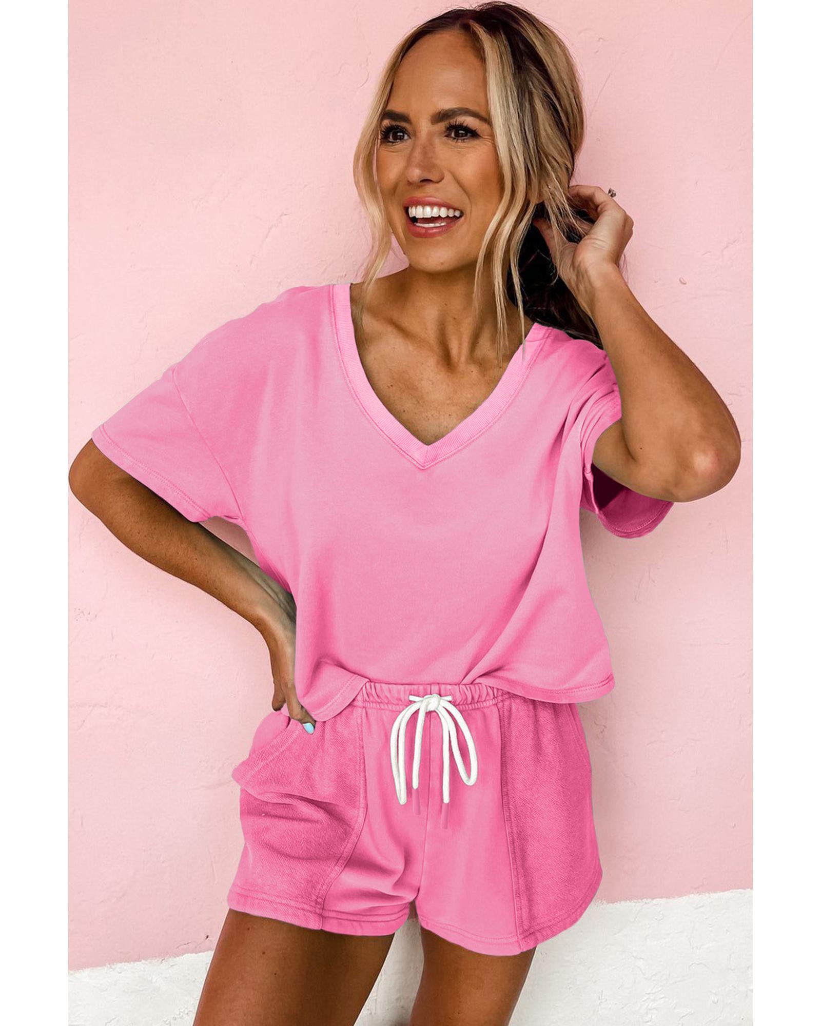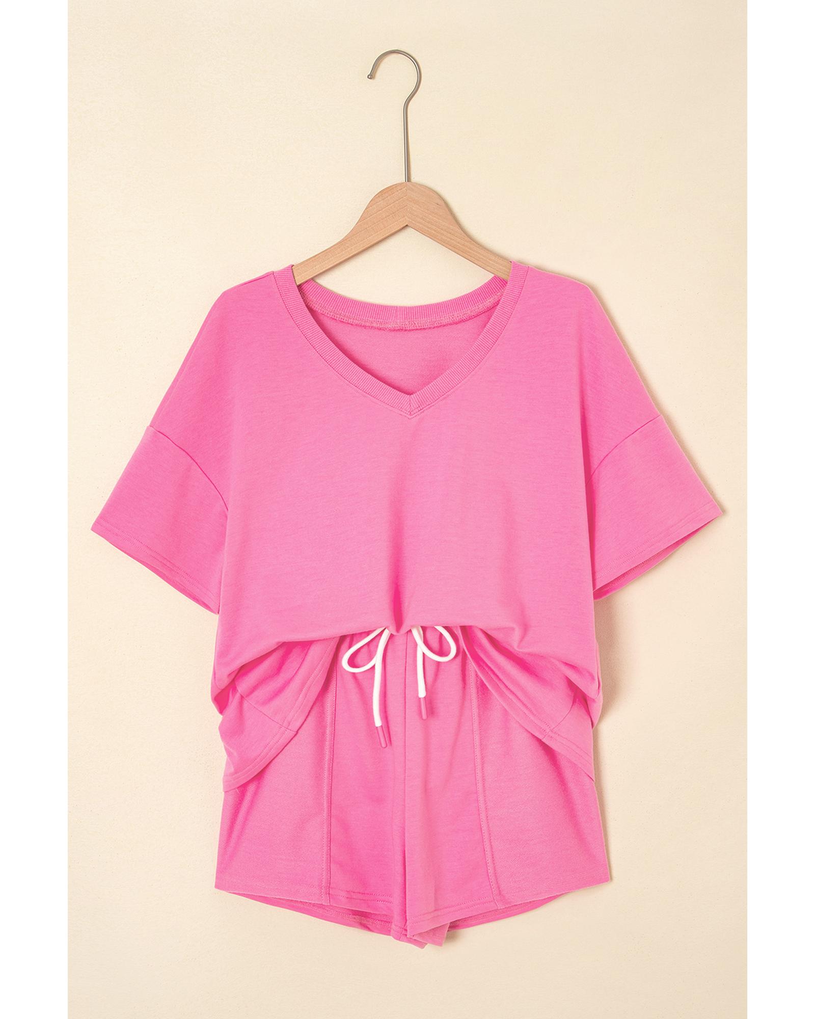 Bonbon V Neck Drop Shoulder Tee and Patchwork Drawstring Shorts Set – XL