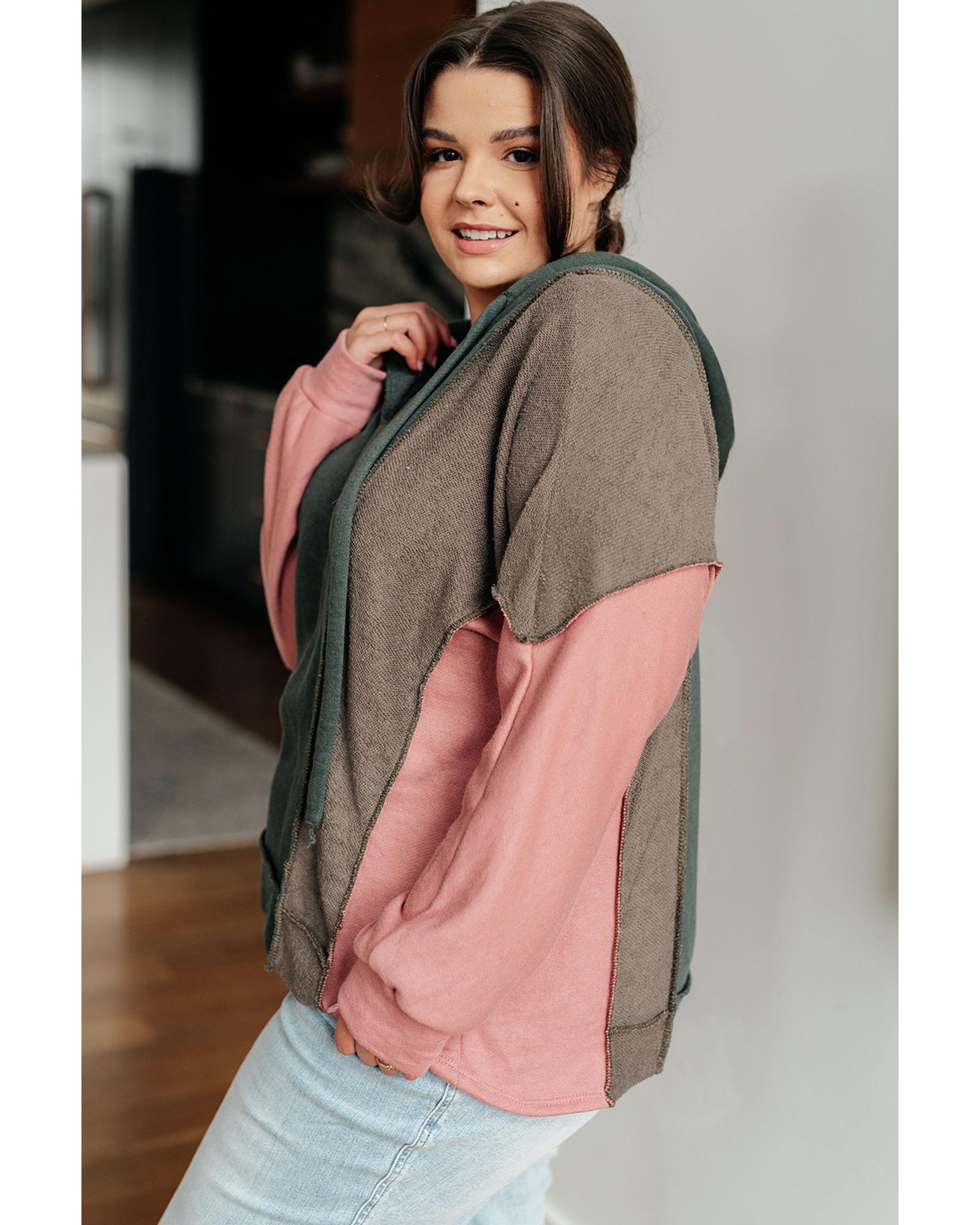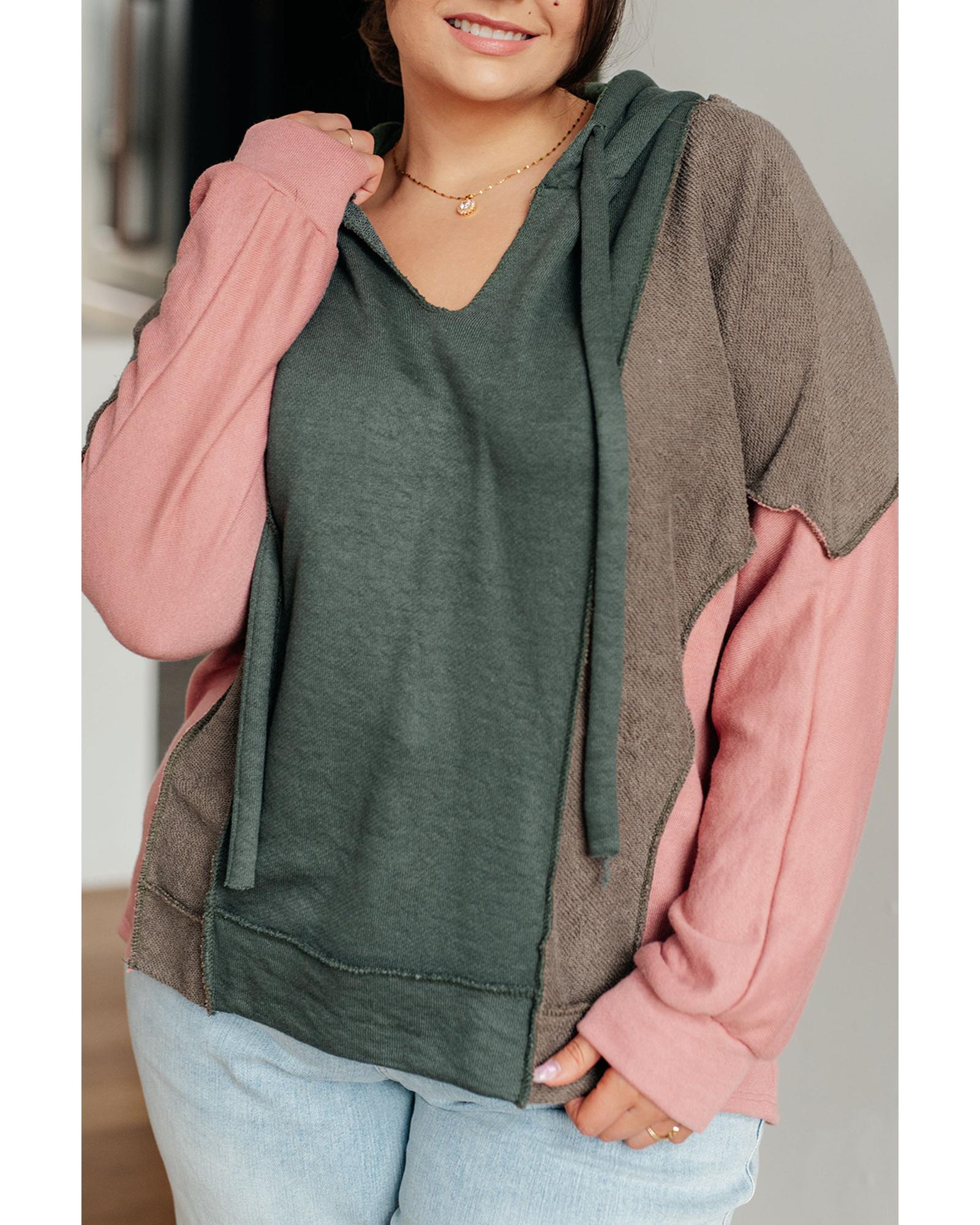 Breen Plus Size Colorblock Patchwork V Neck Hoodie - 1X