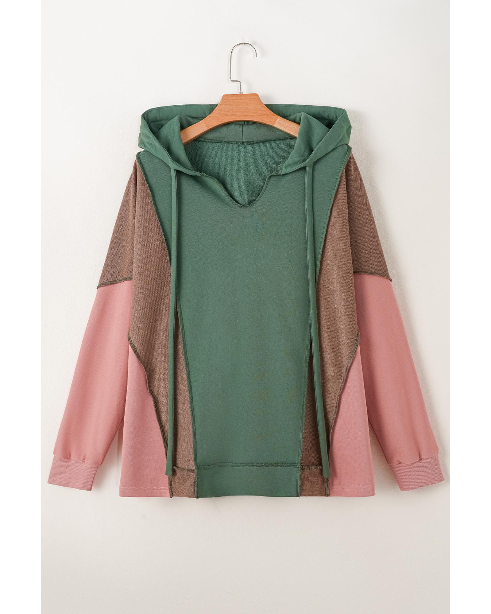 Breen Plus Size Colorblock Patchwork V Neck Hoodie – 2X