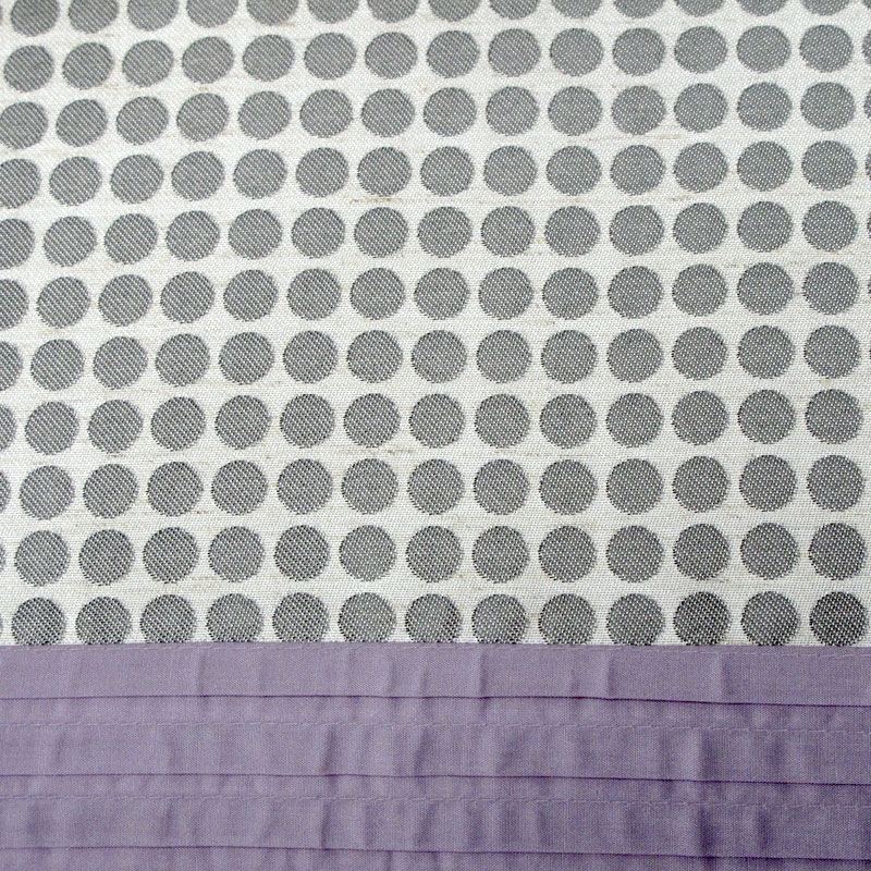 This lovely Brie Lilac Grey Quilt Cover Set features a circular Jacquard pattern with pictucking detailing in Grey, Silver, and Lavender. It is made from quality polyester cotton and linen blend with spotted design in lilac and grey colour palette on a creamy grey background. The reverse is a plain dyed cream in polyester cotton blend. Please see the picture taken in close up from the actual doona cover. Includes co-ordinating Pillowcases.