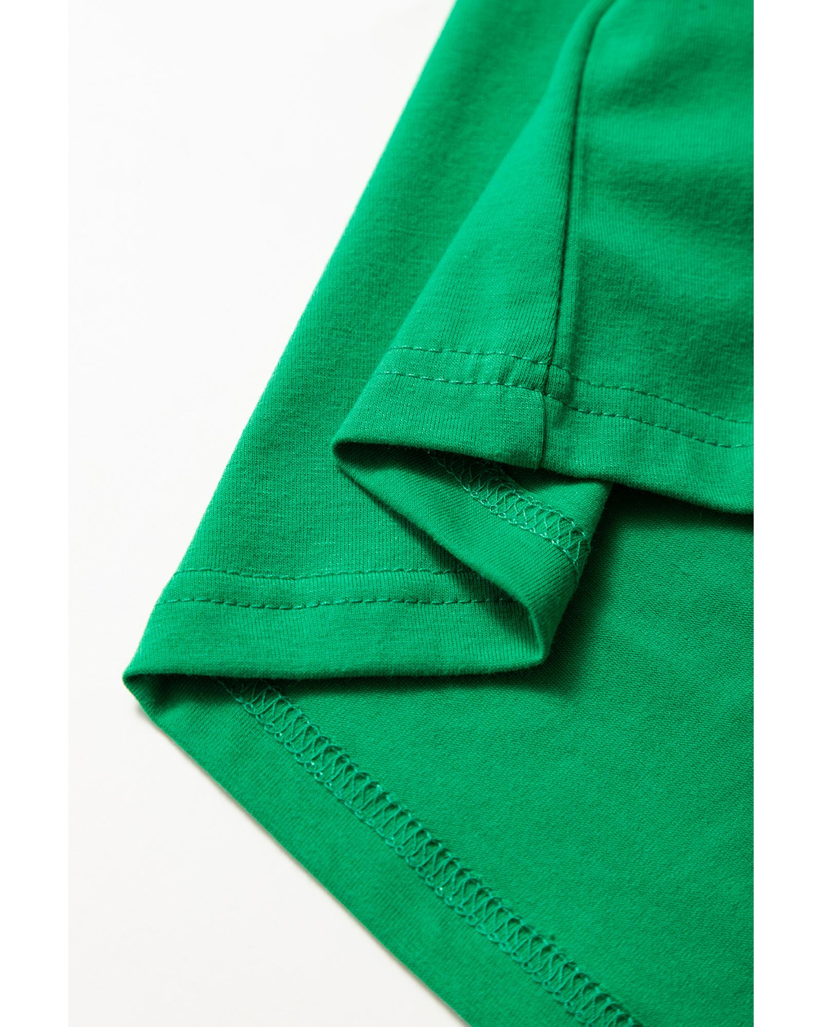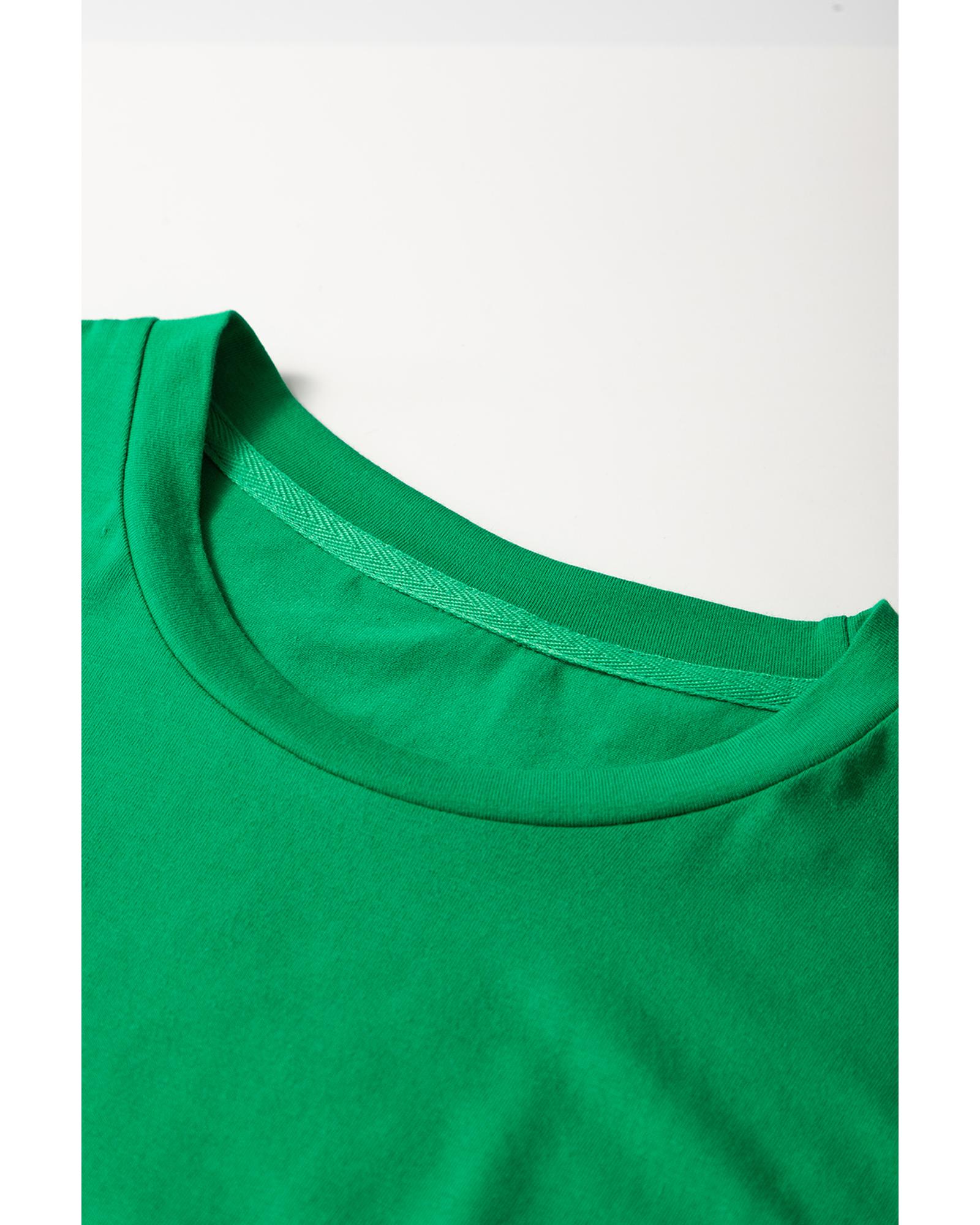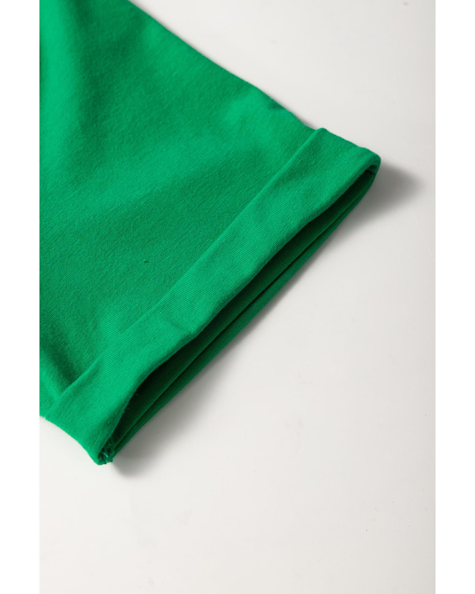 Four Leaf Clover Floral Bubble Sleeve Patchwork Leatherette Frilled Round Neck Blouse - L