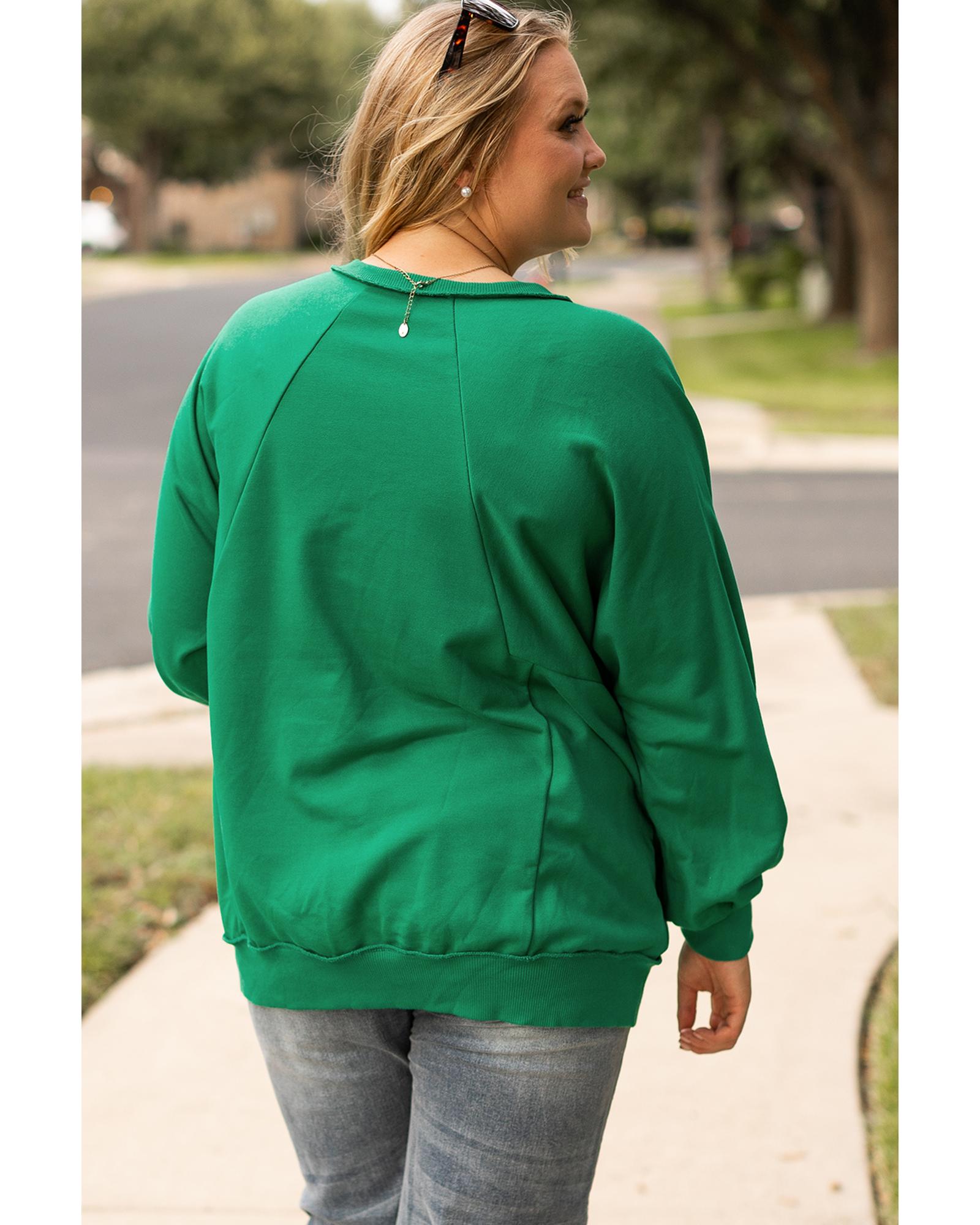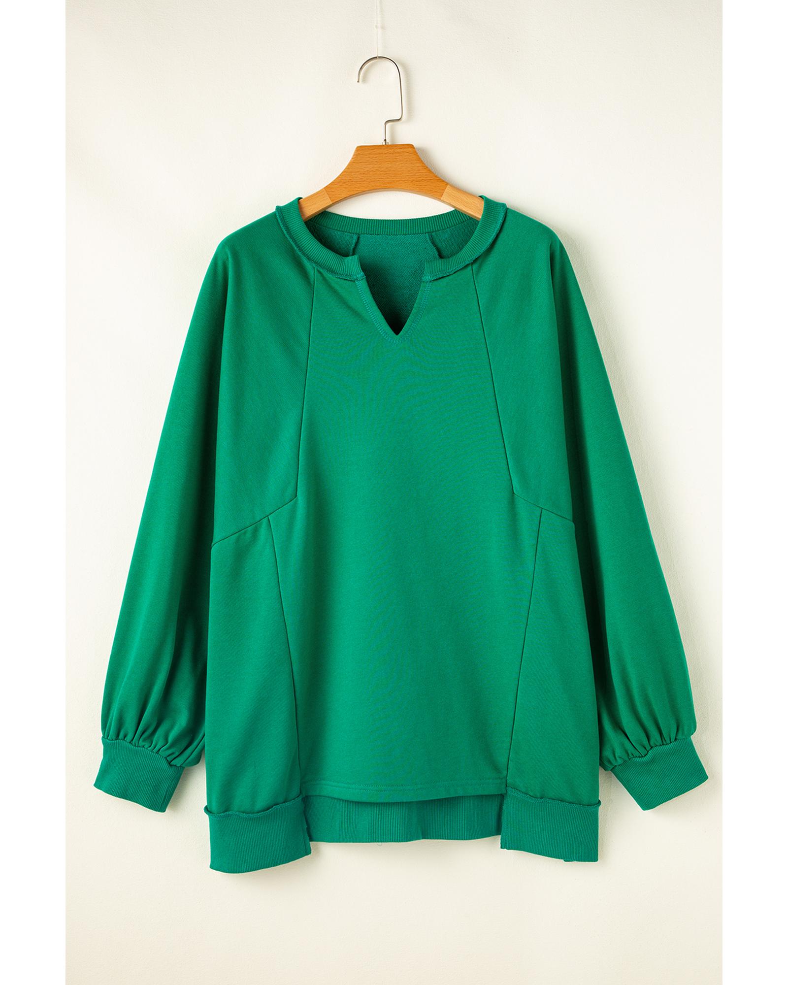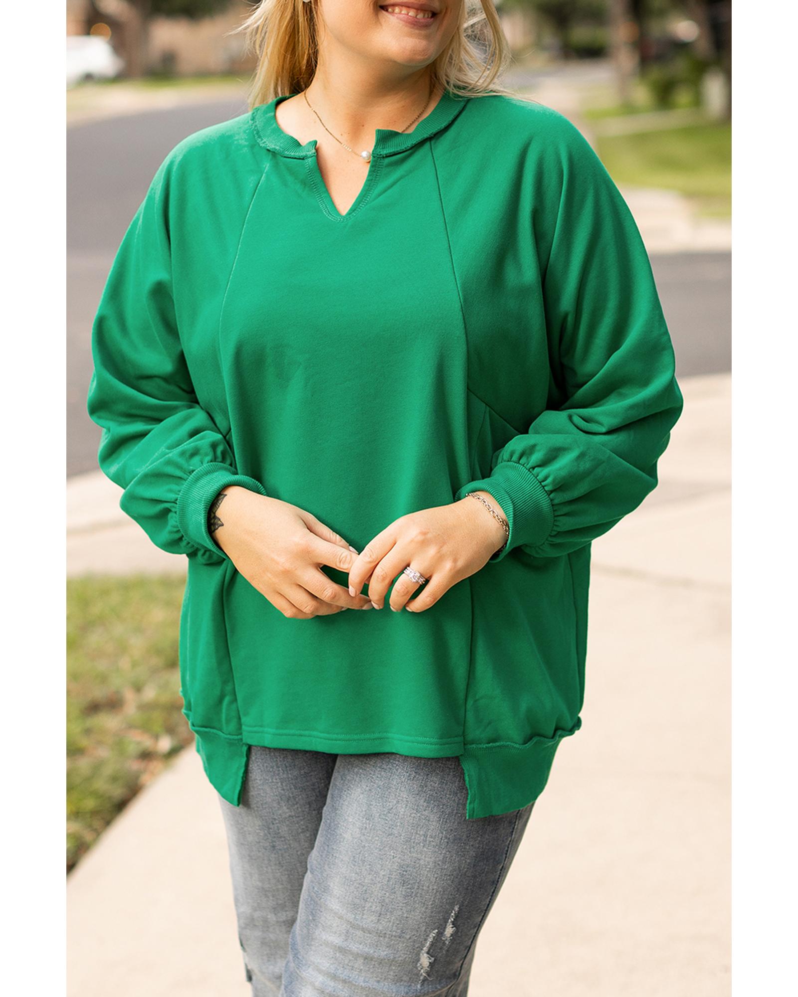 Bright Green Exposed Seam Notched Neck Drop Shoulder Plus Sweatshirt – 1X