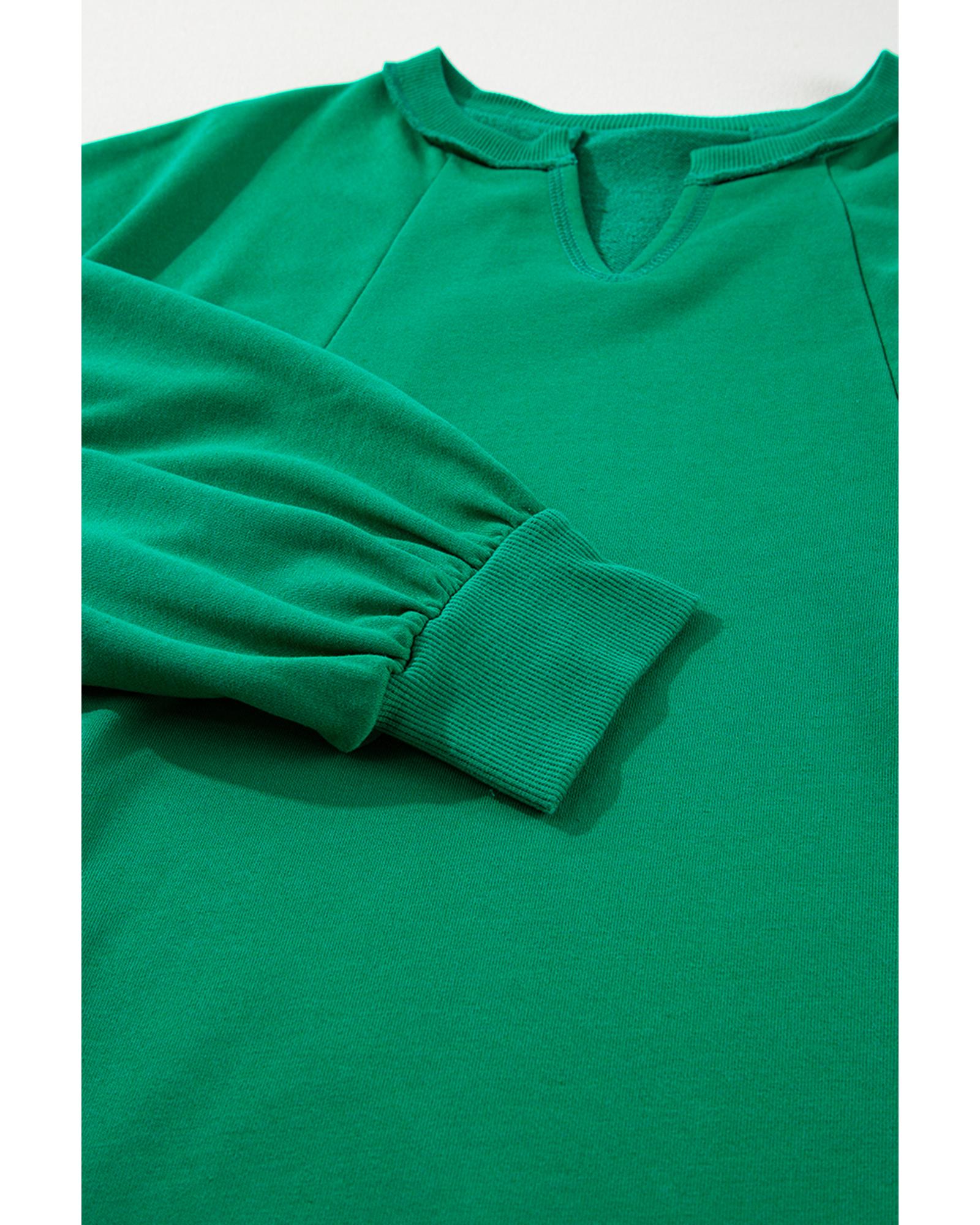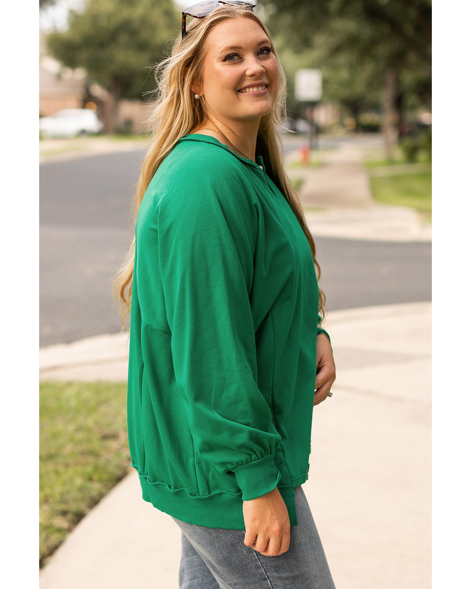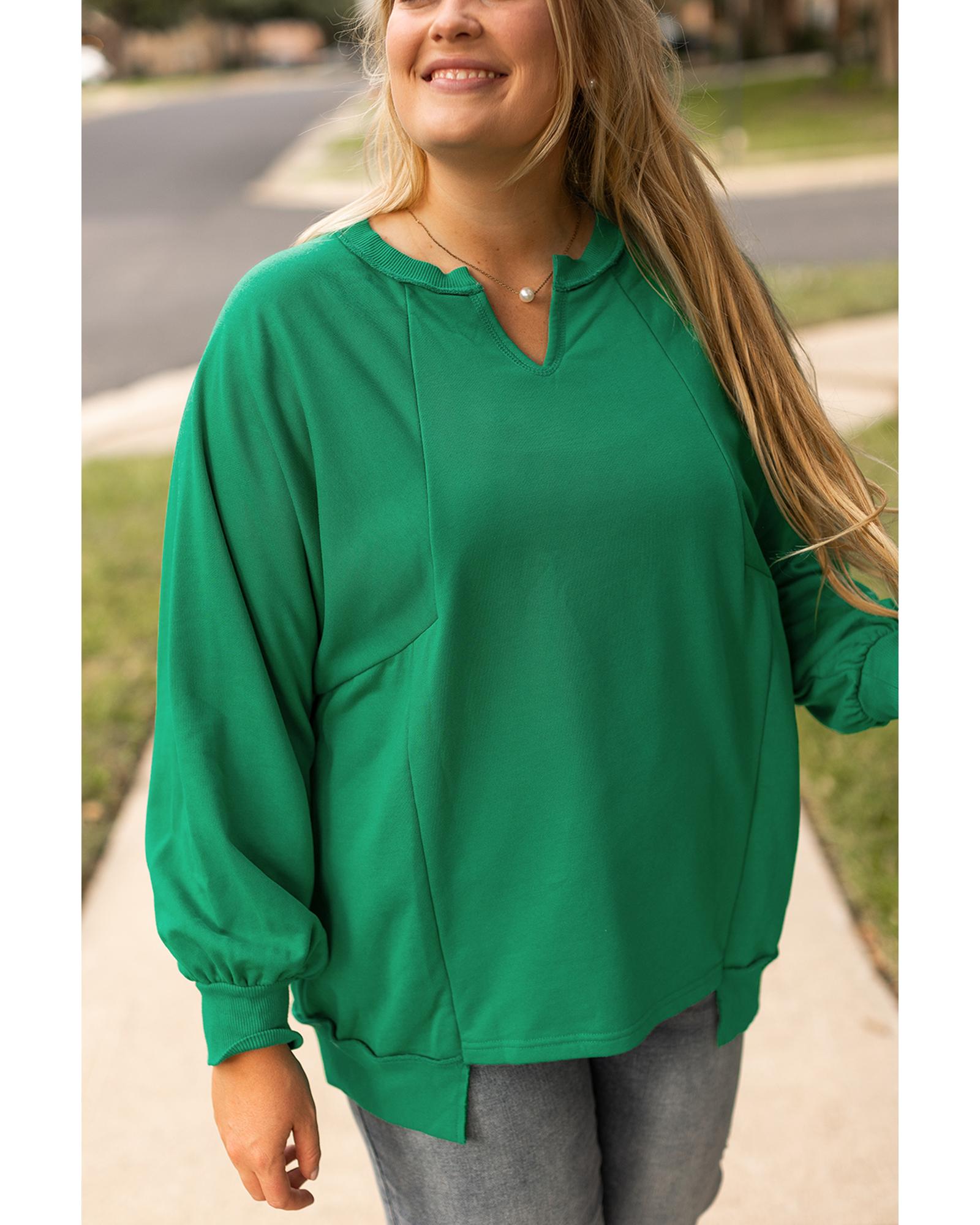 Bright Green Exposed Seam Notched Neck Drop Shoulder Plus Sweatshirt – 2X