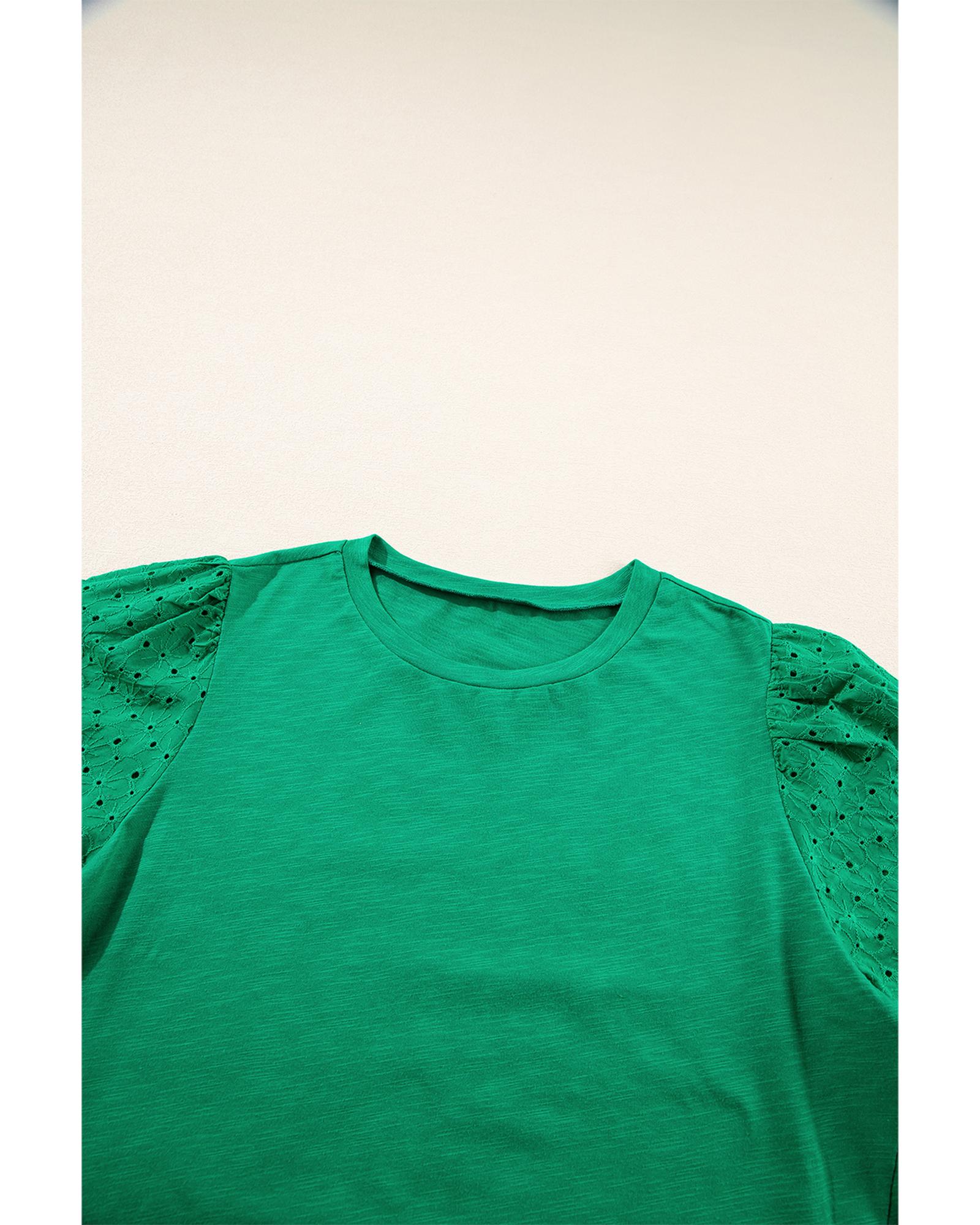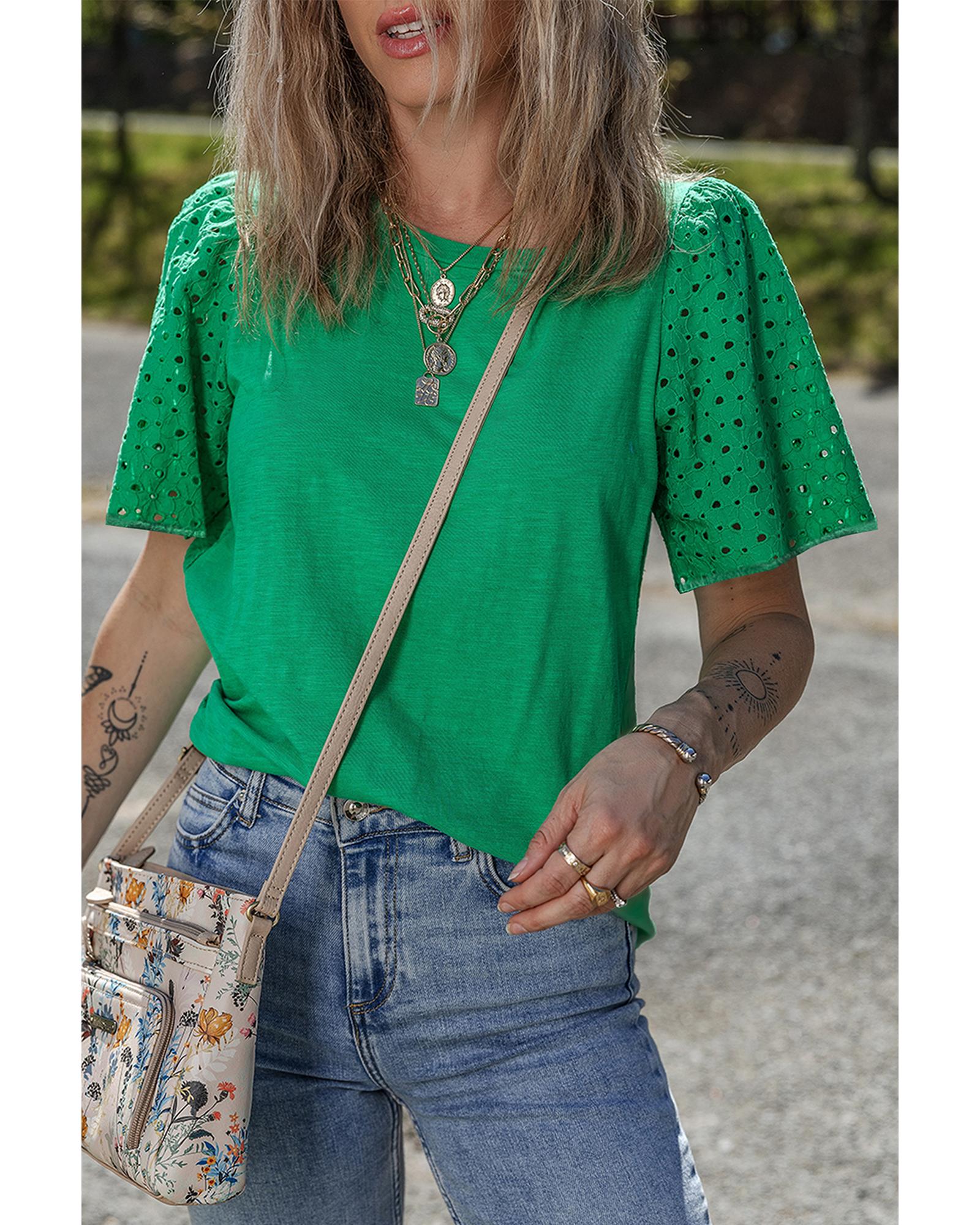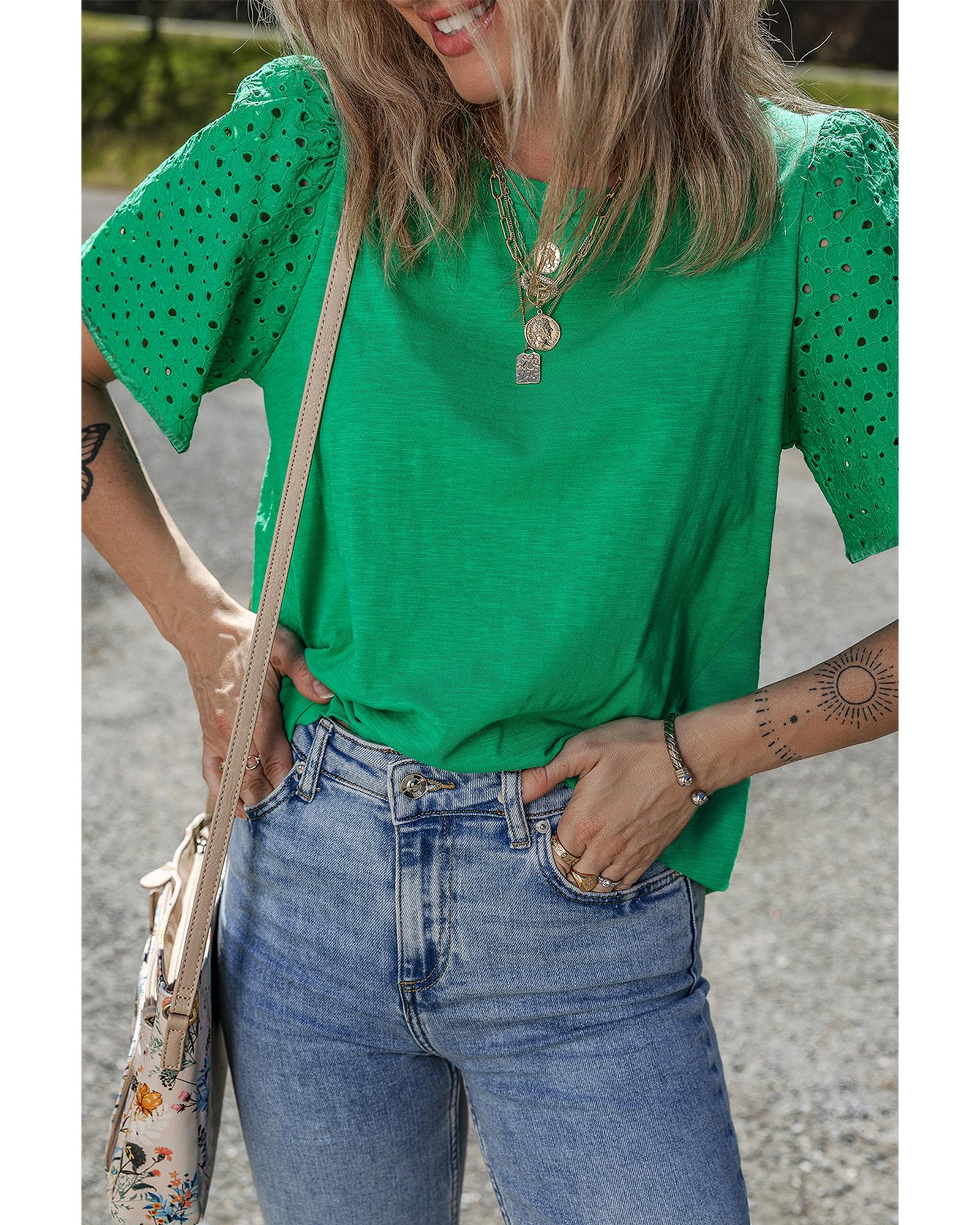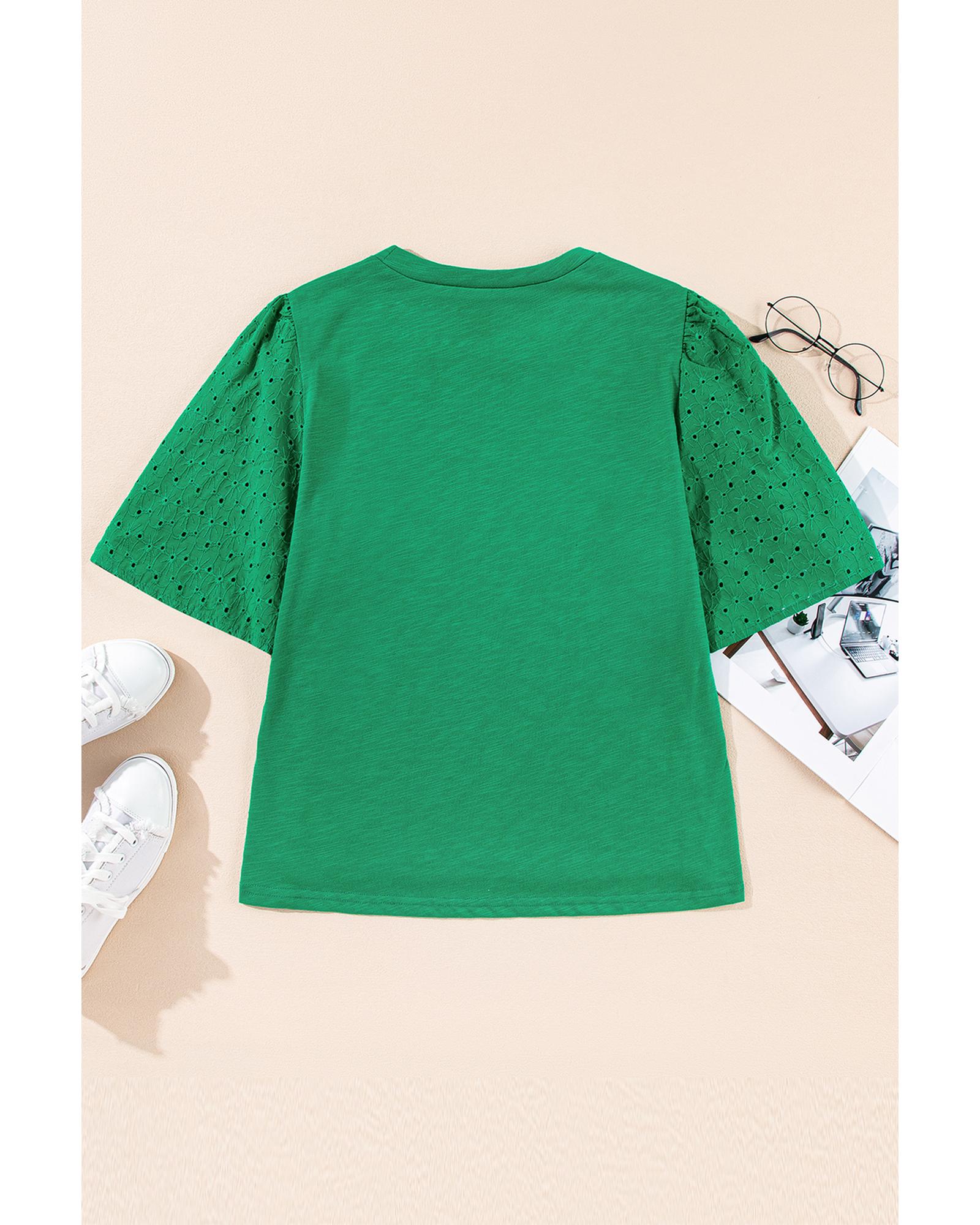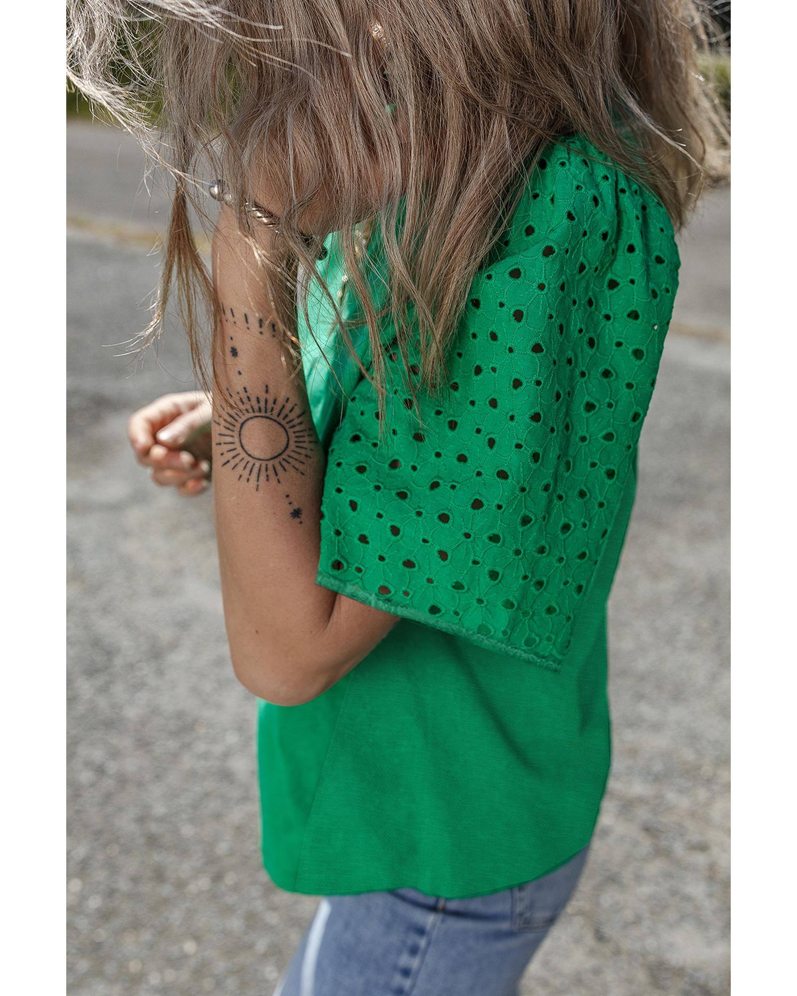 Bright Green Eyelet Embroidered Patchwork Shift Top – M