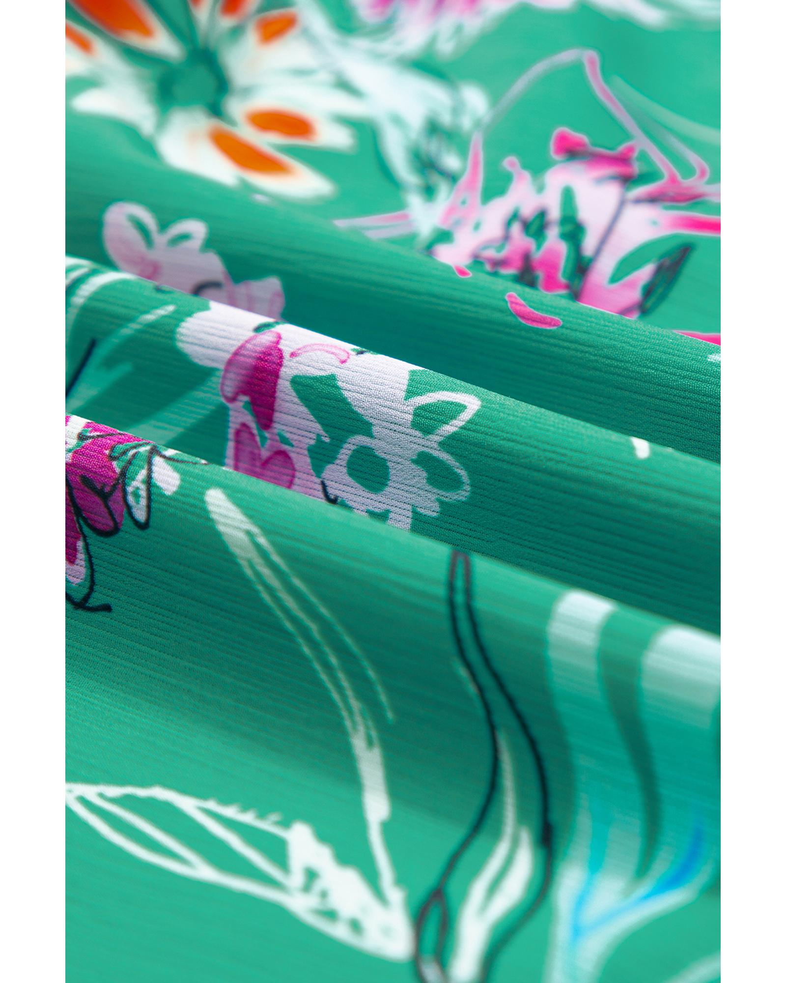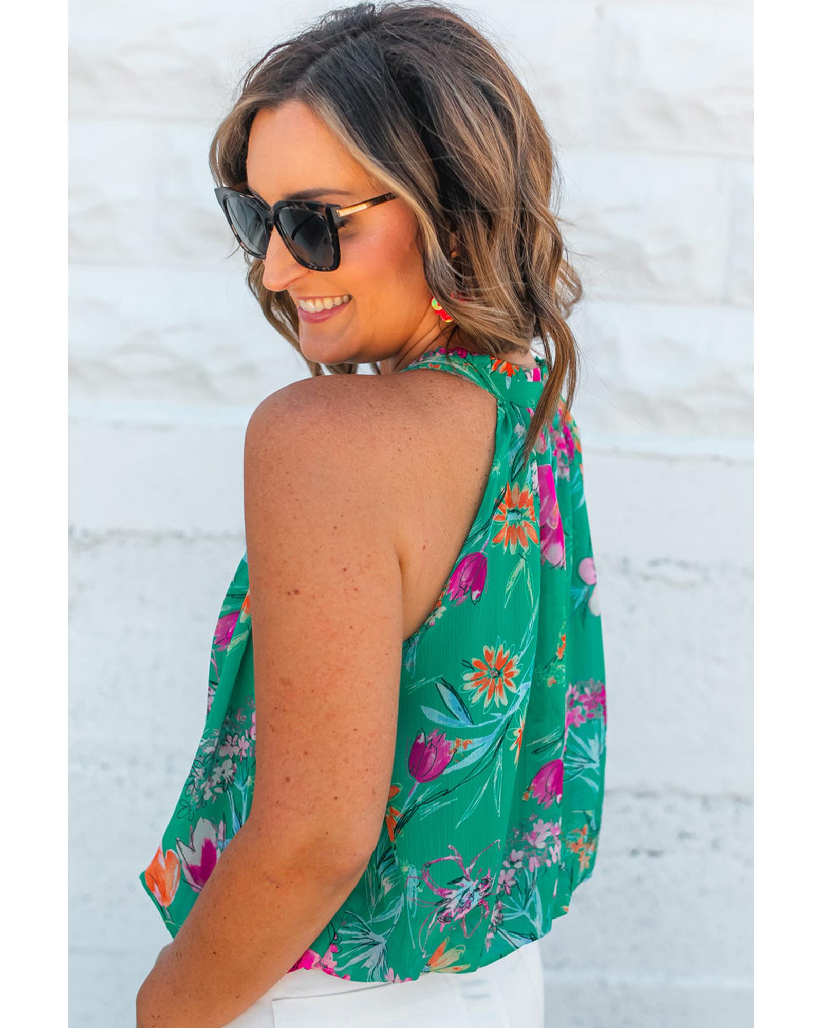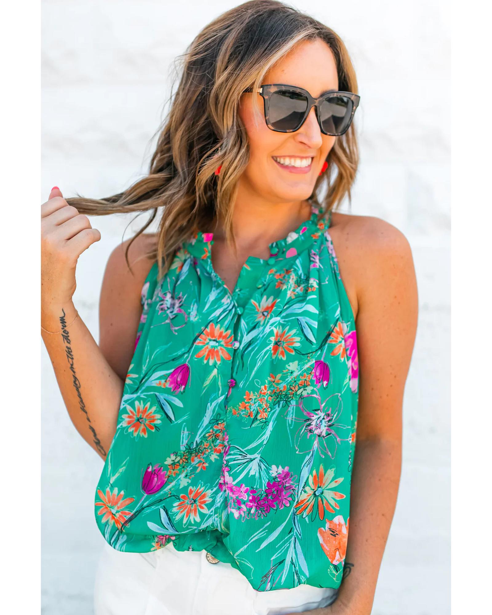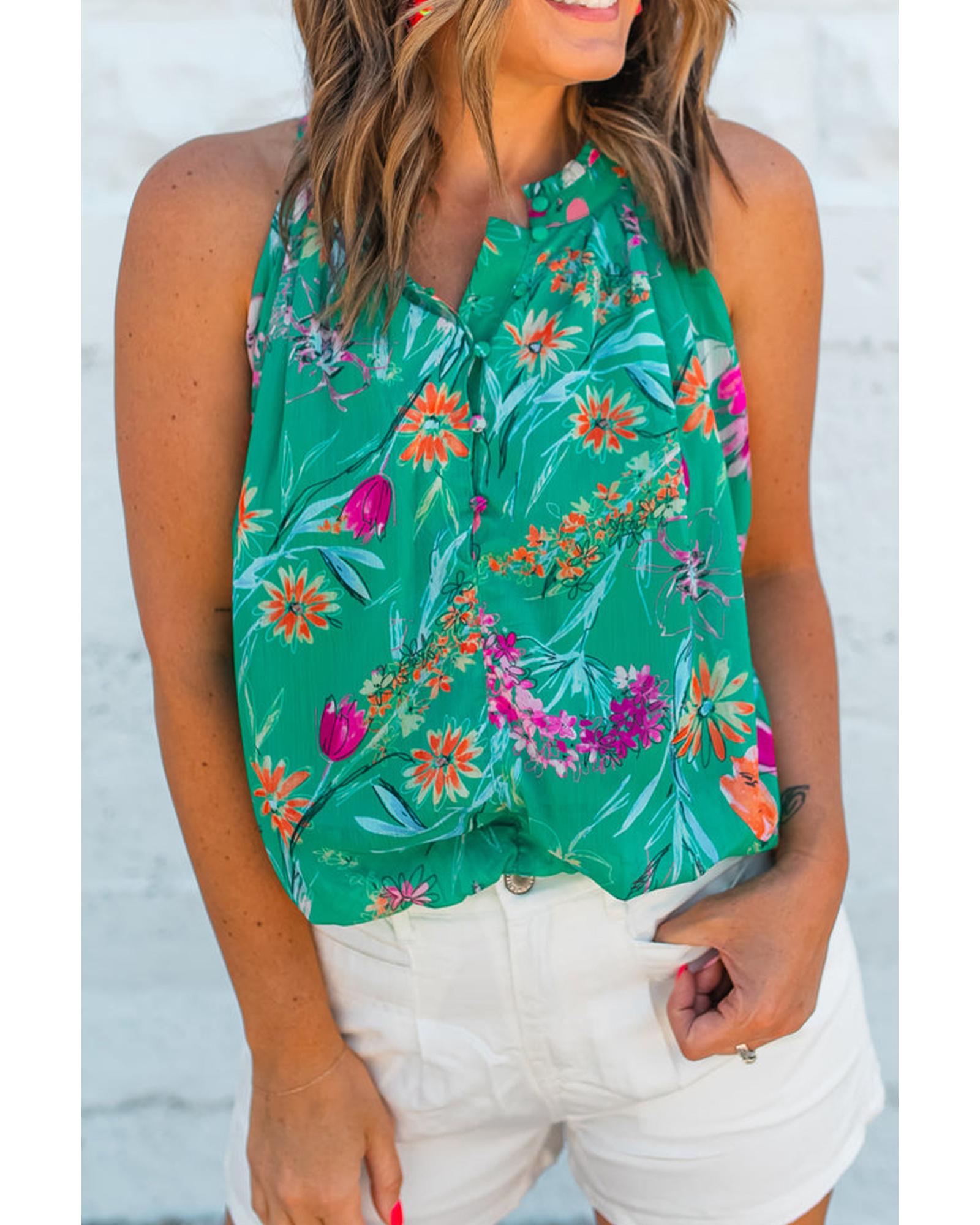 Bright Green Floral Print Buttoned Neckline Tank Top – XL