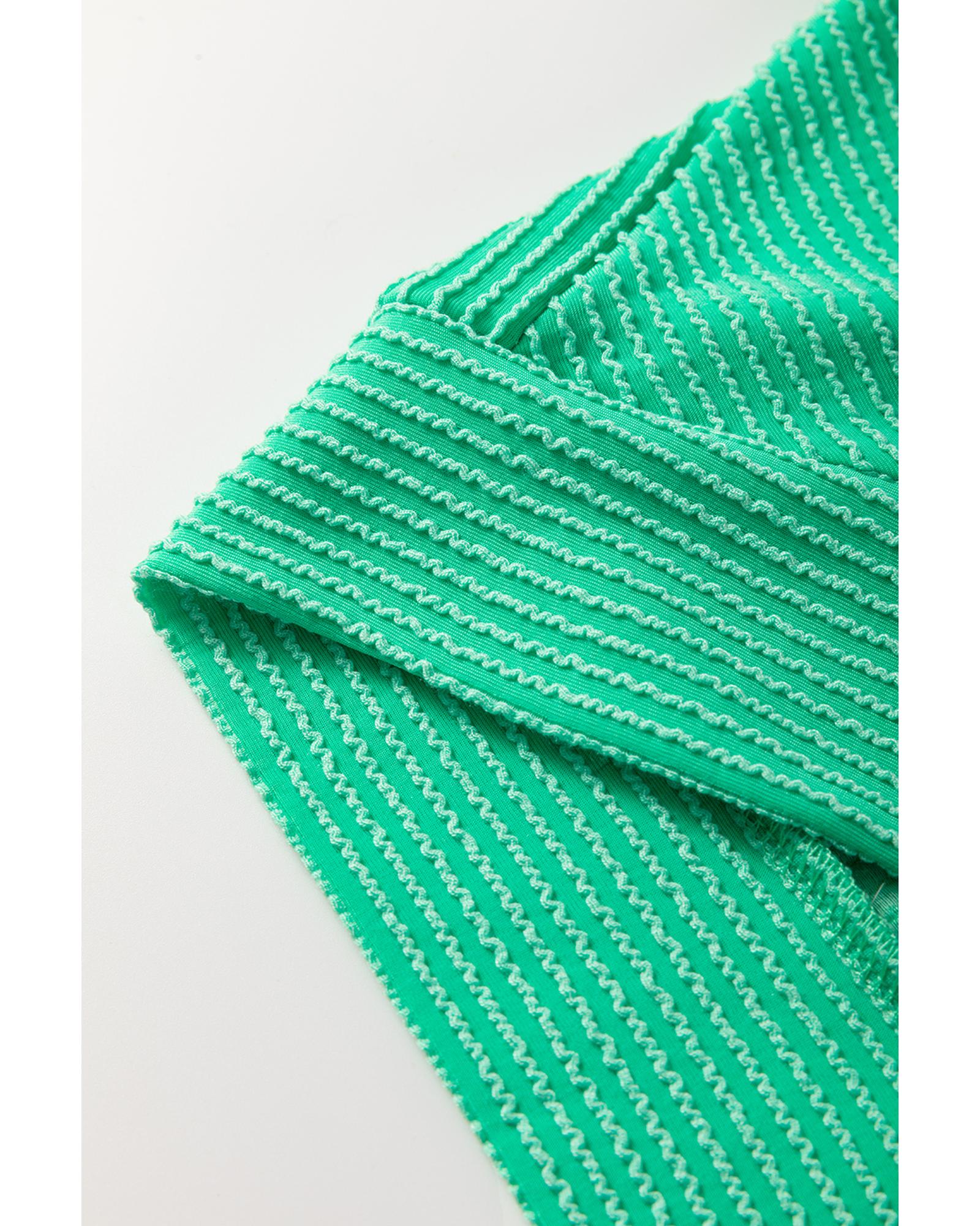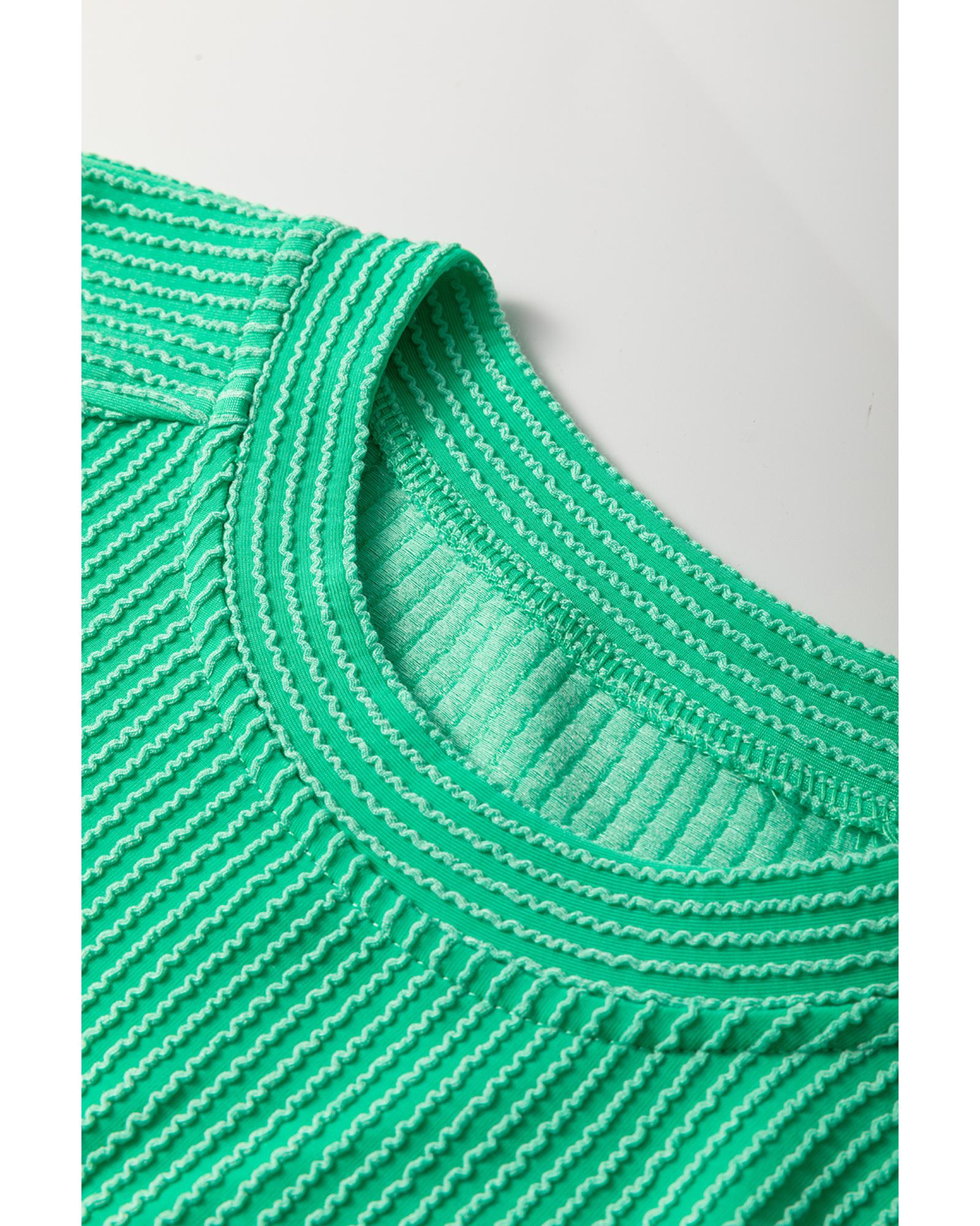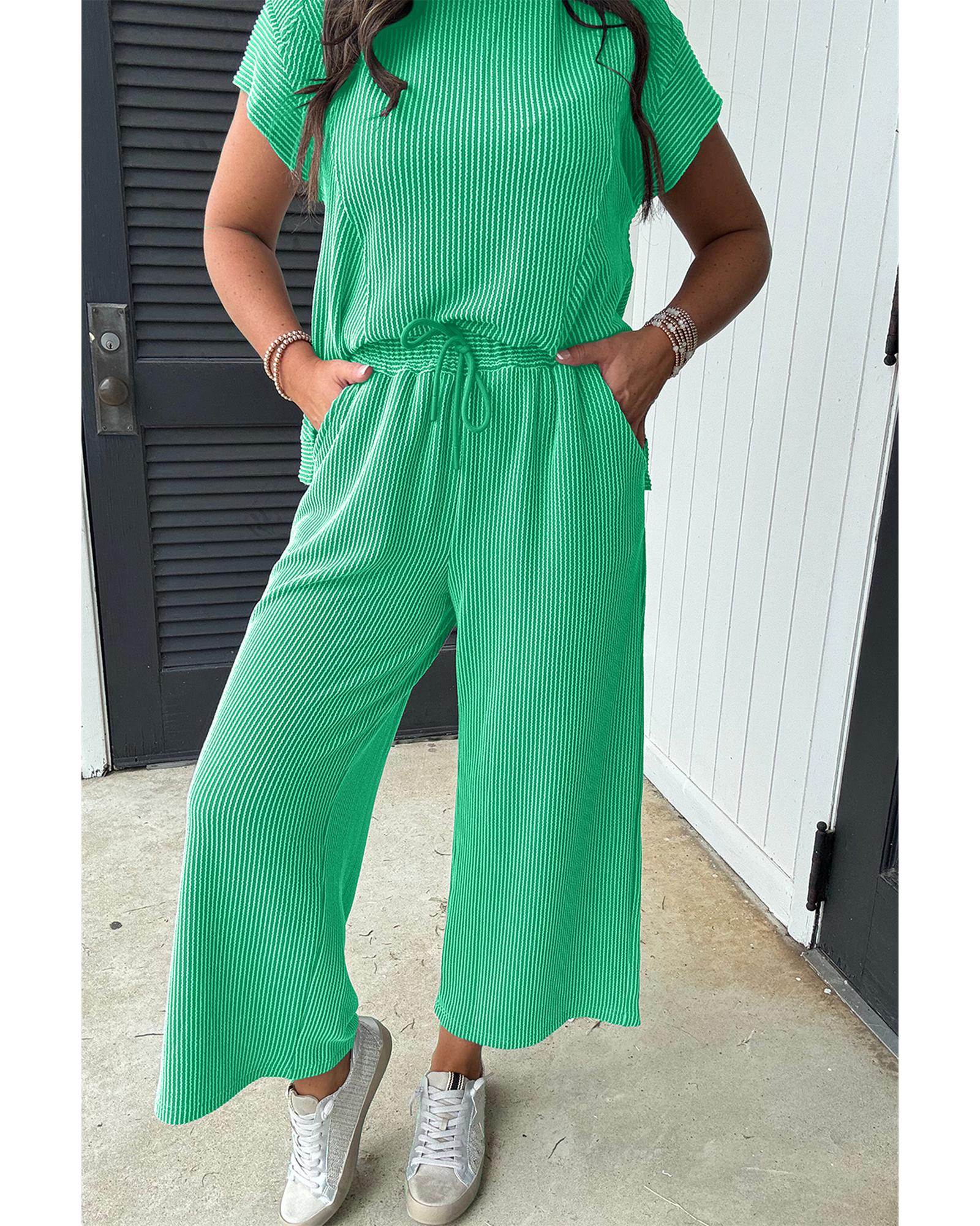 Bright Green Solid Corded Knit Short Sleeve T Shirt and Wide Leg Pants Set - XL
