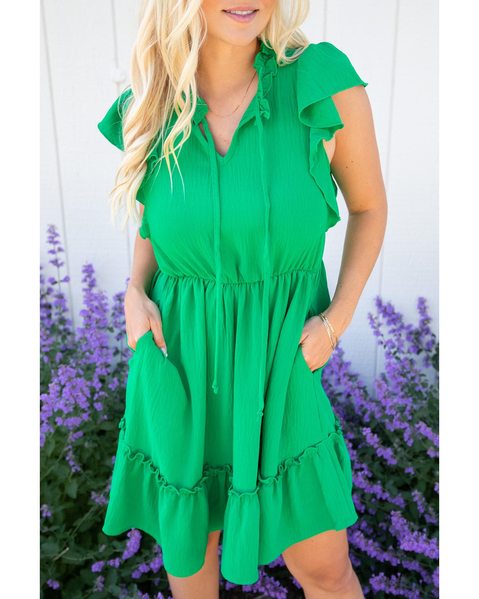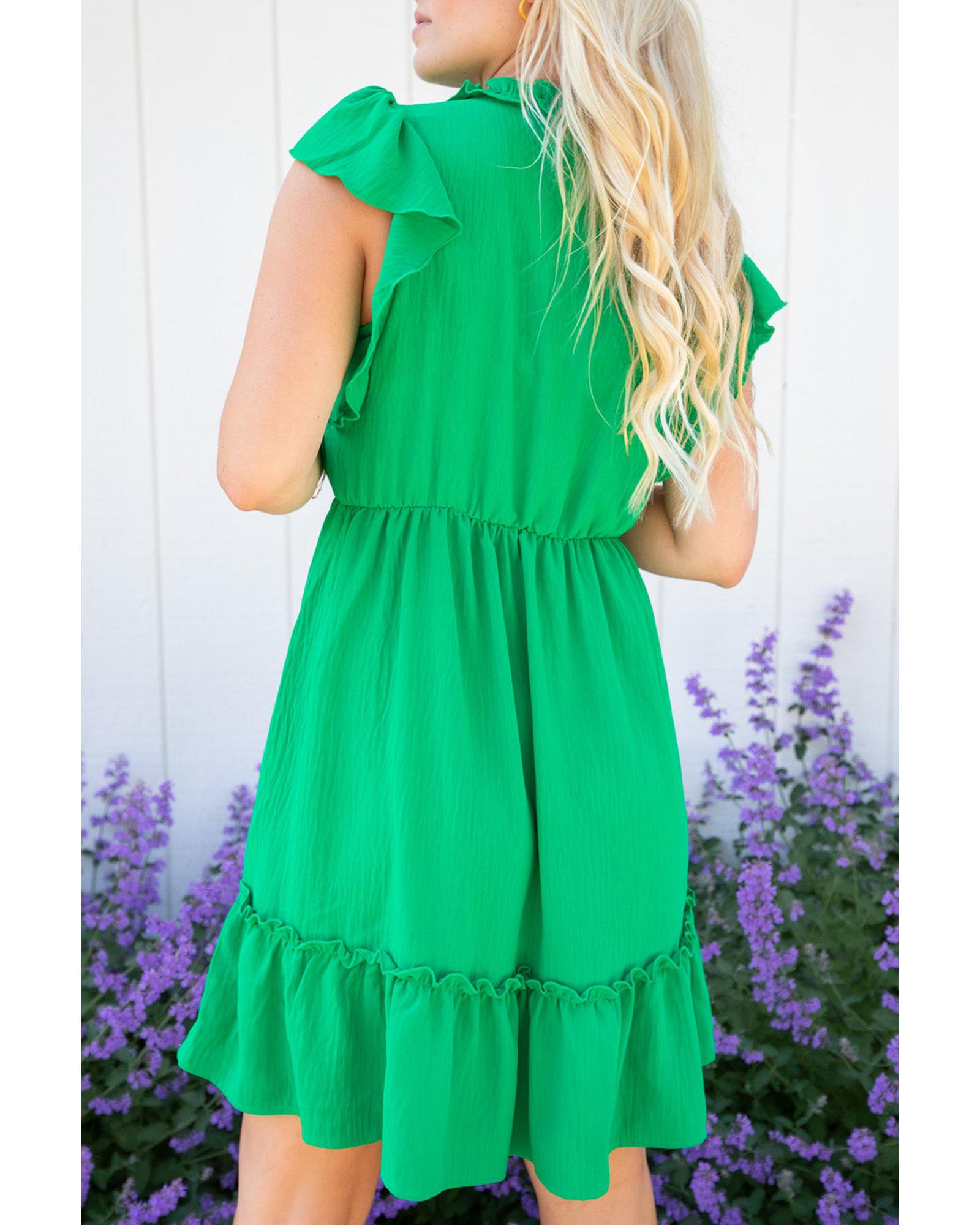 Bright Green Split V Neck Elastic Waist Ruffled Dress – XL