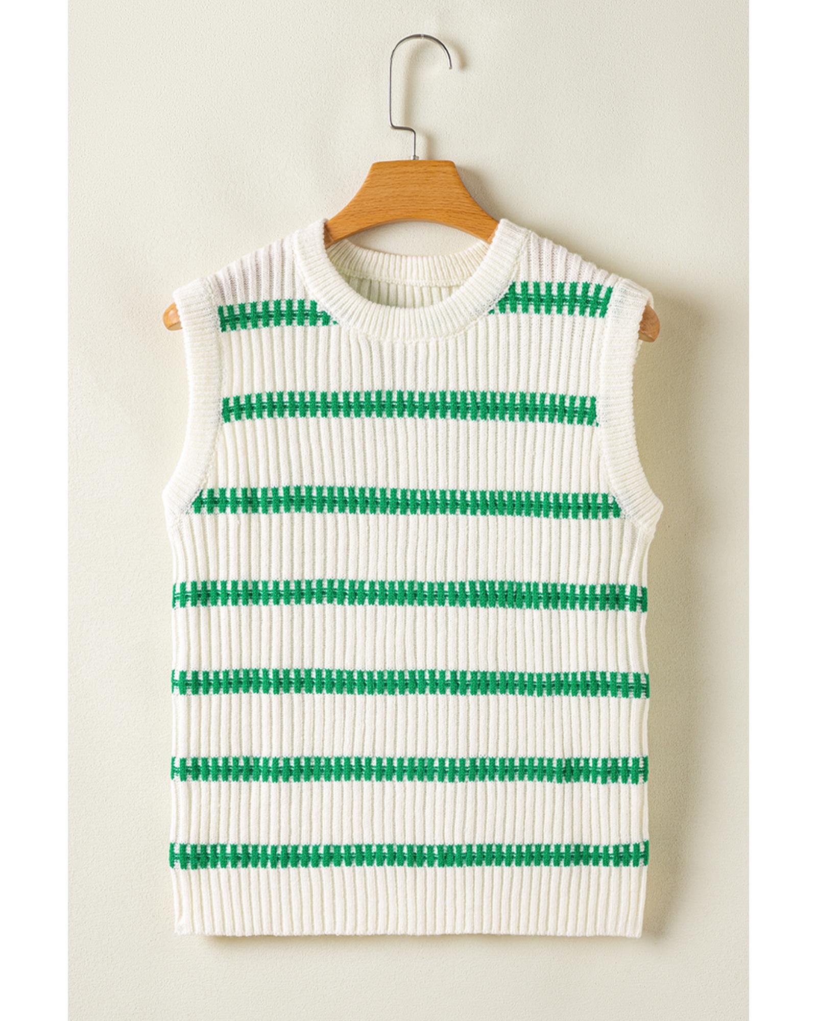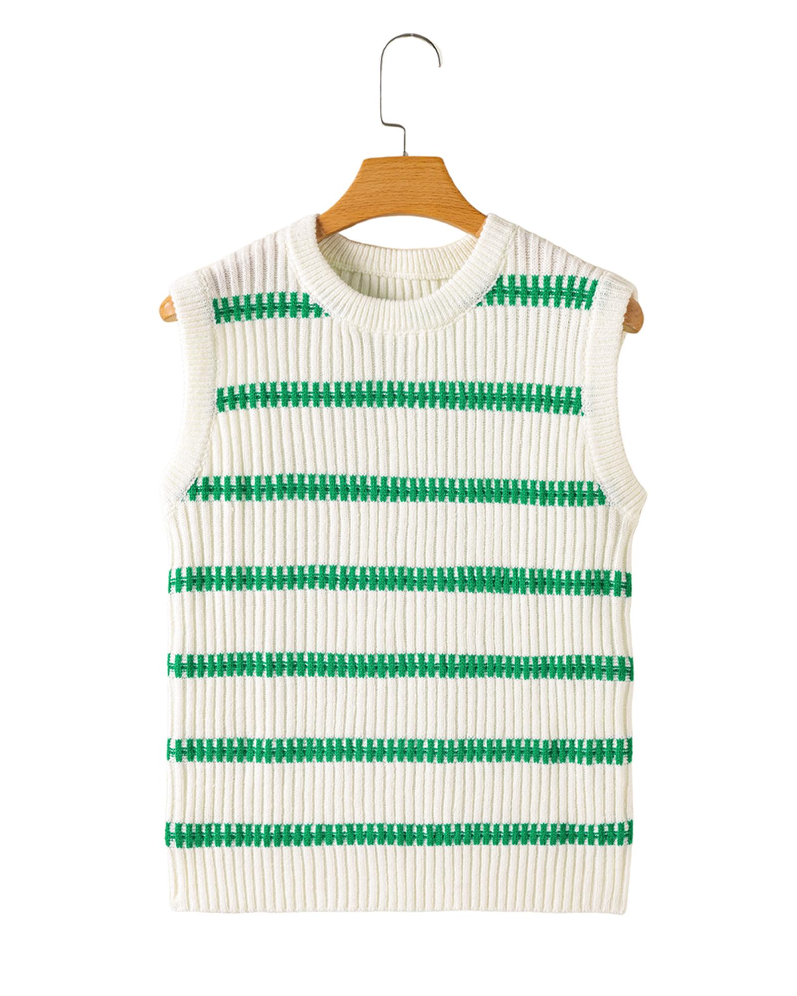 Bright Green Striped Round Neck Casual Sweater Vest – L