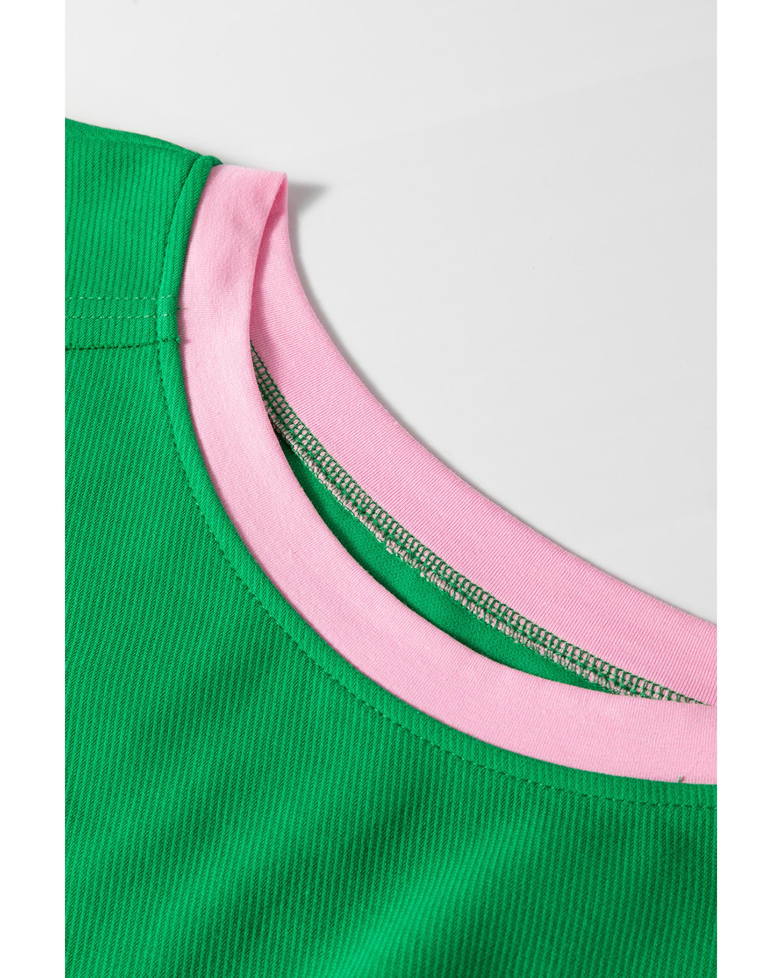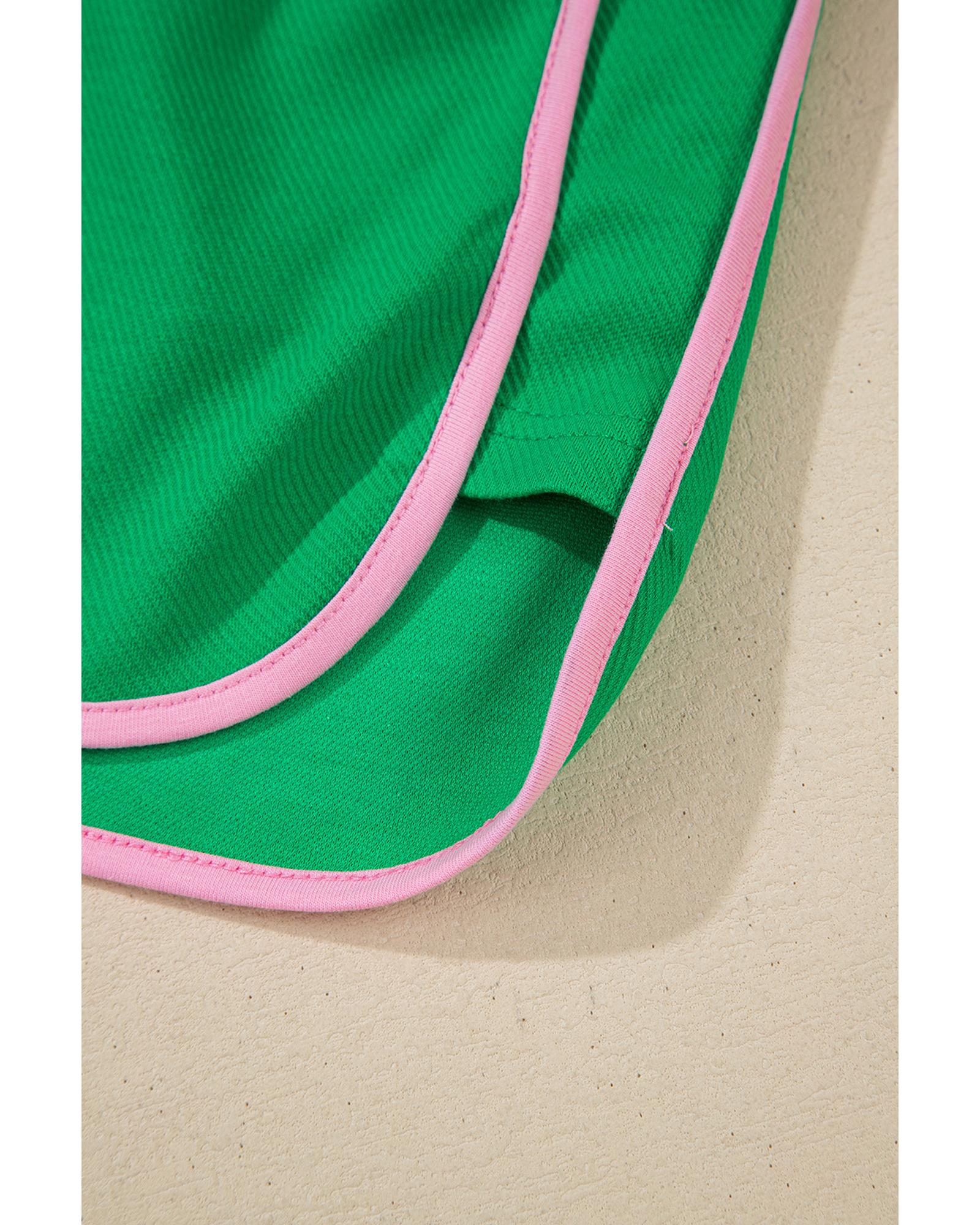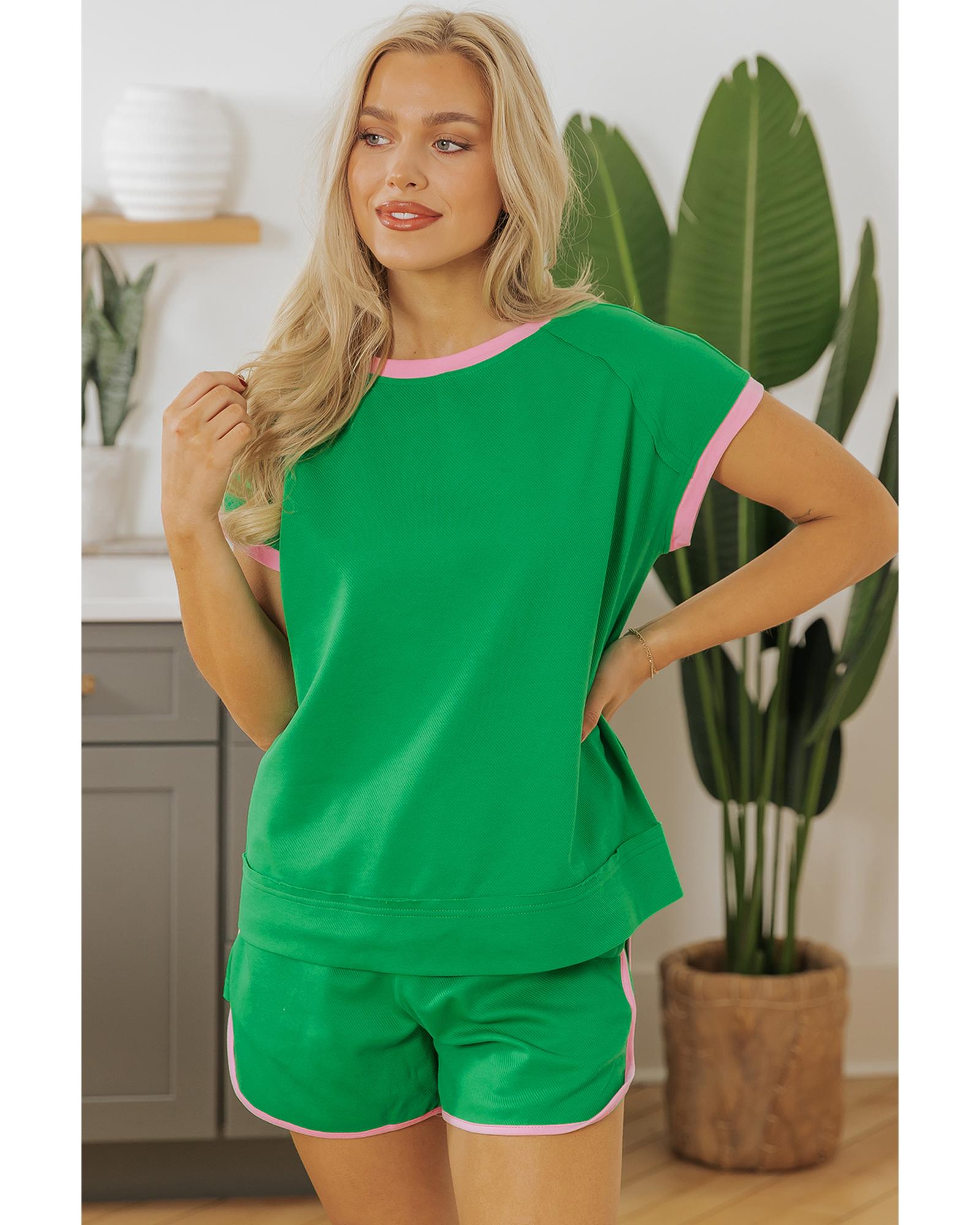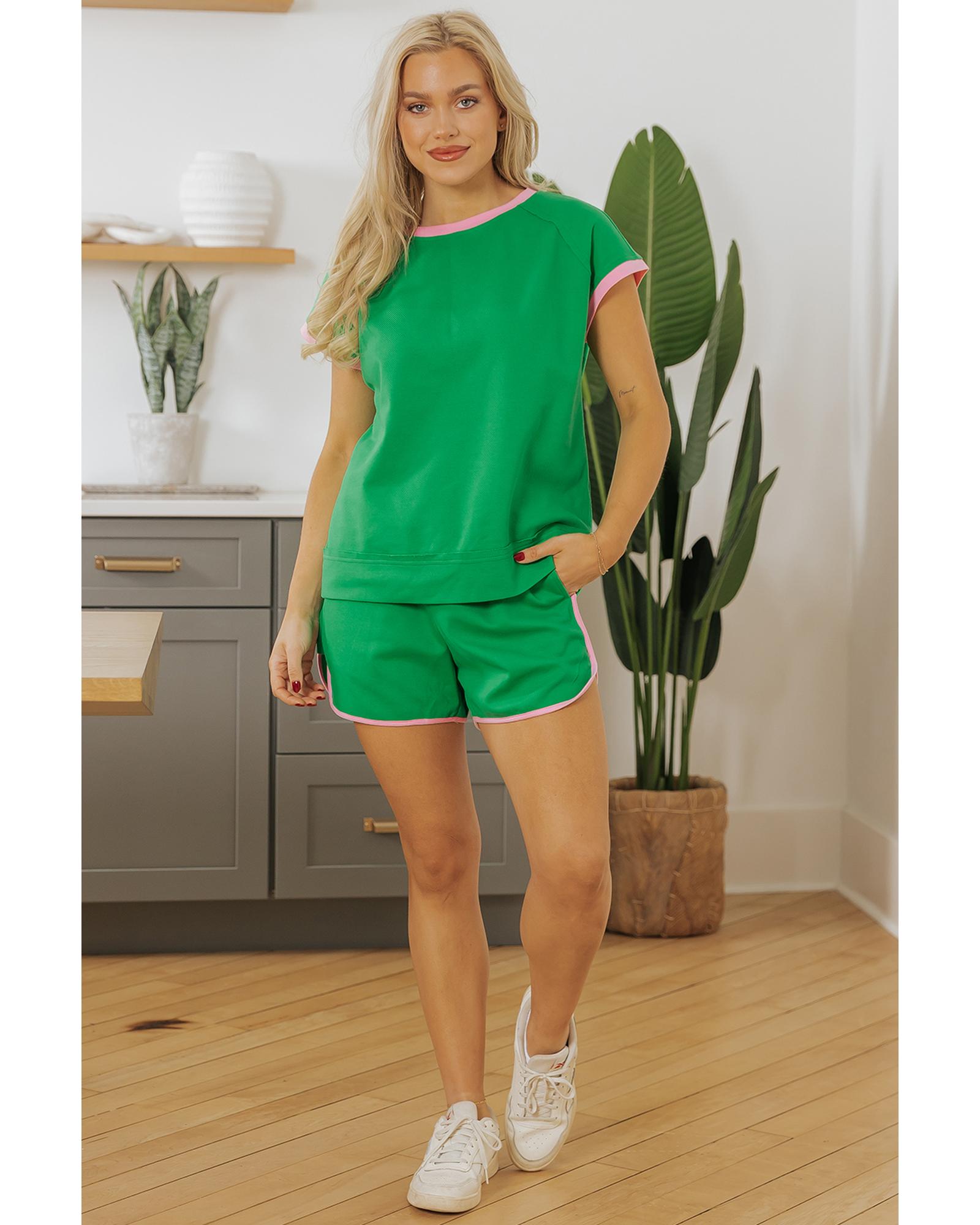 • Bright Green Two Tone Contrast Textured Crewneck Tee and Shorts Set
