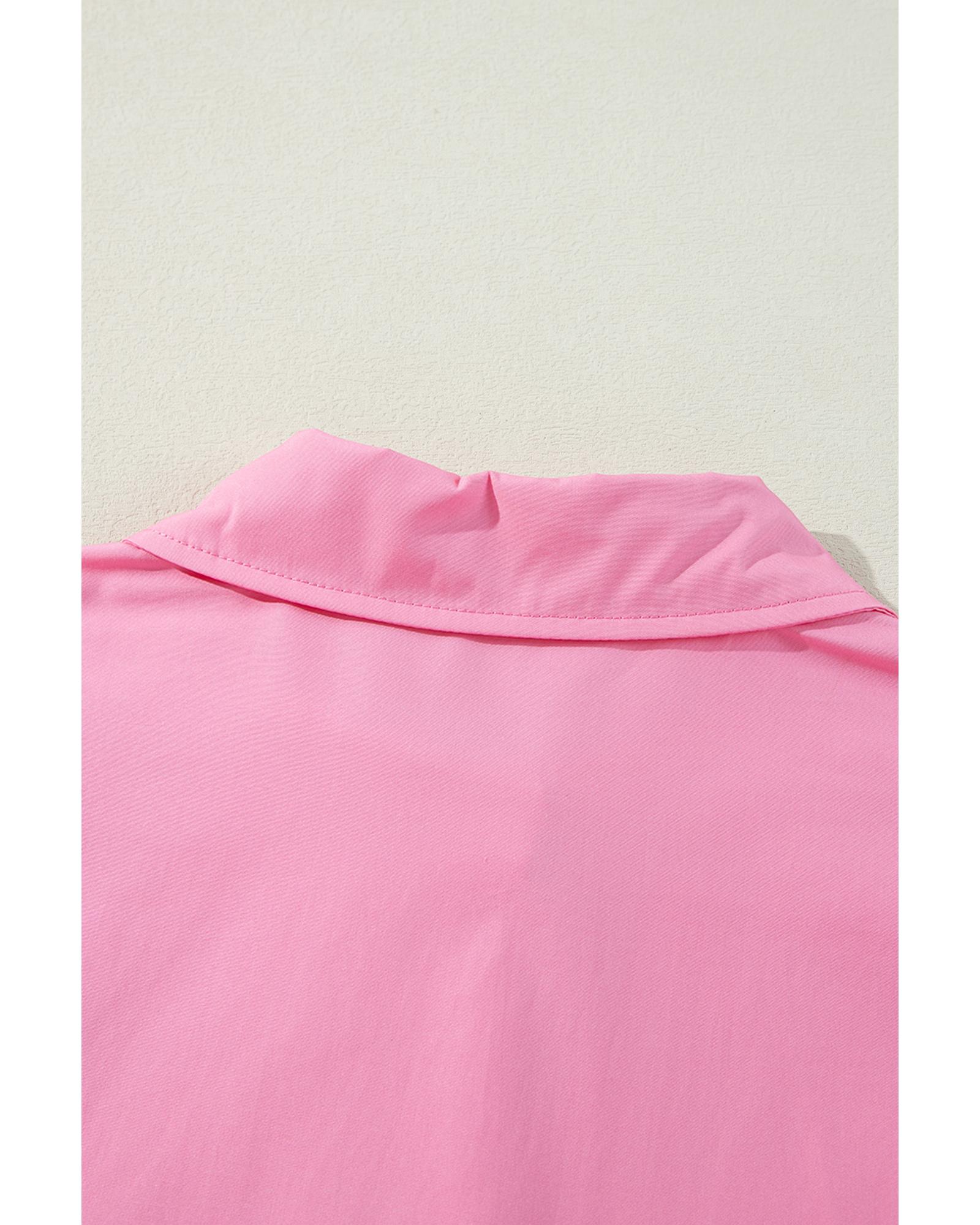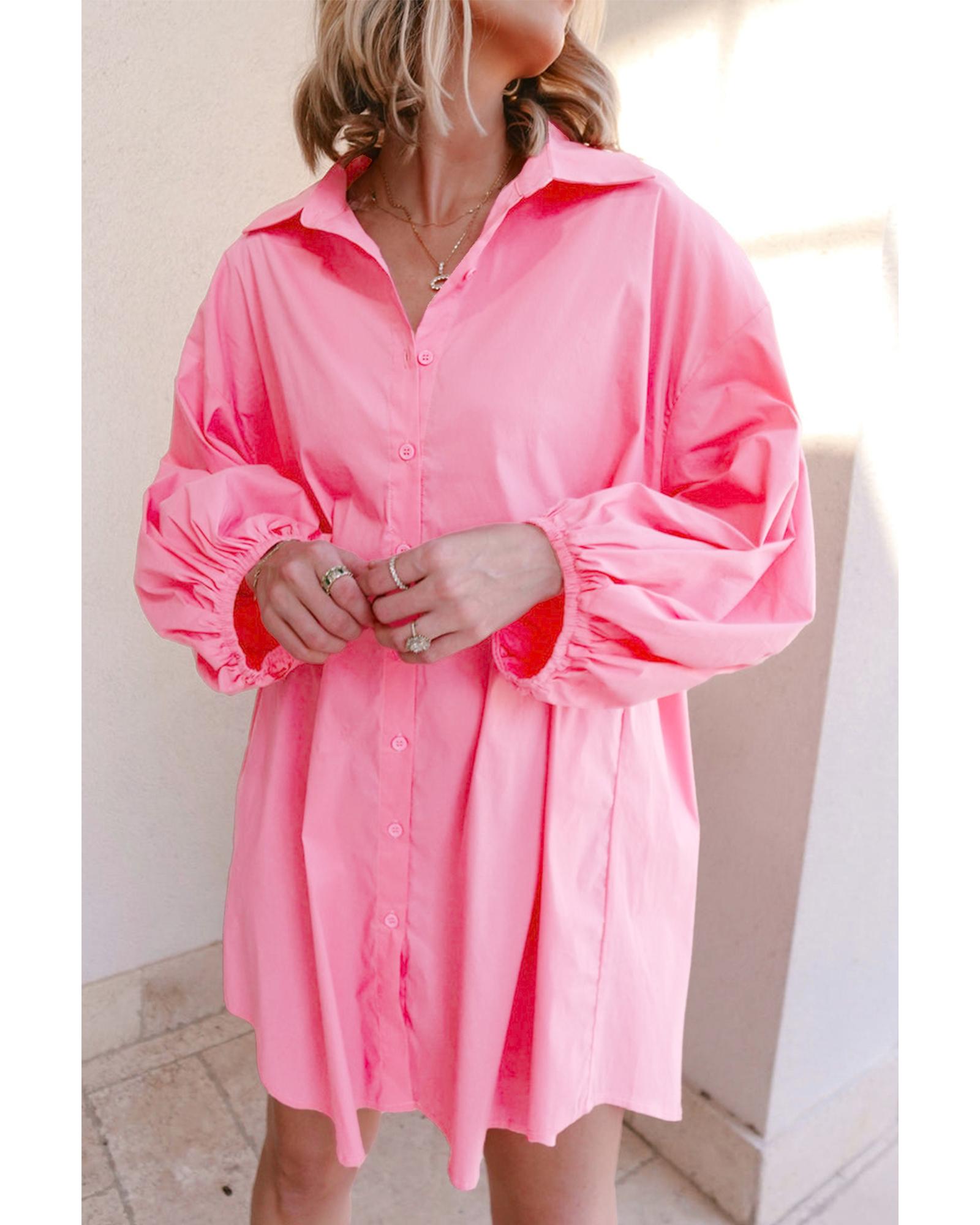 Bright Pink Balloon Sleeve Button Up Mini Shirt Dress – XL