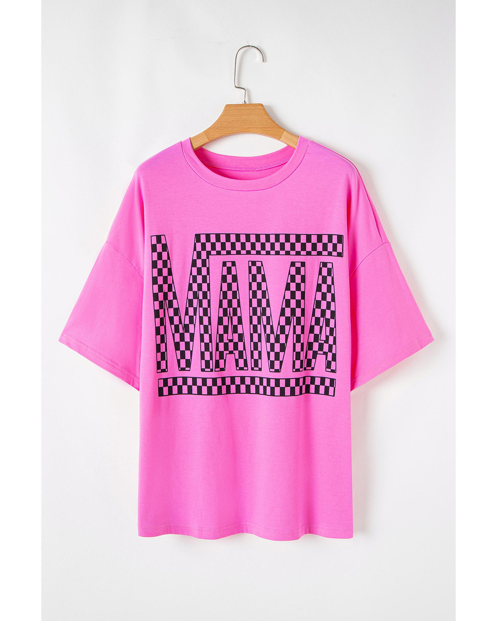 Bright Pink Checker MAMA Letter Printed Graphic Plus Size T Shirt – 1X