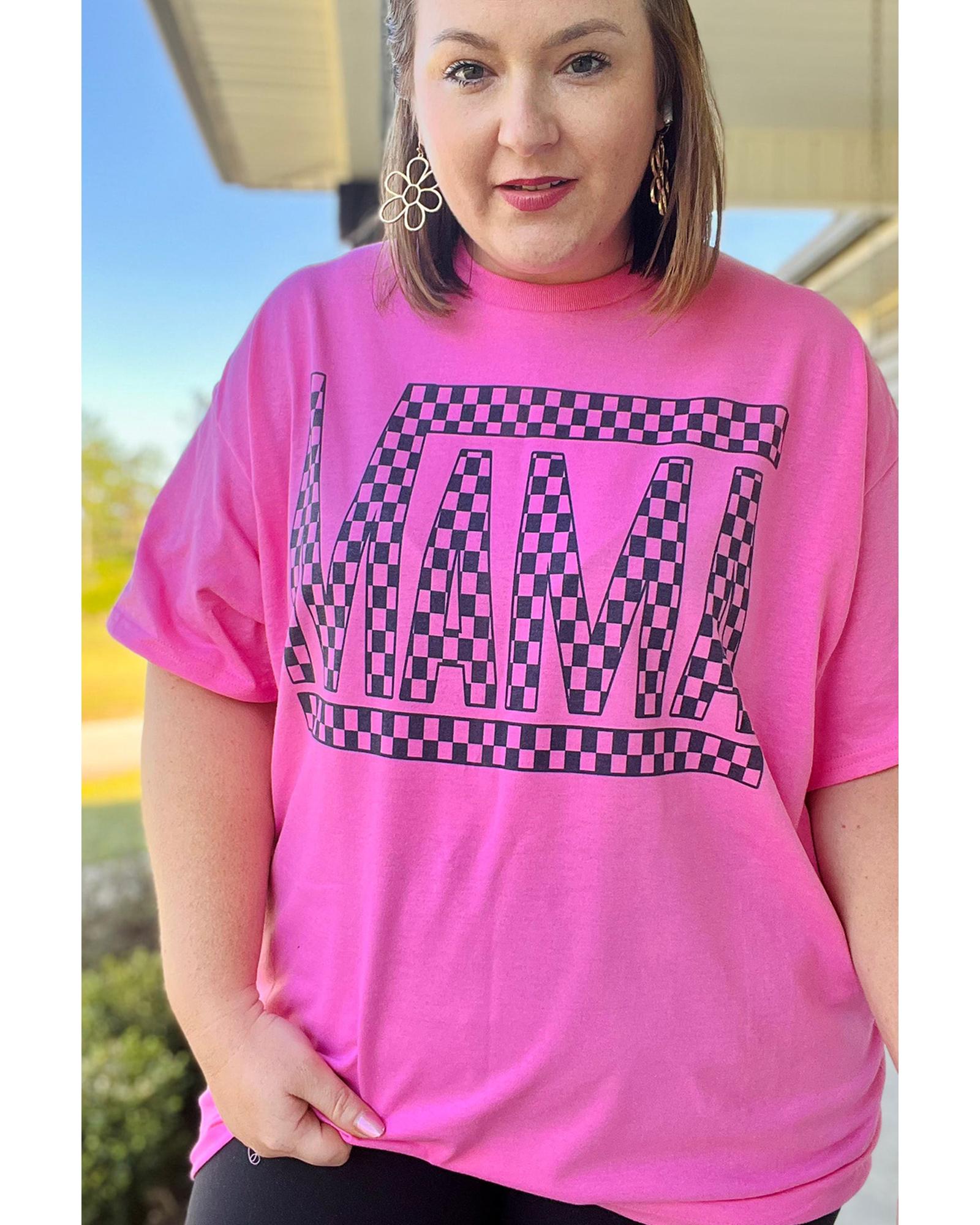 Bright Pink Checker MAMA Letter Printed Graphic Plus Size T Shirt - 4X Original price was: $55.99.Current price is: $29.99.